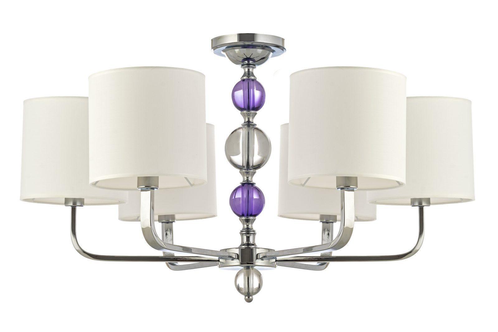 металла и стекла цвета никель. Поверхность арматуры матовая. Плафон изготовлен из текстиля белого цвета, имеет круглую выпуклую форму и матовую поверхность. Направлен вниз. Осветительный прибор рассчитан на освещение пространства площадью 12 кв. м. Тип цоколя используемых ламп E14. Производитель рекомендует использовать лампы мощностью не более 40 Вт. Суммарная мощность светильника составляет 240 Вт. Лампочки в комплект не входят. Защита от попадания влаги и пыли внутрь изделия не предусмотрена. Рекомендуем к применению в гостиной, кабинете, спальне.