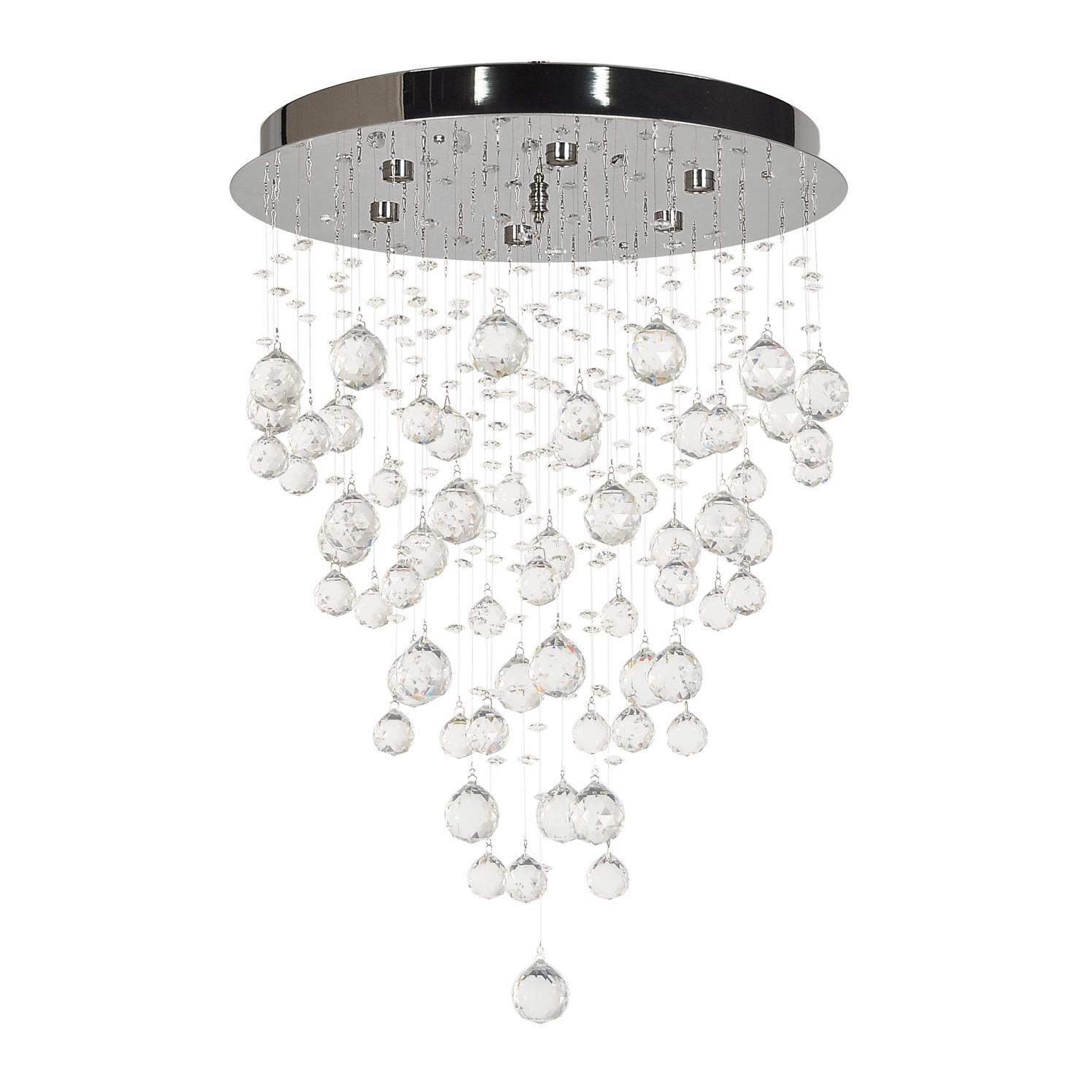 металла цвета никель. Поверхность арматуры глянцевая. Плафон изготовлен из хрусталя прозрачного цвета. с глянцевой поверхностью. Декоративные элементы выполнены из прозрачного хрусталя. Осветительный прибор рассчитан на освещение пространства площадью 12 кв. м. Тип цоколя используемых ламп G9. Производитель рекомендует использовать лампы мощностью не более 40 Вт. Суммарная мощность светильника составляет 240 Вт. Лампочки в комплект не входят. Защита от попадания влаги и пыли внутрь изделия не предусмотрена. Рекомендуем к применению в гостиной, кабинете, прихожей, спальне.