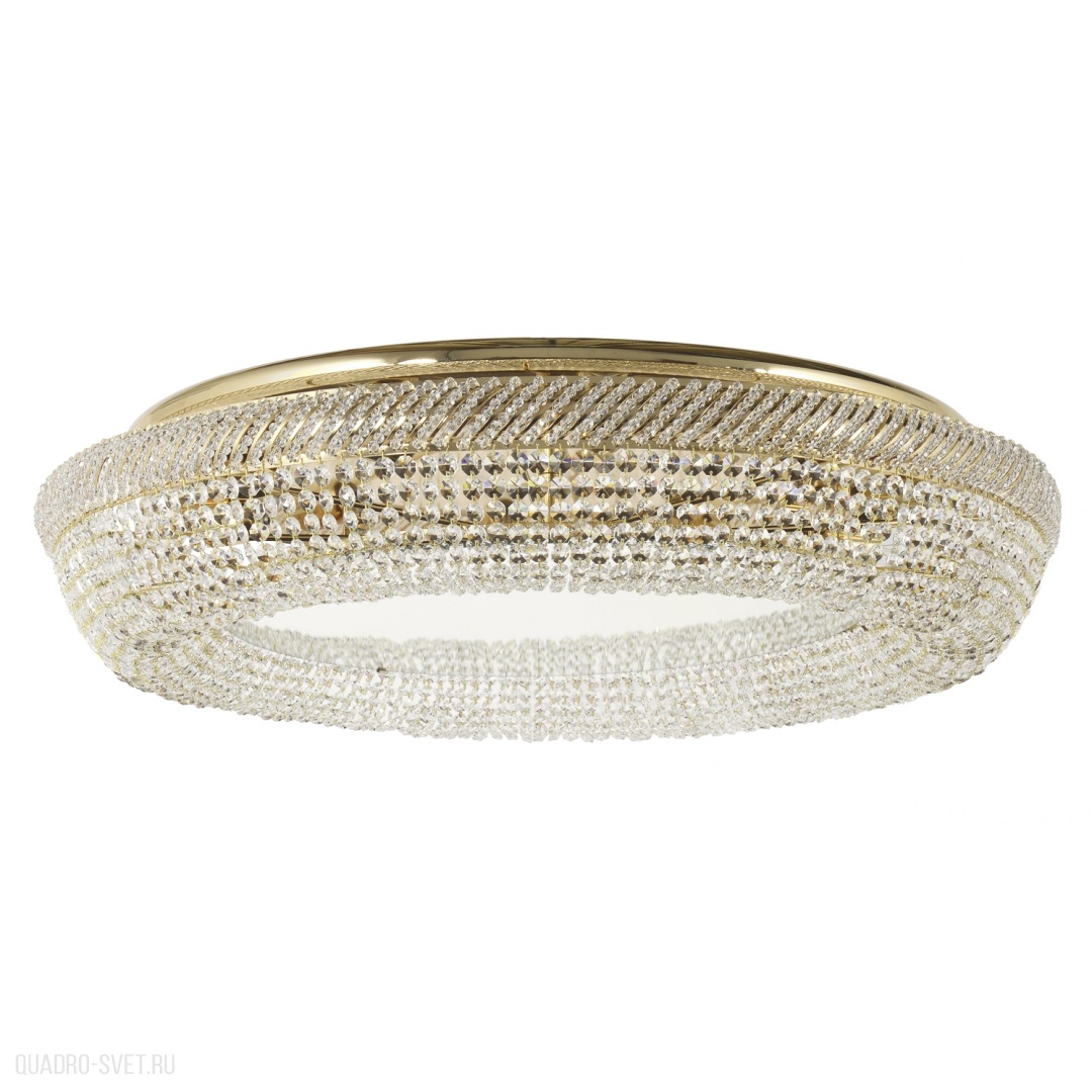 металла золотого цвета. Поверхность арматуры глянцевая. Плафон изготовлен из хрусталя прозрачного цвета. с глянцевой поверхностью. Декоративные элементы выполнены из прозрачного хрусталя. Осветительный прибор рассчитан на освещение пространства площадью 24 кв. м. Тип цоколя используемых ламп E27. Производитель рекомендует использовать лампы мощностью не более 60 Вт. Суммарная мощность светильника составляет 480 Вт. Лампочки в комплект не входят. Защита от попадания влаги и пыли внутрь изделия не предусмотрена. Рекомендуем к применению в гостиной, кабинете, спальне.