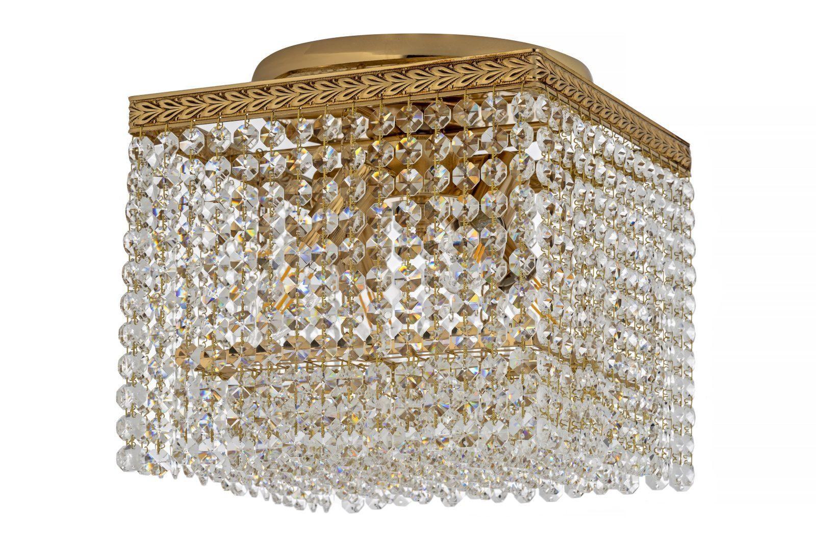 металла золотого цвета. Поверхность арматуры глянцевая. Плафон изготовлен из хрусталя прозрачного цвета. с глянцевой поверхностью. Декоративные элементы выполнены из прозрачного хрусталя. Осветительный прибор рассчитан на освещение пространства площадью 12 кв. м. Тип цоколя используемых ламп E27. Производитель рекомендует использовать лампы мощностью не более 60 Вт. Суммарная мощность светильника составляет 240 Вт. Лампочки в комплект не входят. Защита от попадания влаги и пыли внутрь изделия не предусмотрена. Рекомендуем к применению в гостиной, кабинете, спальне.