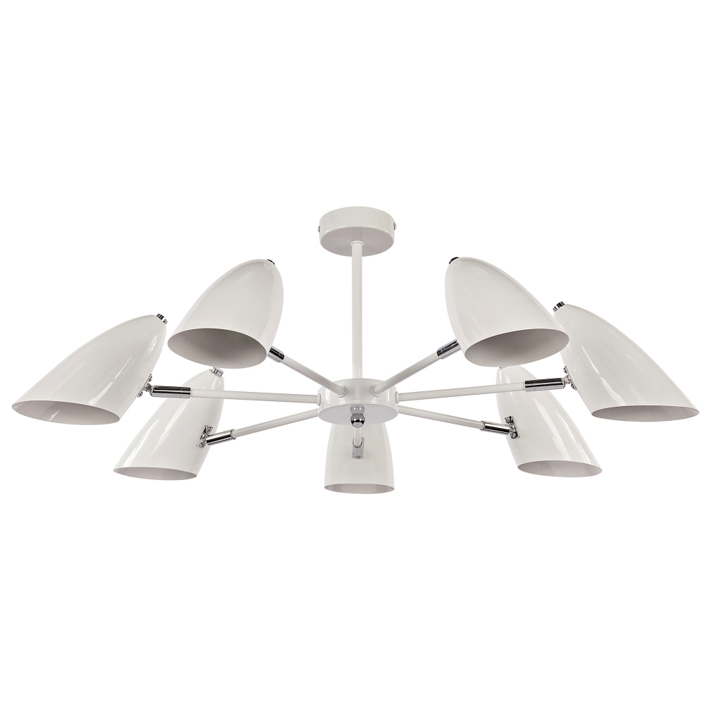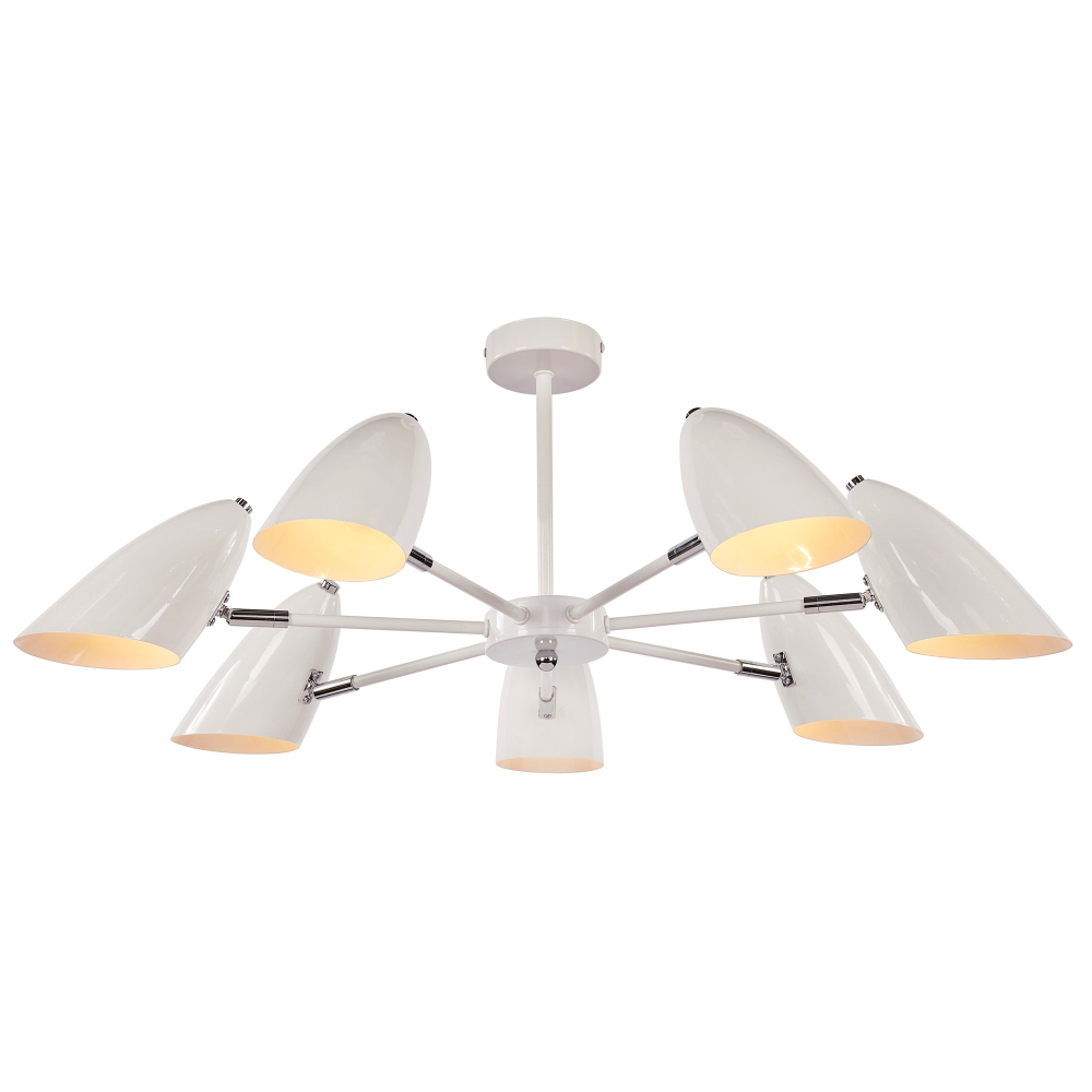 Потолочная люстра FR5852-CL-07-W производства Freya (Германия) из коллекции Aida выполнена в стиле минимализм. Арматура светильника выполнена из металла белого цвета. Поверхность арматуры глянцевая. Плафон изготовлен из металла белого цвета, имеет овальную объемную форму и глянцевую поверхность. Направлен вниз. Осветительный прибор рассчитан на освещение пространства площадью 14 кв. м. Тип цоколя используемых ламп E14. Производитель рекомендует использовать лампы мощностью не более 40 Вт. Суммарная мощность светильника составляет 280 Вт. Лампочки в комплект не входят. Защита от попадания влаги и пыли внутрь изделия не предусмотрена. Рекомендуем к применению в гостиной, кабинете, спальне.
