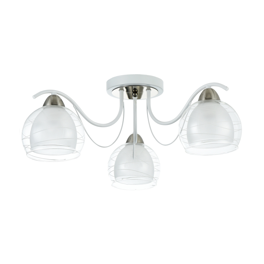 Потолочная люстра FR5052-CL-03-W производства Freya (Германия) из коллекции Nikki выполнена в стиле модерн. Арматура светильника выполнена из металла белого цвета. Поверхность арматуры матовая. Плафон изготовлен из стекла белого и прозрачного цветов с белым рисунком, имеет полусферическую форму и матовую поверхность. Направлен вниз. Осветительный прибор рассчитан на освещение пространства площадью 9 кв. м. Тип цоколя используемых ламп E14. Производитель рекомендует использовать лампы мощностью не более 60 Вт. Суммарная мощность светильника составляет 180 Вт. Лампочки в комплект не входят. Защита от попадания влаги и пыли внутрь изделия не предусмотрена. Рекомендуем к применению в гостиной, кабинете, спальне.