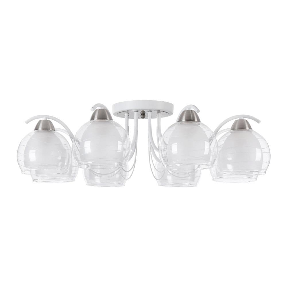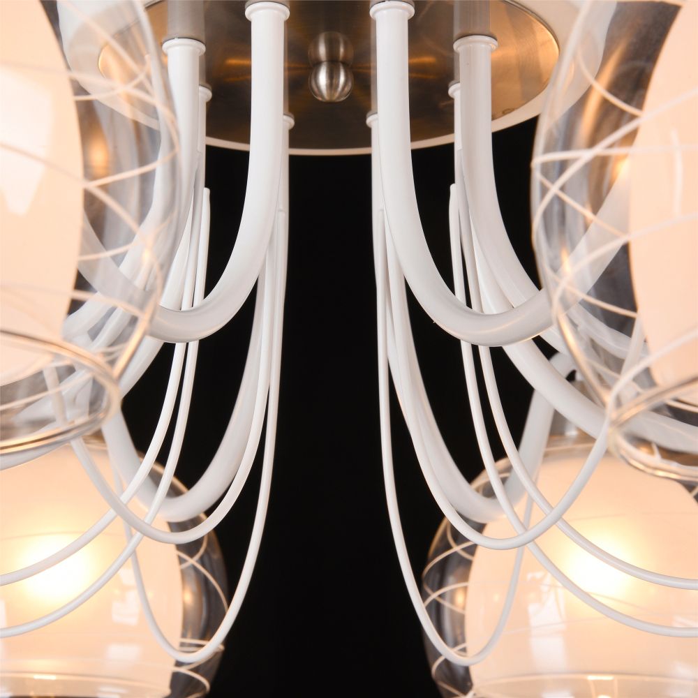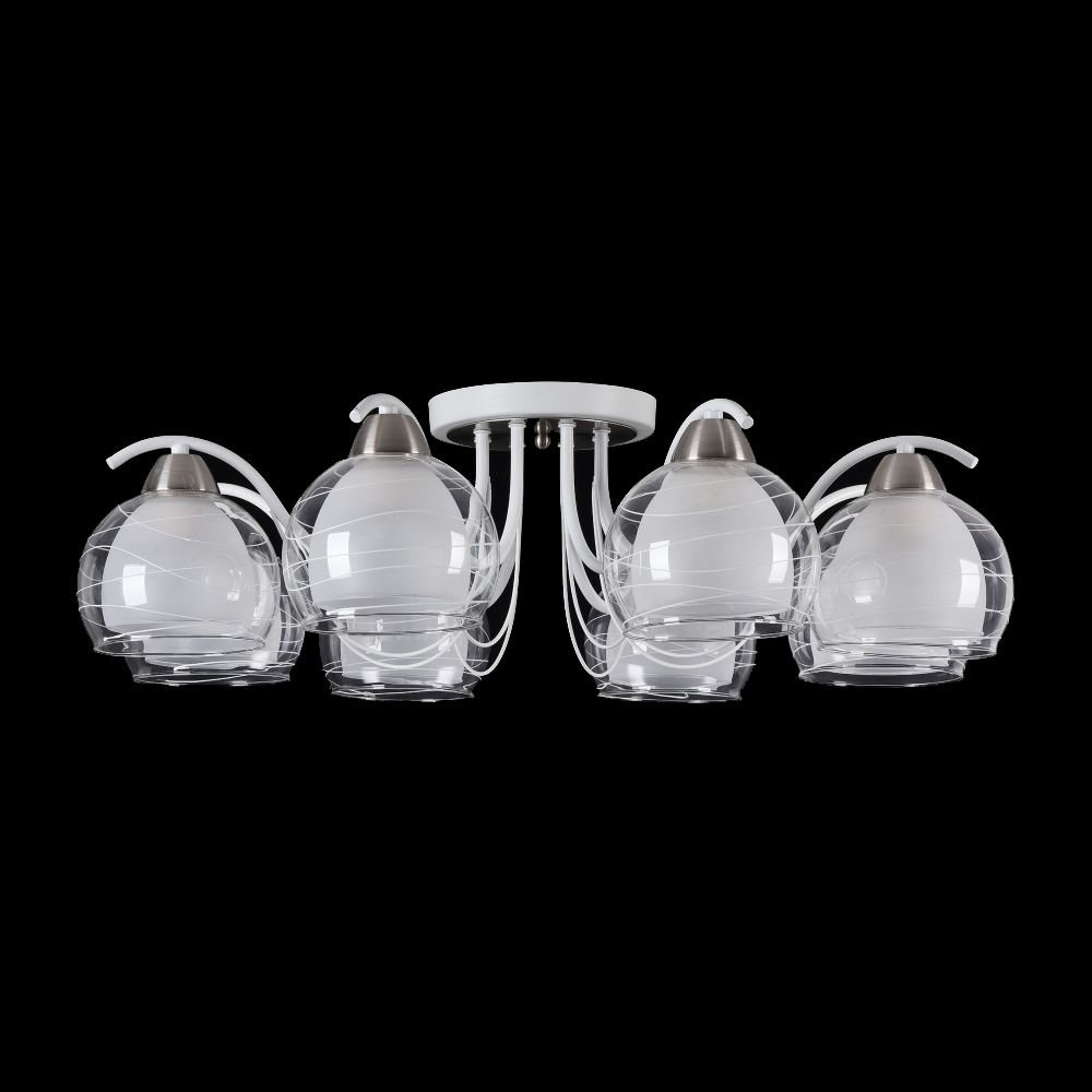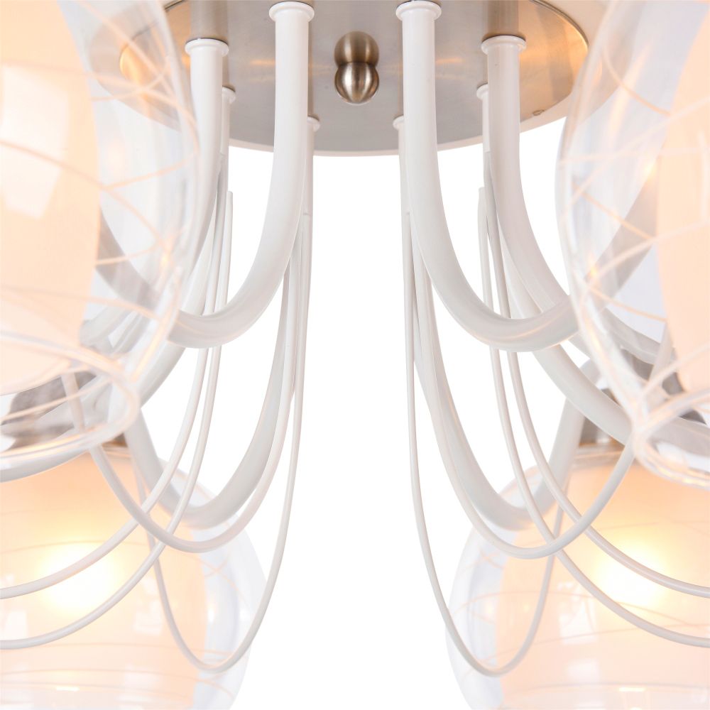 Потолочная люстра FR5052-CL-08-W производства Freya (Германия) из коллекции Nikki выполнена в стиле модерн. Арматура светильника выполнена из металла белого цвета. Поверхность арматуры матовая. Плафон изготовлен из стекла белого и прозрачного цветов с белым рисунком, имеет полусферическую форму и матовую поверхность. Направлен вниз. Осветительный прибор рассчитан на освещение пространства площадью 24 кв. м. Тип цоколя используемых ламп E14. Производитель рекомендует использовать лампы мощностью не более 60 Вт. Суммарная мощность светильника составляет 480 Вт. Лампочки в комплект не входят. Защита от попадания влаги и пыли внутрь изделия не предусмотрена. Рекомендуем к применению в гостиной, кабинете, спальне.