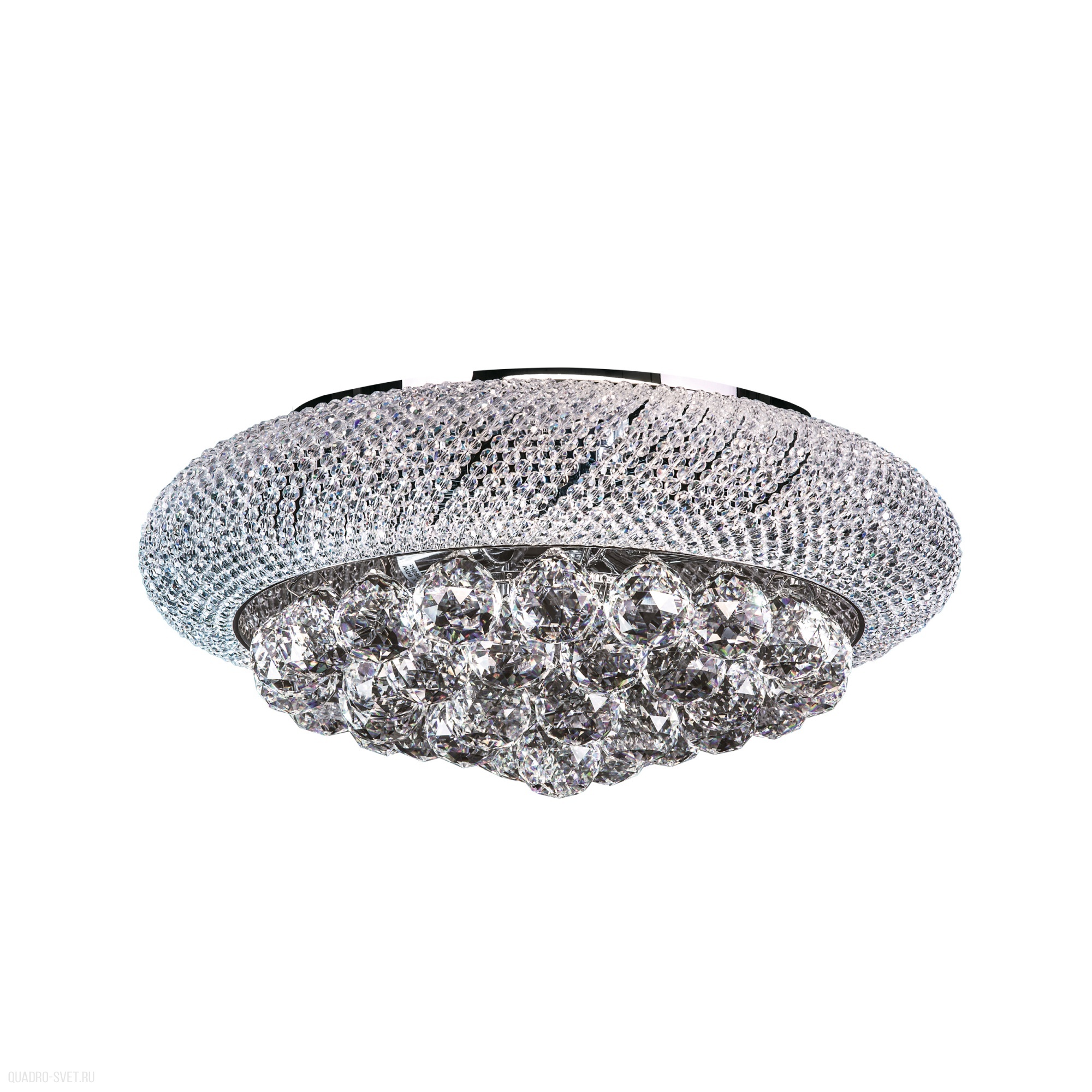 металла цвета хром. Поверхность арматуры глянцевая. Плафон изготовлен из хрусталя прозрачного цвета. с глянцевой поверхностью. Декоративные элементы выполнены из прозрачного хрусталя. Осветительный прибор рассчитан на освещение пространства площадью 12 кв. м. Тип цоколя используемых ламп E14. Производитель рекомендует использовать лампы мощностью не более 40 Вт. Суммарная мощность светильника составляет 240 Вт. Лампочки в комплект не входят. Защита от попадания влаги и пыли внутрь изделия не предусмотрена. Рекомендуем к применению в гостиной, кабинете, прихожей, спальне.