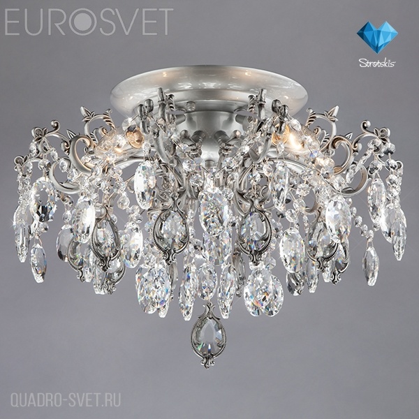 металла цвета античное серебро. Поверхность арматуры глянцевая. Плафон отсутствует. Лампы направленывниз. Декоративные элементы выполнены из прозрачного хрусталя. Осветительный прибор рассчитан на освещение пространства площадью 16 кв. м. Тип цоколя используемых ламп E14. Производитель рекомендует использовать лампы мощностью не более 40 Вт. Суммарная мощность светильника составляет 200 Вт. Лампочки в комплект не входят. Защита от попадания влаги и пыли внутрь изделия не предусмотрена. Рекомендуем к применению в гостиной, кабинете, спальне.