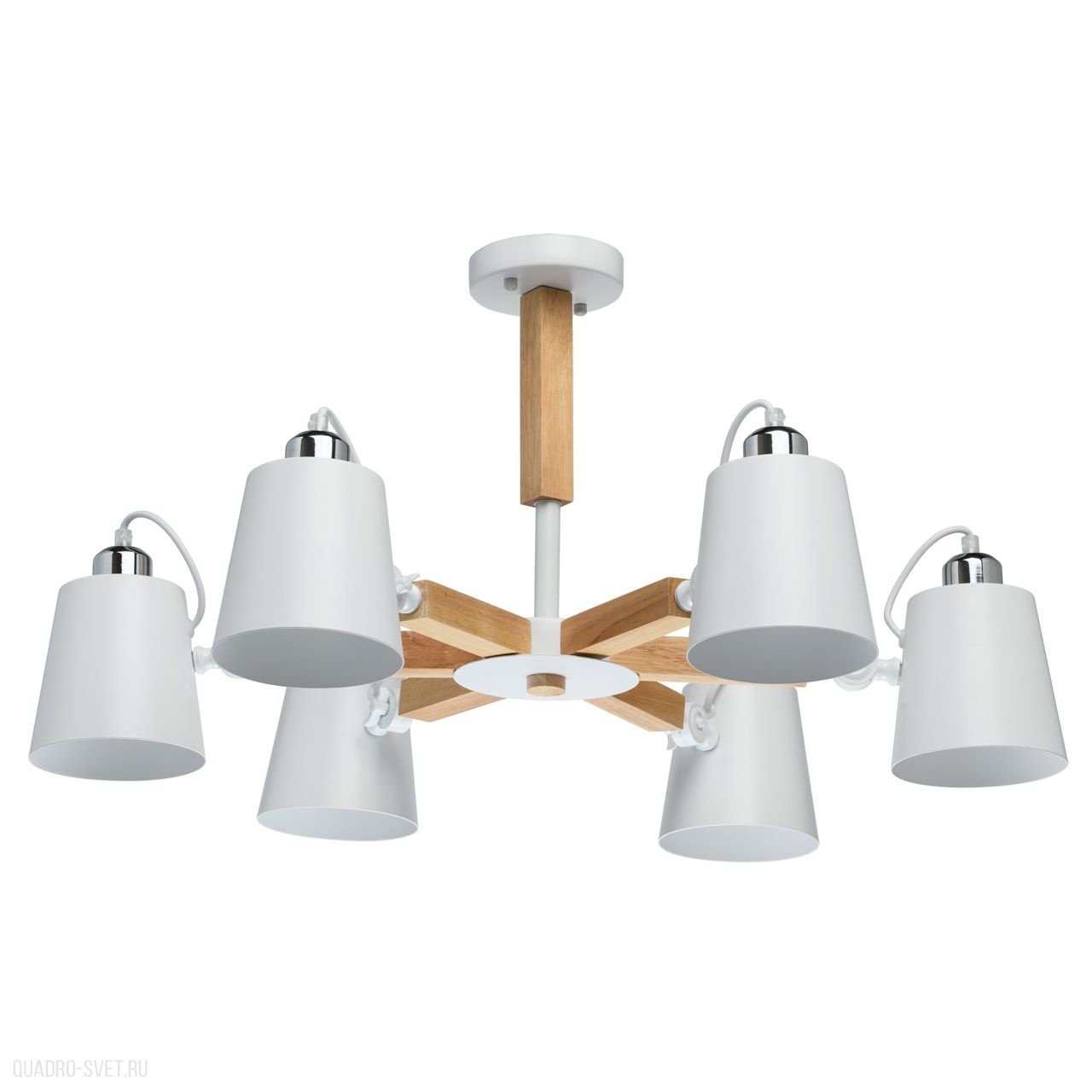 Люстра из коллекции «Форест» - прекрасное решение для подсветки современных интерьеров, выполненных в стиле лофт, техно, минимализм, эко. Белое металлическое основание и плафоны подчеркнуты хромированными вставками. Освежающая цветовая гамма разбавлена декором из натурального дерева: такое сочетание придает композиции особую изюминку и отсылает к трендовой эко-стилистике. Основание изготовлено из металла и окрашено в белый цвет. Держатели плафонов изготовлены из металла и гальванизированы в цвет хрома. Центральный стержень и рожки декорированы элементами из натурального дерева.