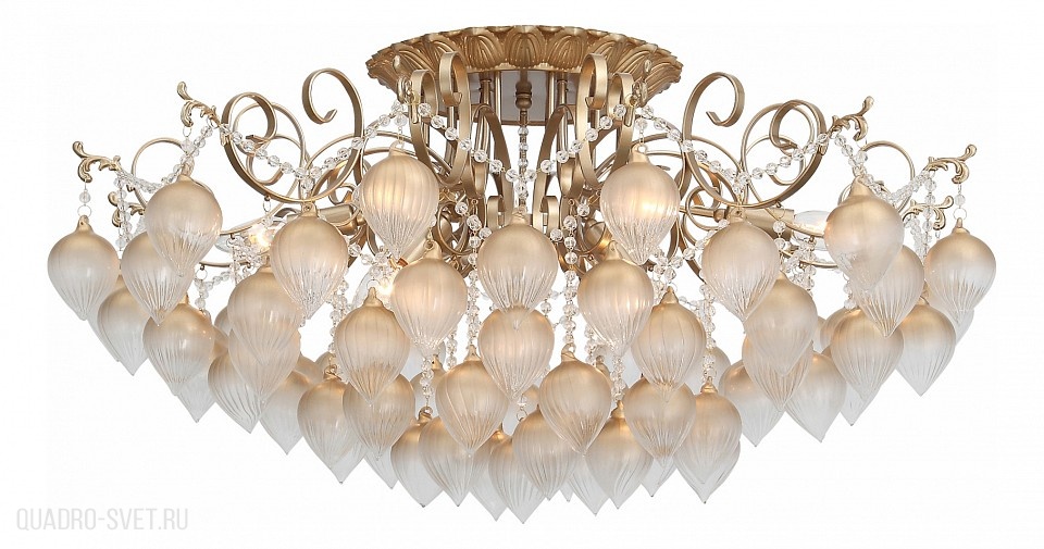 Потолочная люстра SL659.302.09 итальянского производителя ST Luce из коллекции FRUTTI исполнена в стиле модерн. Арматура светильника выполнена из металла золотого цвета с патиной. Поверхность арматуры глянцевая и рельефная. Плафон изготовлен из стекла золотистого и прозрачного цветов. с глянцевой поверхностью. Осветительный прибор рассчитан на освещение пространства площадью 18 кв. м. Тип цоколя используемых ламп E14. Производитель рекомендует использовать лампы мощностью не более 40 Вт. Суммарная мощность светильника составляет 360 Вт. Лампочки в комплект не входят. Защита от попадания влаги и пыли внутрь изделия не предусмотрена. Рекомендуем к применению в гостиной, кабинете, спальне.