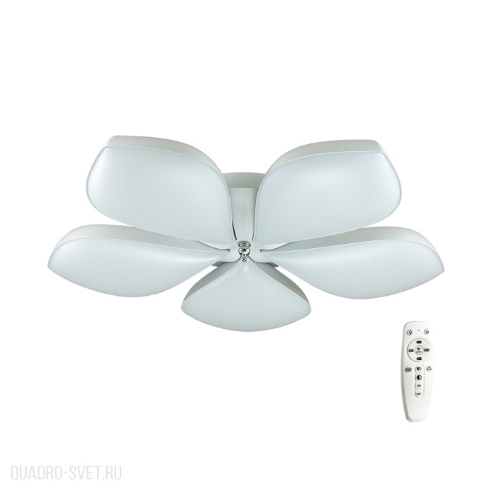 Потолочная светодиодная люстра 3645/60CL итальянского производителя Lumion из коллекции GABRIELLA выполнена в современном стиле. Арматура светильника выполнена из металла белого цвета. Поверхность арматуры матовый. Плафон изготовлен из акрила белого цвета, имеет сложную форму и матовую поверхность. Направлен вниз. Осветительный прибор рассчитан на освещение пространства площадью 30 кв. м. Тип цоколя используемых ламп LED. Производитель рекомендует использовать лампы мощностью не более 60 Вт. Суммарная мощность светильника составляет 60 Вт. Лампочки входят в комплект. Защита от попадания влаги и пыли внутрь изделия не предусмотрена. Режимы светильника переключаются при помощи пульта ДУ. Цвет свечения изменяется от теплого к холодному (3000K-6000K). Рекомендуем к применению в гостиной, кабинете, прихожей, спальне.