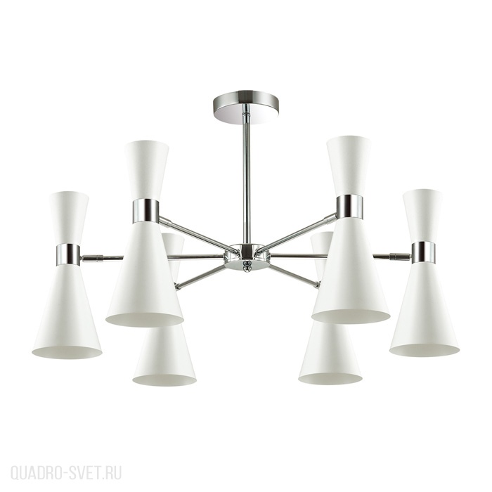 Потолочная люстра 3661/6C итальянского производителя Lumion из коллекции QUINN выполнена в стиле модерн. Арматура светильника выполнена из металла цвета хром. Поверхность арматуры глянцевый. Плафон изготовлен из металла белого цвета, имеет форму конуса и матовую поверхность. Направлен в любую сторону. Осветительный прибор рассчитан на освещение пространства площадью 18 кв. м. Тип цоколя используемых ламп E14. Производитель рекомендует использовать лампы мощностью не более 60 Вт. Суммарная мощность светильника составляет 360 Вт. Лампочки в комплект не входят. Защита от попадания влаги и пыли внутрь изделия не предусмотрена. Рекомендуем к применению в гостиной, кабинете, спальне.