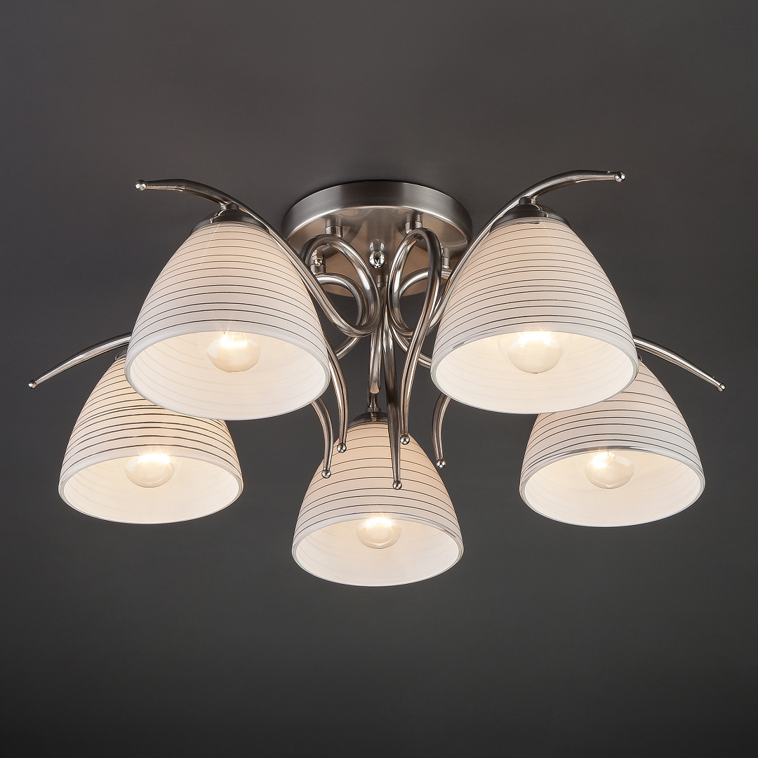 Потолочная люстра 30121/5 сатин-никель от производителя Eurosvet (КНР) из коллекции Megan исполнена в стиле модерн. Арматура светильника выполнена из