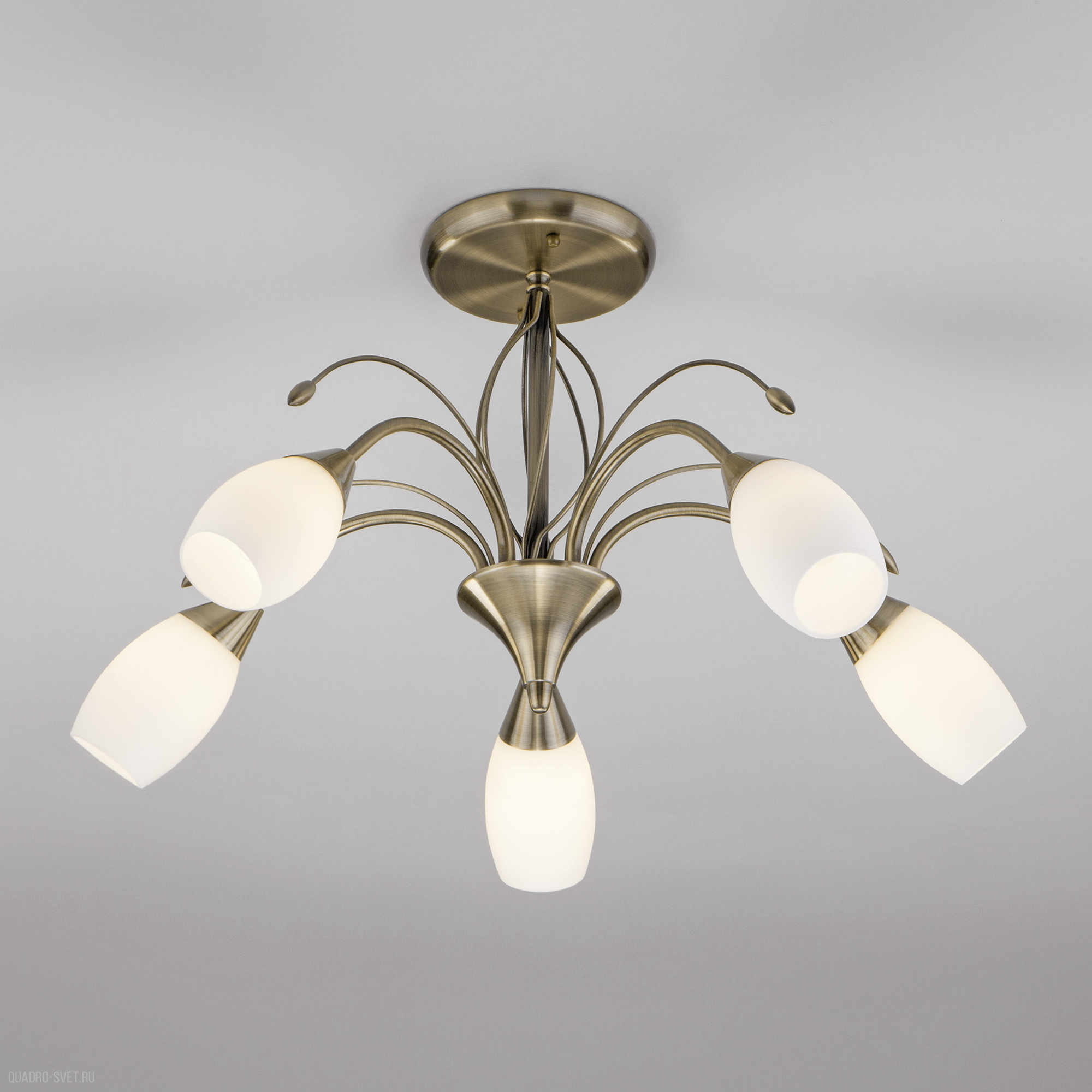 Потолочная люстра со стеклянными плафонами Eurosvet Ginevra 30280/5 античная бронза