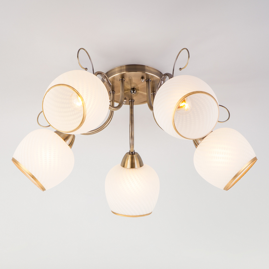 Оставить свой отзыв о товаре Потолочная люстра со стеклянными плафонами Eurosvet Brooksy 30159/5 античная бронза