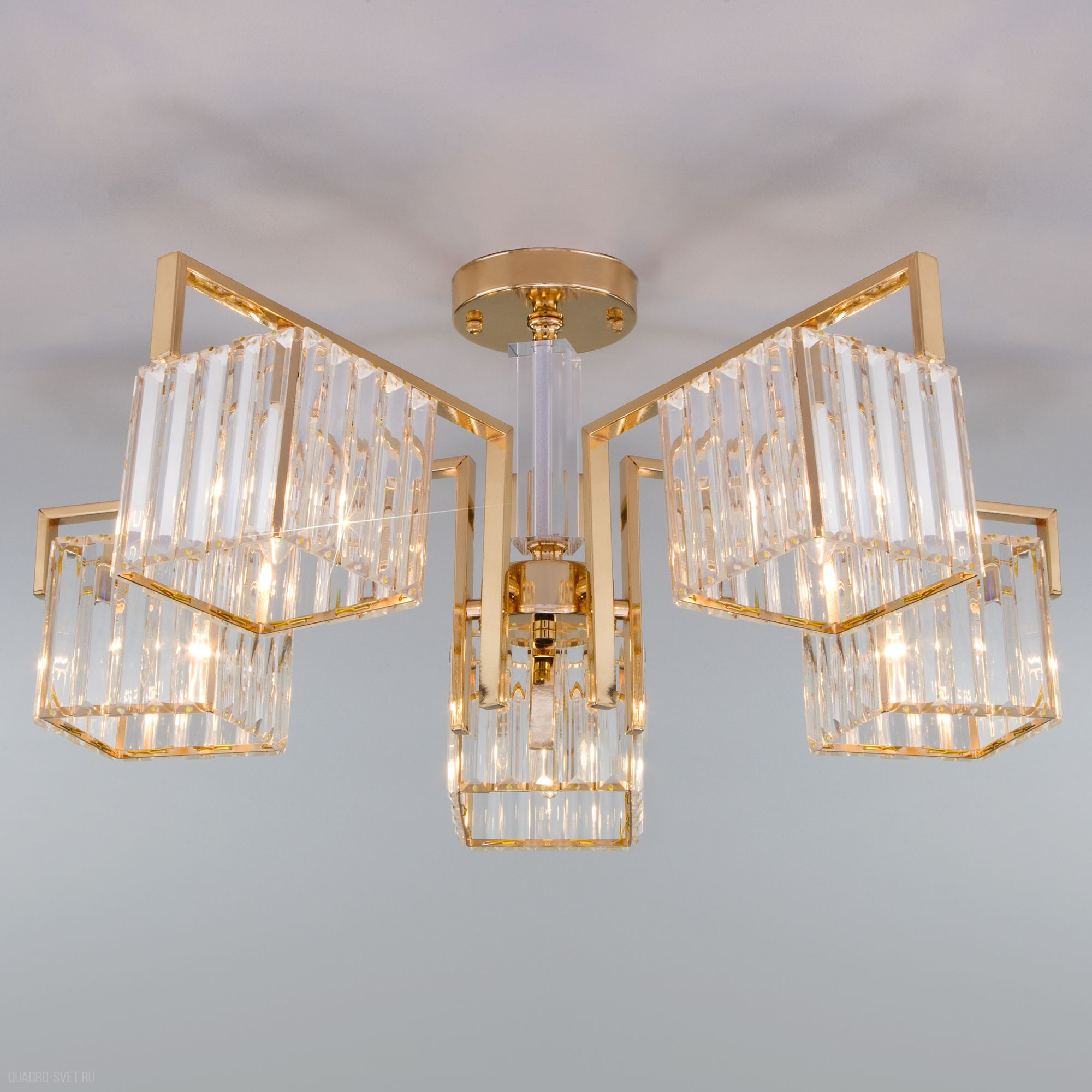 Потолочная люстра Eurosvet April 10126/5 золото/прозрачный хрусталь Strotskis Smart (10117/5)