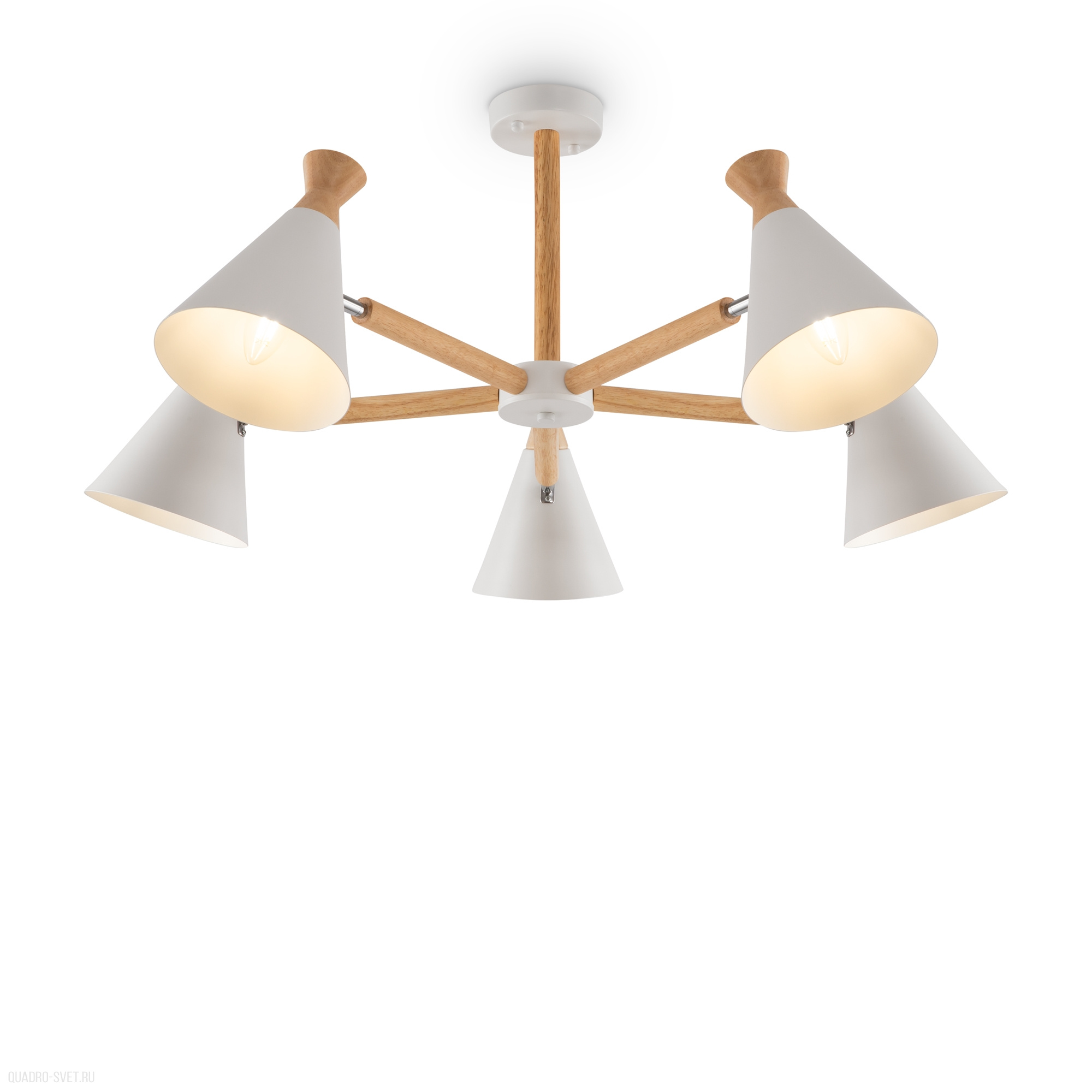 Арматура и плафоны из металла в белом цвете. Декоративные элементы из натурального дерева. Поворотные плафоны для регулировки светового потока. Источник света – лампа с цоколем E14.
