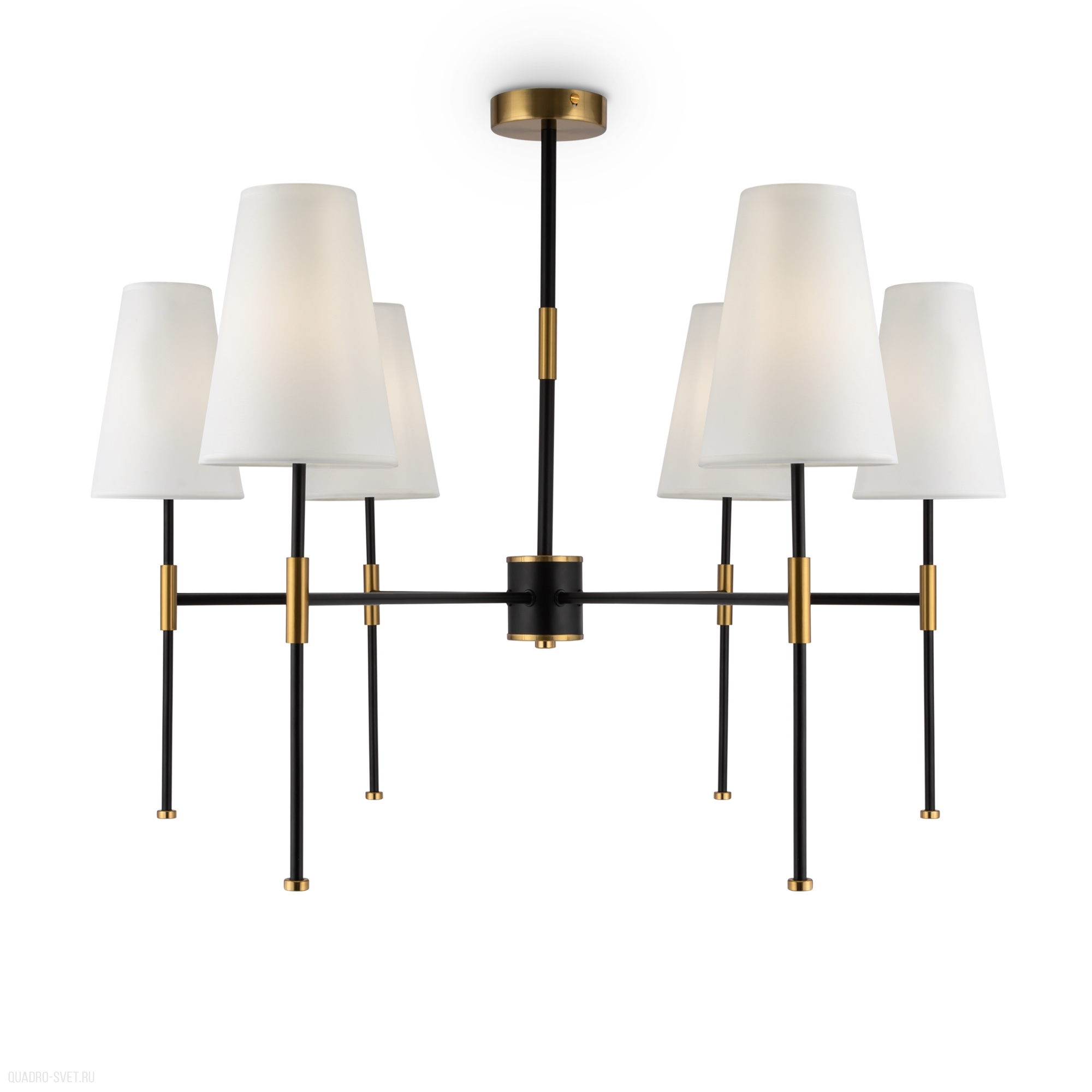 Материал арматуры – металл. Оттенки: хром, комбинация черного и латуни. Абажуры – белая ткань. Акцентный вытянутый силуэт. Источник света – лампа с цоколем E14.