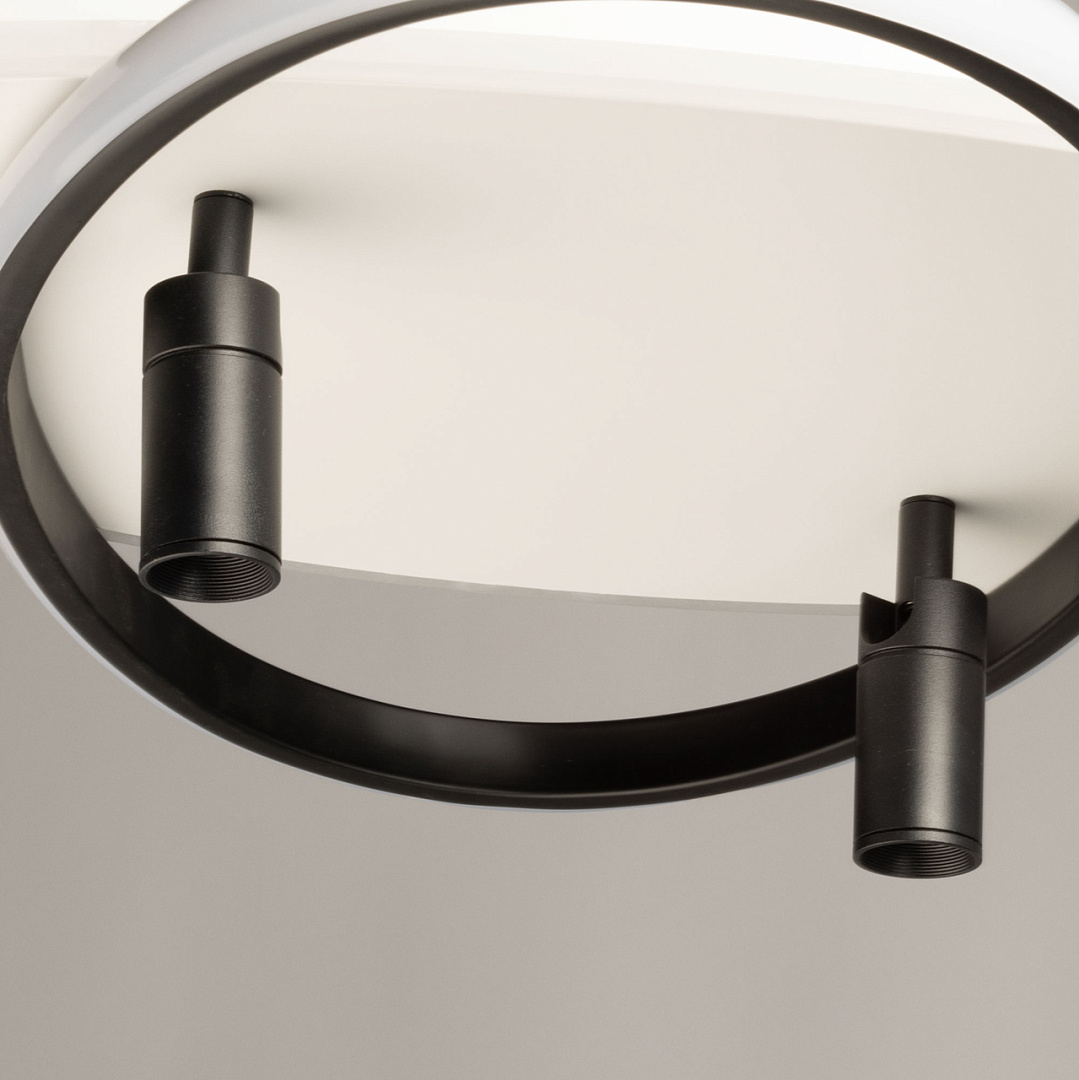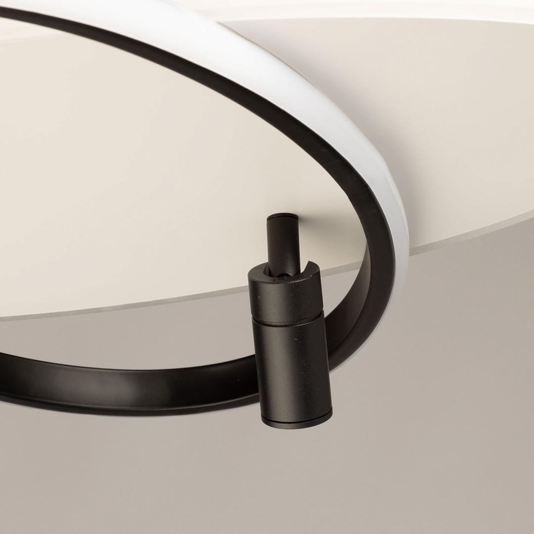 Контрастный черный цвет плафонов в сочетании с белым цветом основания обеспечивает актуальный дизайн и добавляет люстре концептуальности. Матовый акрил мягко рассеивает свет, создавая комфортное освещение. Многорежимность освещения от 3000К до 6500К позволяет подобрать комфортную температуру света. Качественные светодиоды экономичны и безопасны. Поворотные споты позволяют направлять световой поток в нужную сторону, что создает акцентное освещение. Компактный размер потолочной люстры подойдет к интерьерам со стандартным потолком. Наличие ПДУ позволяет удобно устанавливать требуемый сценарий освещения.