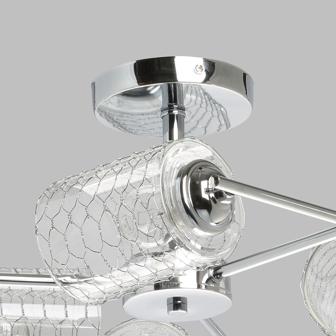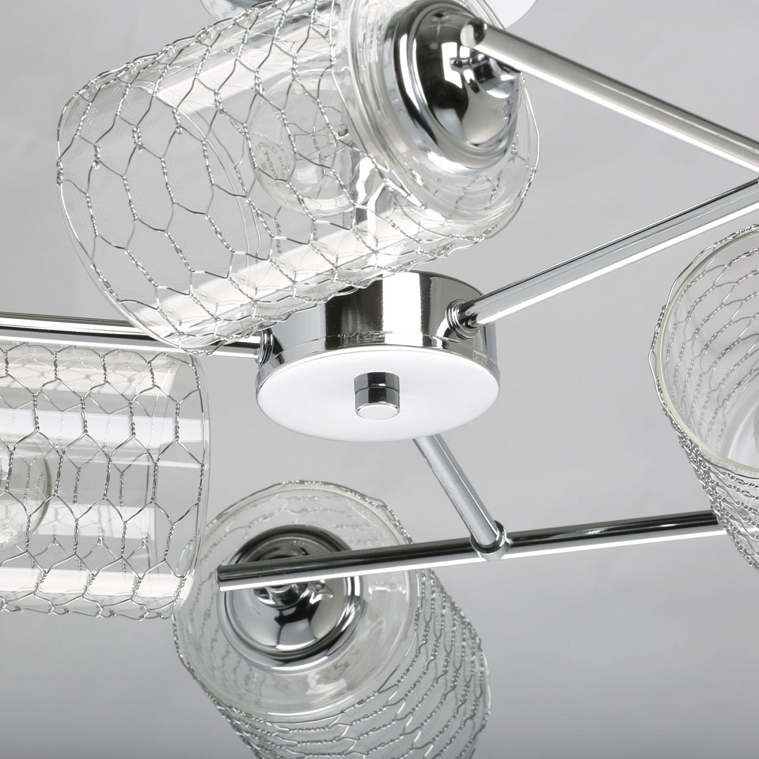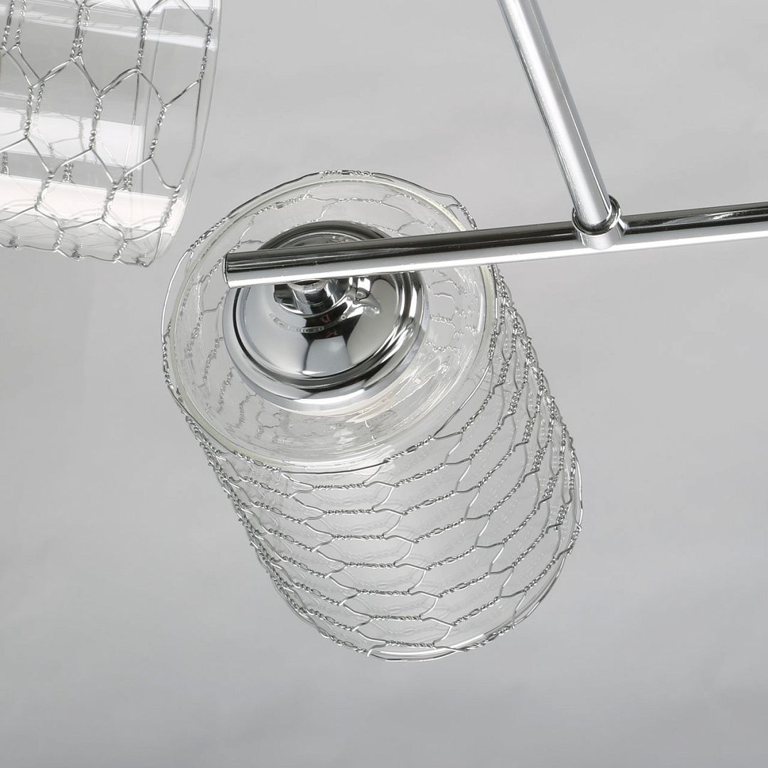 Минималистичный  светильник для современных интерьеров.Оригинальный металлический декор цвета хрома на плафонах добавляет декоративности.Стеклянные плафоны обеспечивают мягкий световой поток. Компактная высота модели идеальна для стандартных потолков.
