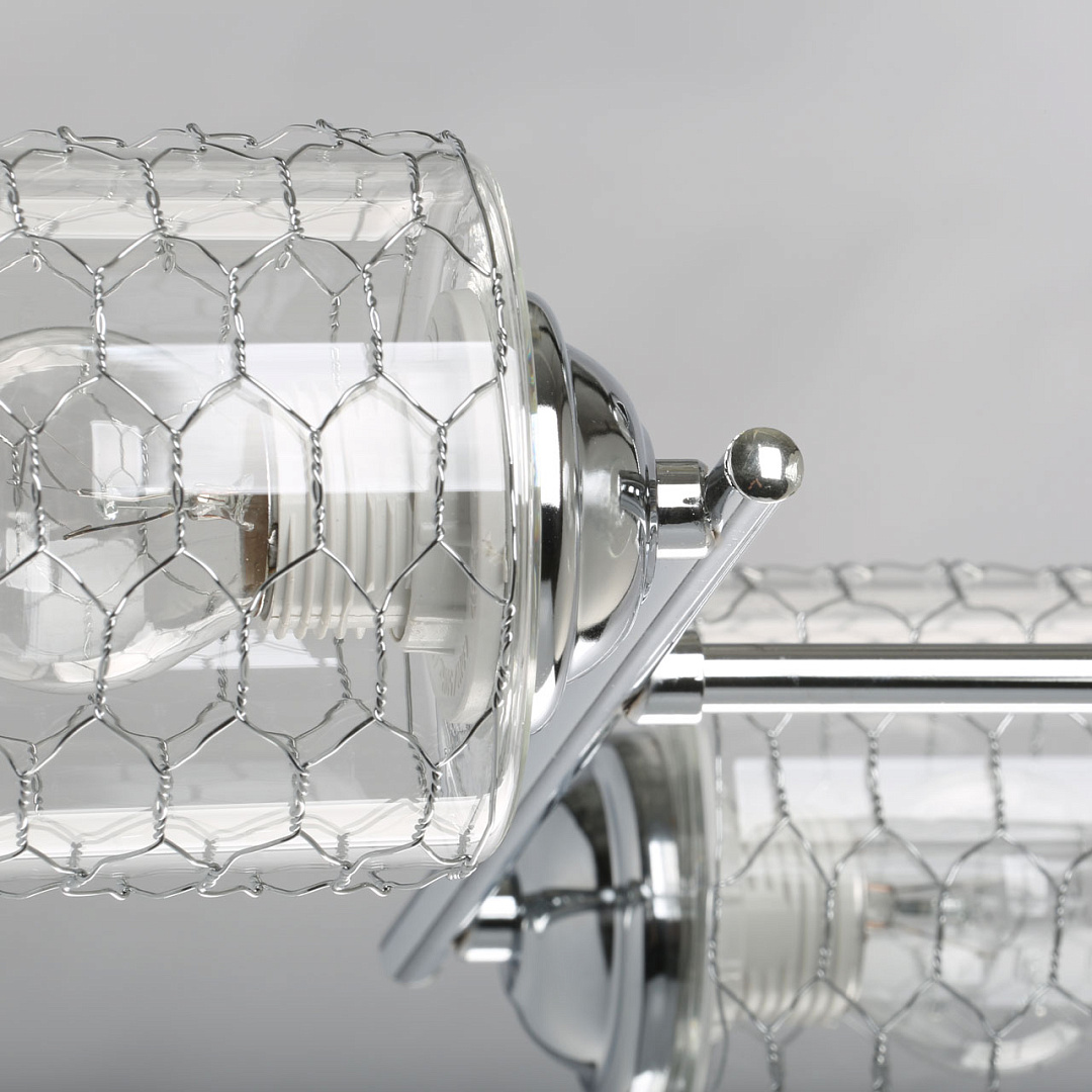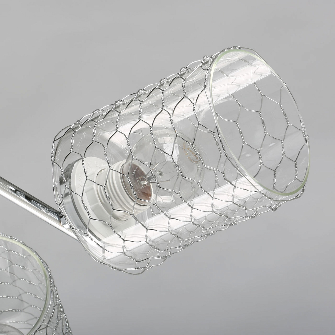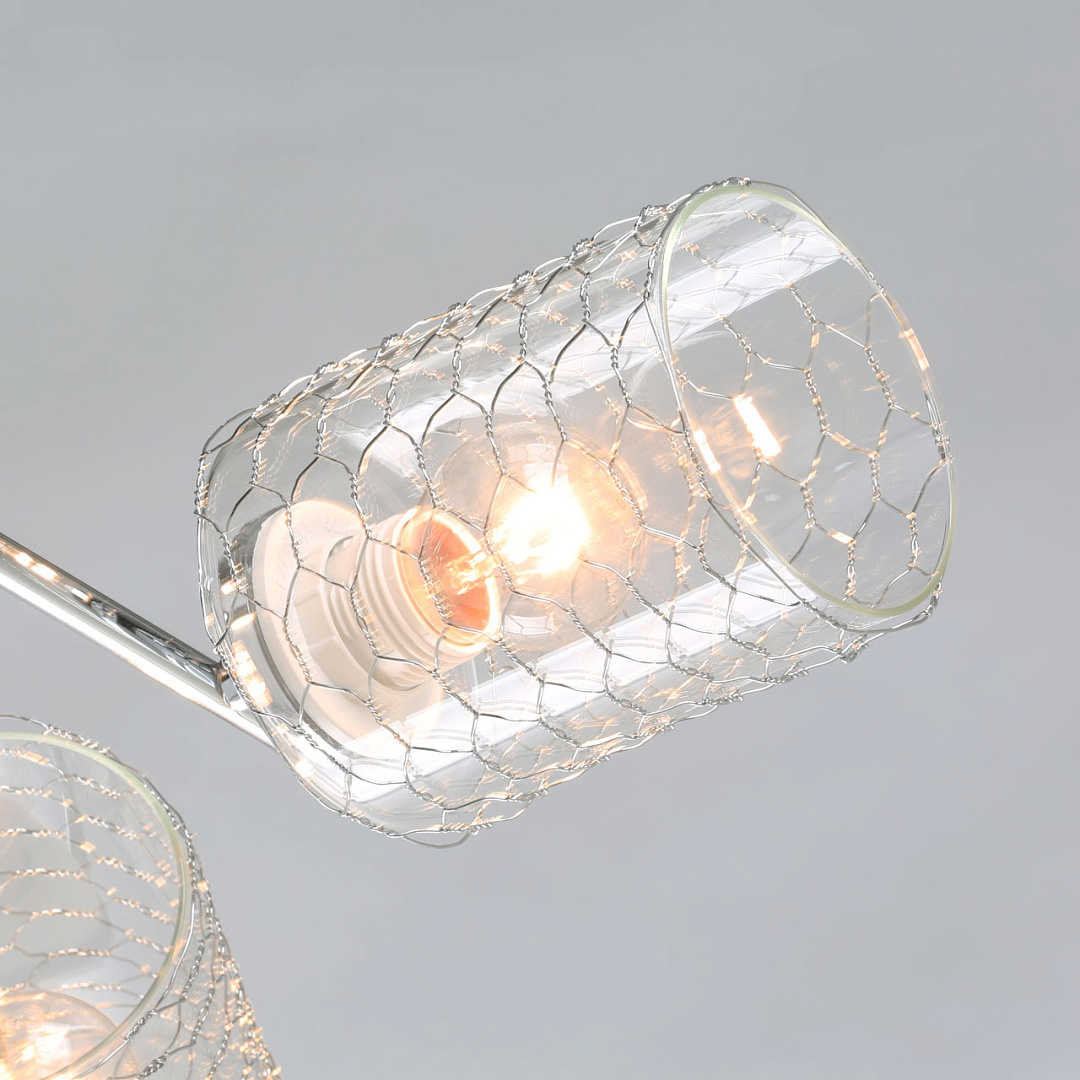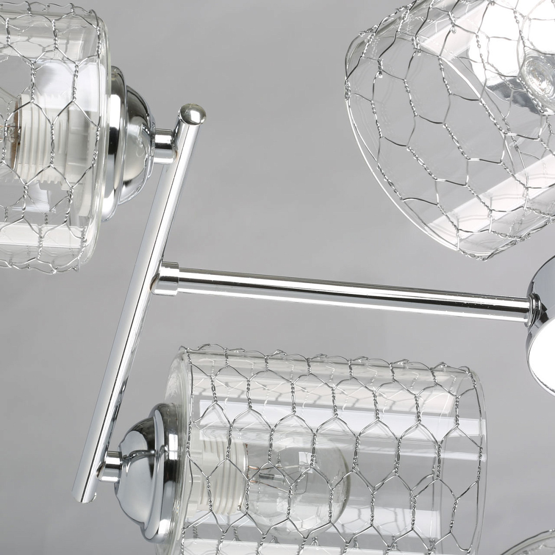 Минималистичный  светильник для современных интерьеров.Оригинальный металлический декор цвета хрома на плафонах добавляет декоративности.Стеклянные плафоны обеспечивают мягкий световой поток. Компактная высота модели идеальна для стандартных потолков.