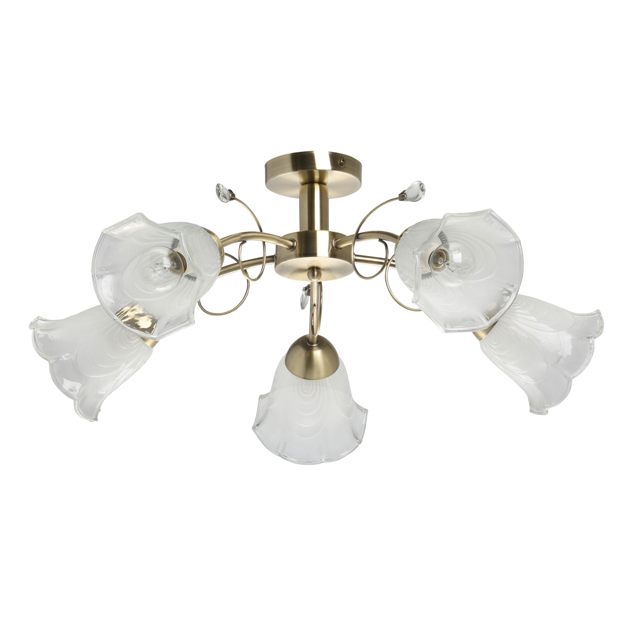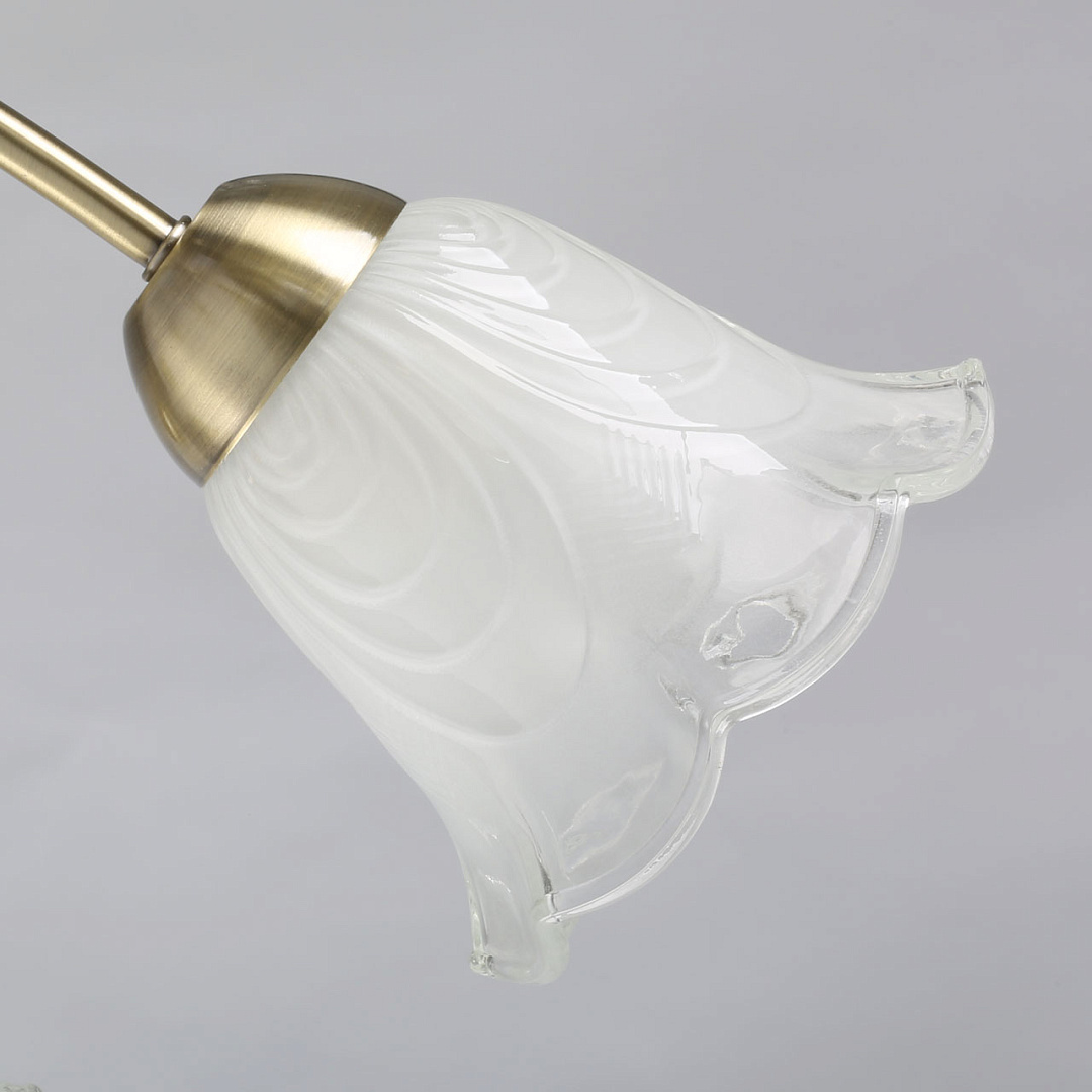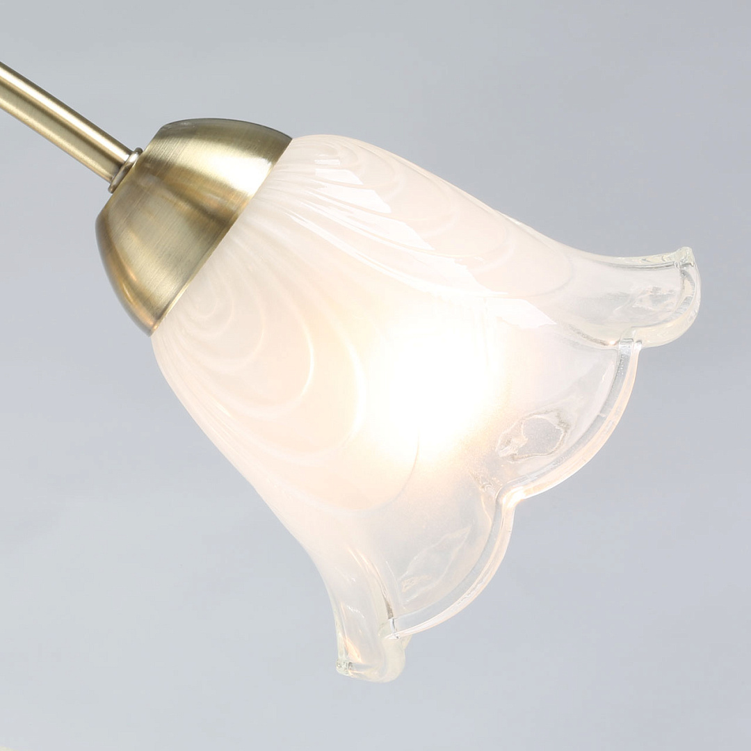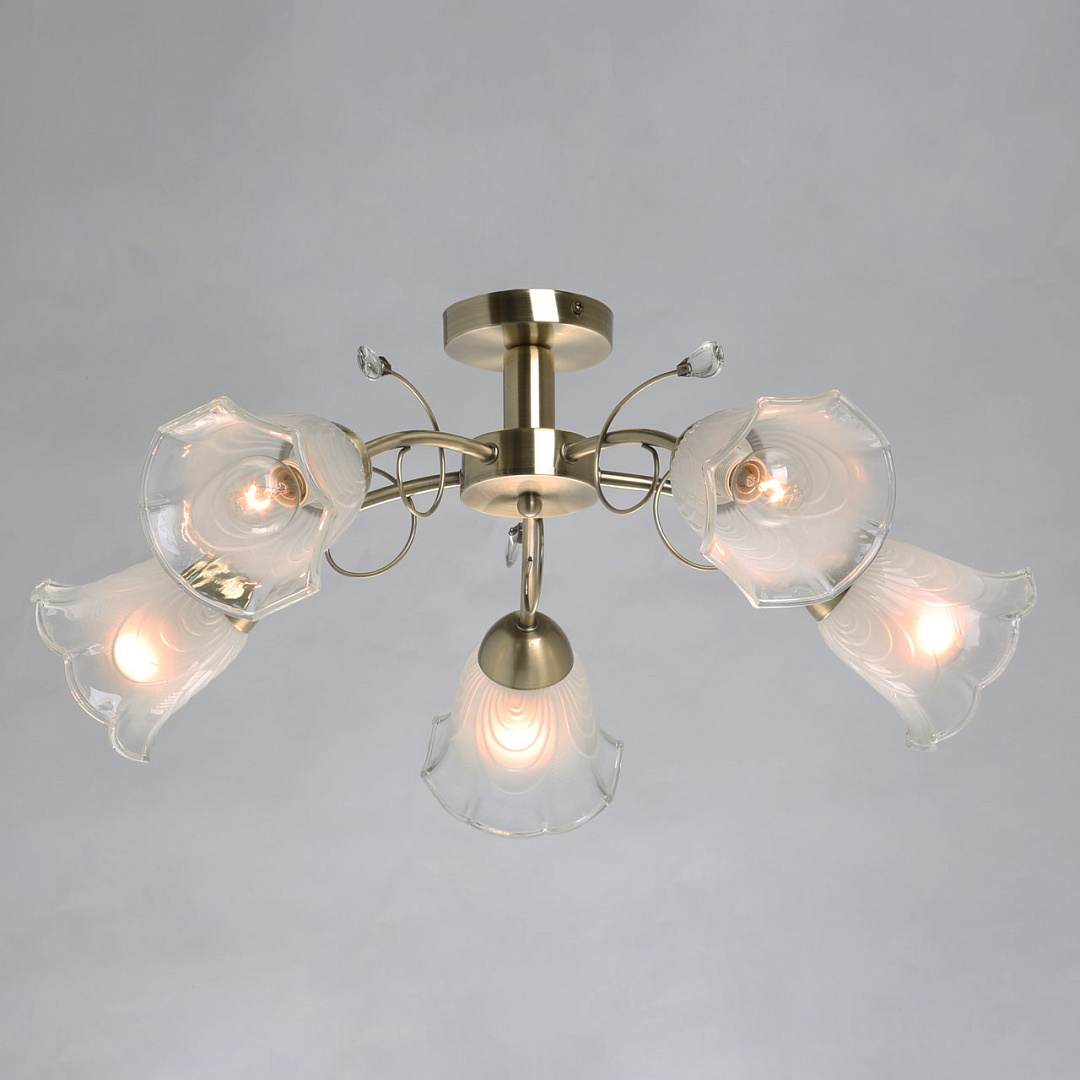 Классические элементы декора  цвета античной бронзы добавляют ценности модели.Матированные рельефные плафоны обеспечивают освещение.Потолочная люстра небольшой высоты сохраняет пространство комнаты