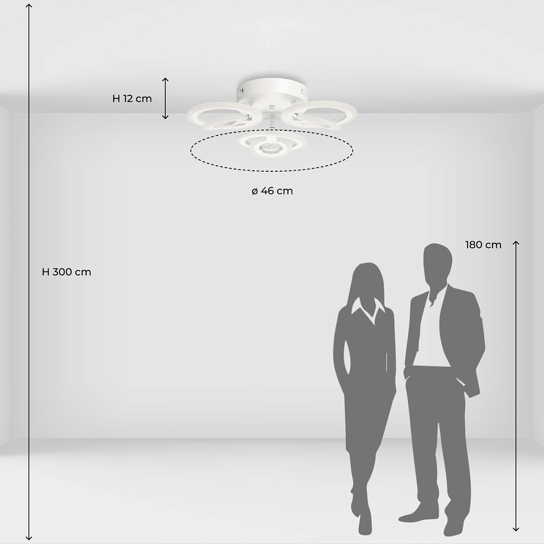 Многорежимность с изменением цветовой температуры и яркости света является элементом светодизайна. Универсальный белый цвет подойдет в любой интерьер. Качественные светодиоды обеспечивают яркое освещение и долгий срок службы. Наличие ПДУ позволяет управлять режимами освещения. Компактный светильник для стандартной высоты потолка.