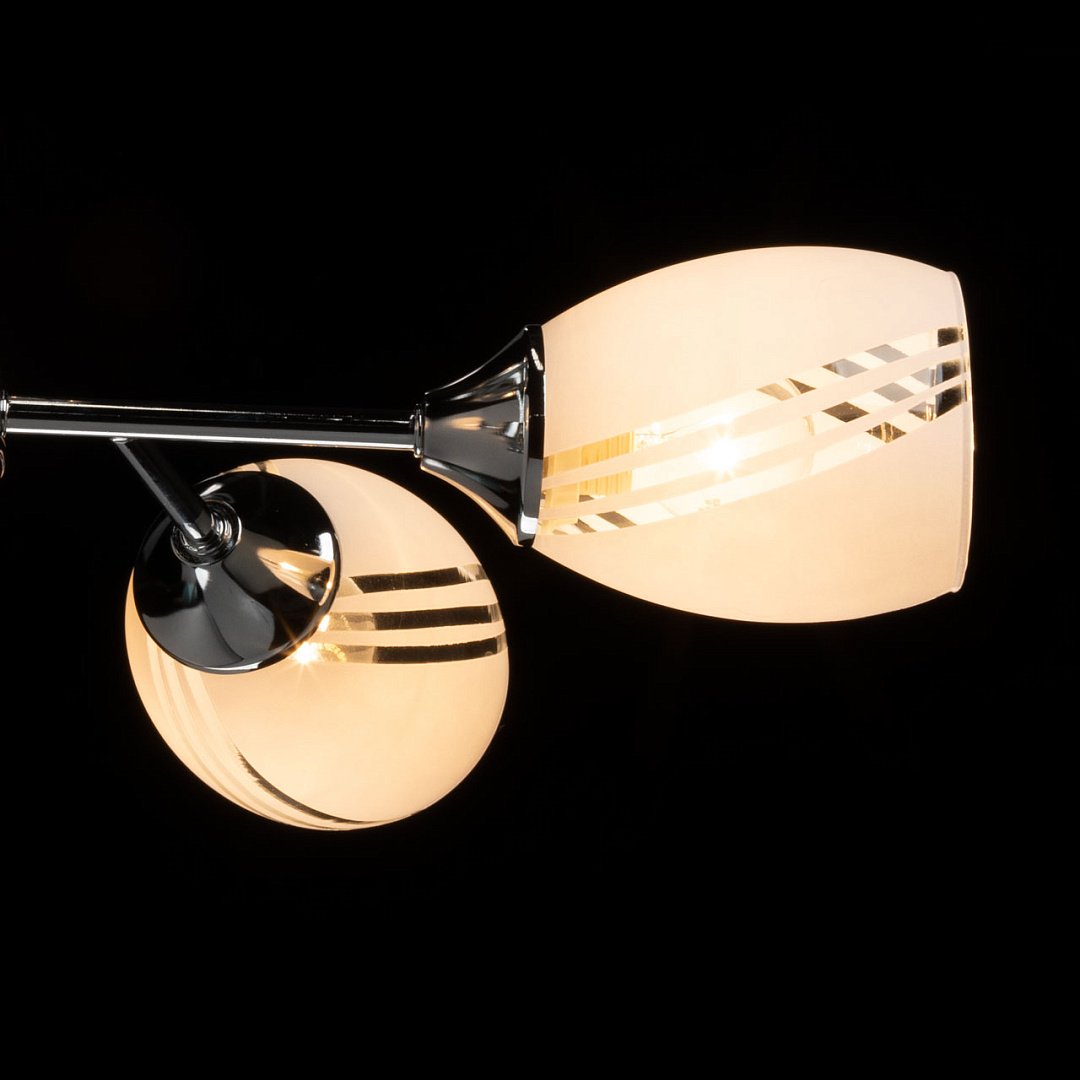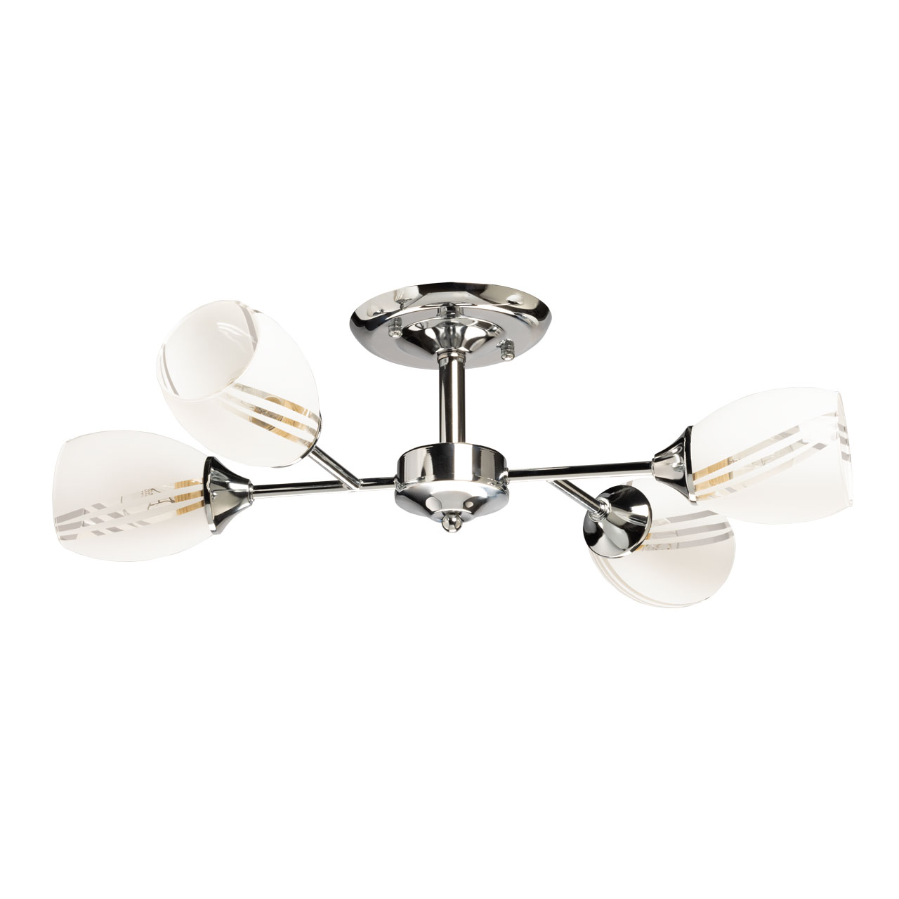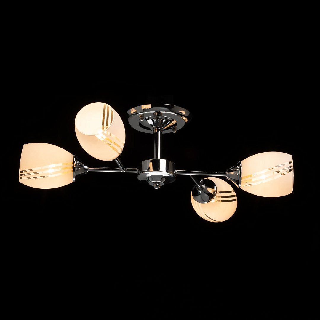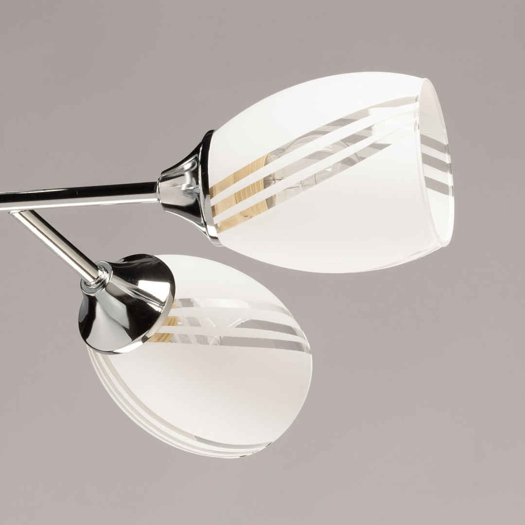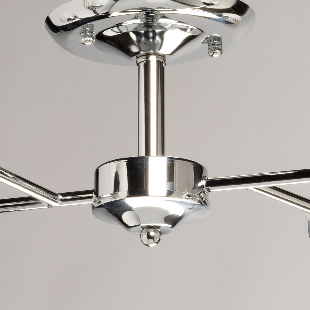 Насыщенный цвет блестящего хрома придает потолочной люстре современности. Направленность плафонов в разные стороны позволяет хорошо осветить комнату. Элегантно окрашенные плафоны мягко рассеивают свет. Заменяемые источники света удобны в эксплуатации. Компактный светильник для стандартной высоты потолка.