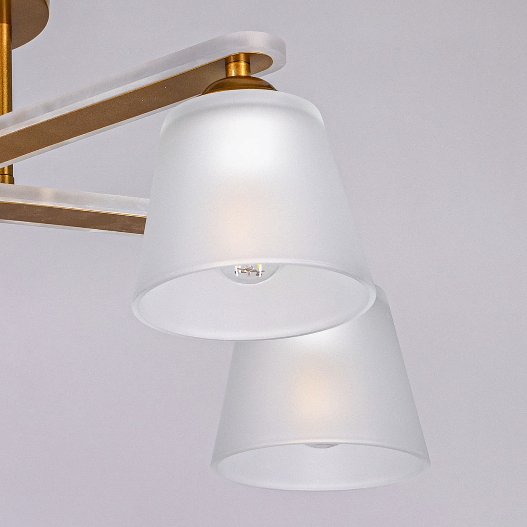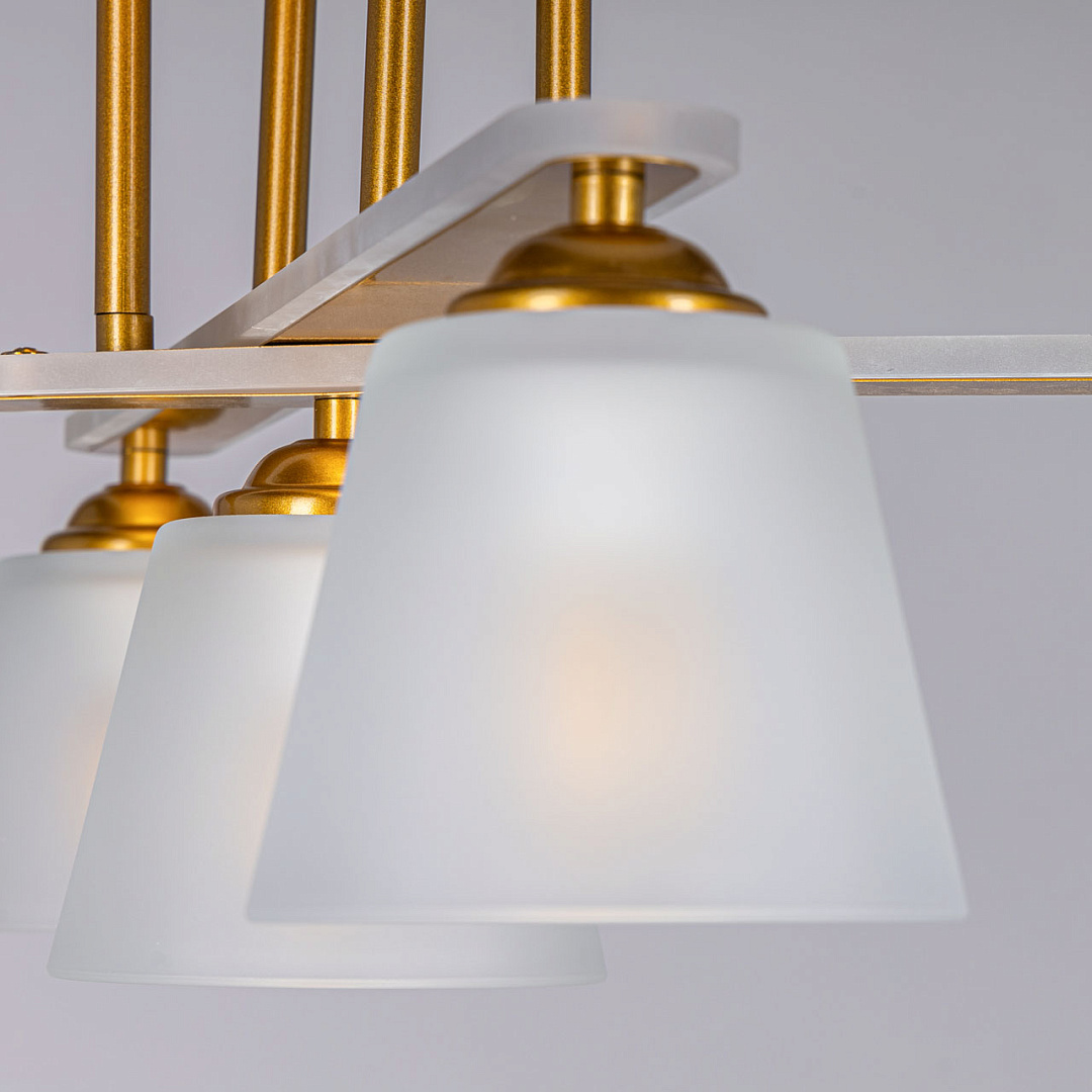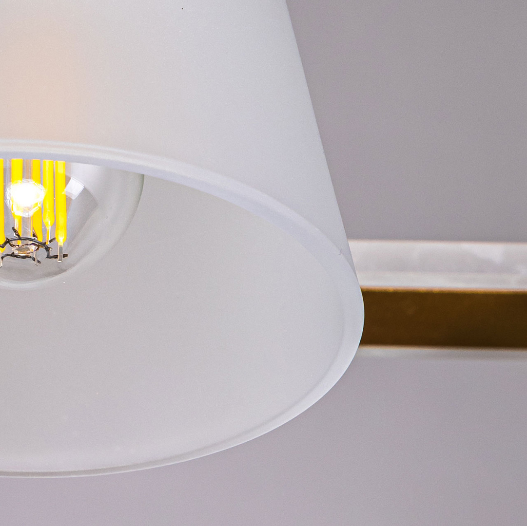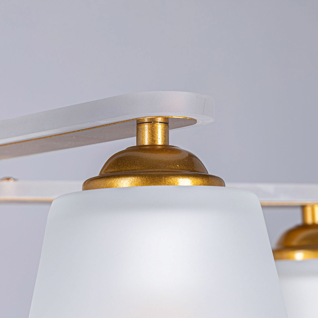 Минималистичный дизайн востребован на рынке декоративного света.Оригинальный комбинированный декор рожков из металла с окантовкой из матового акрила привлекает к себе внимание.Стеклянные матовые плафоны создают комфортное освещение.Свет, направленный вниз создает уютную световую зону.Компактный размер потолочной люстры сохраняет пространство комнаты и подходит к стандартным потолкам.Заменяемые источники света удобны в эксплуатации.