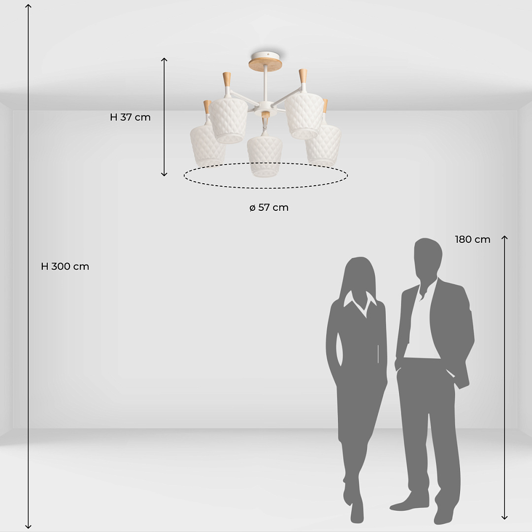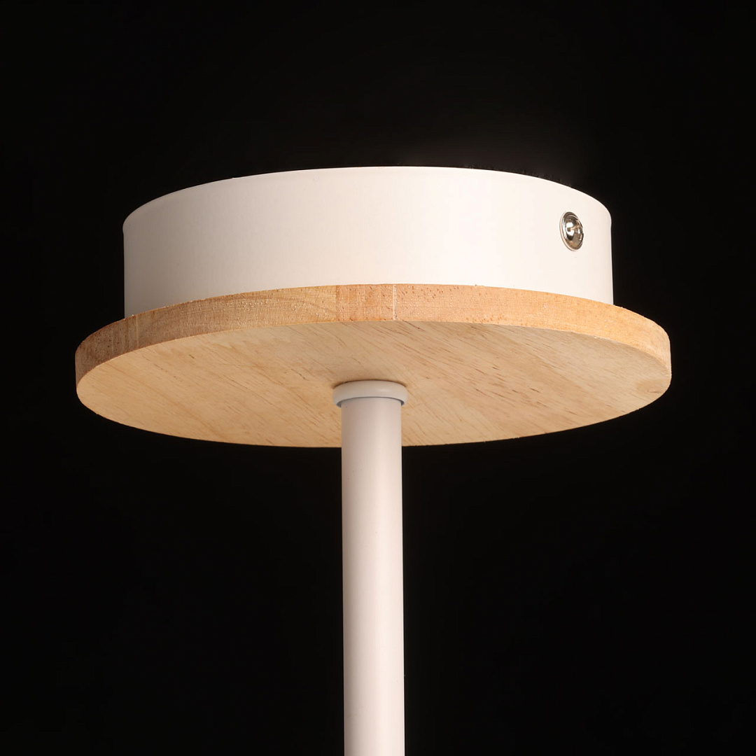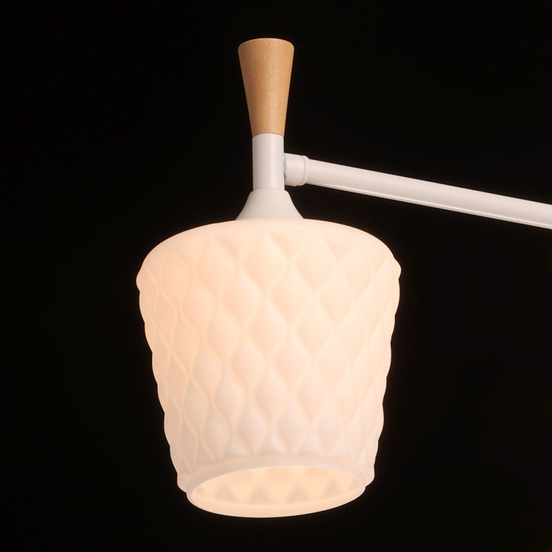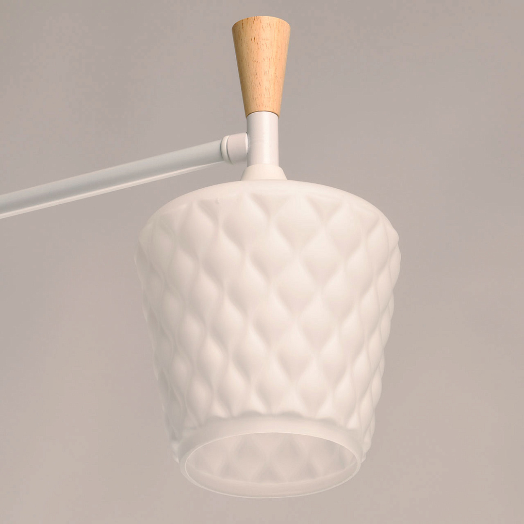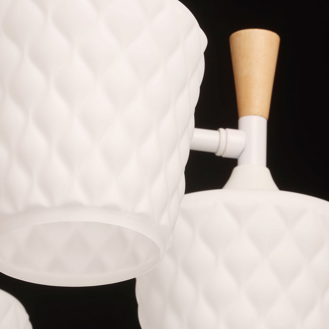 Универсальный белый цвет потолочной люстры подходит к любому интерьеру. Оригинальный орнамент белых плафонов придает лаконичной люстре декоративности. Элементы из натурального дерева в тренде природности. Заменяемые источники света удобны в эксплуатации. Компактный размер потолочной люстры сохранит пространство комнаты при стандартных потолках.