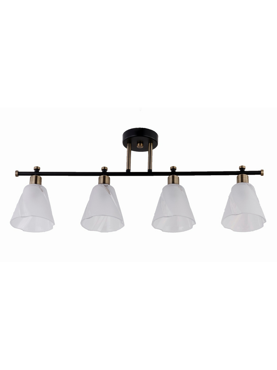 Комбинация металлов черного цвета и античной бронзы является классическим и элегантным решением, которое часто используется в современных интерьерах.Белые матовые плафоны оригинальной формы, направленные вниз, создают мягкое и рассеянное освещение, которое равномерно распространяется по комнате.Компактная высота светильника оптимальна для стандартной высоты потолка.Заменяемые источники света удобны в эксплуатации.