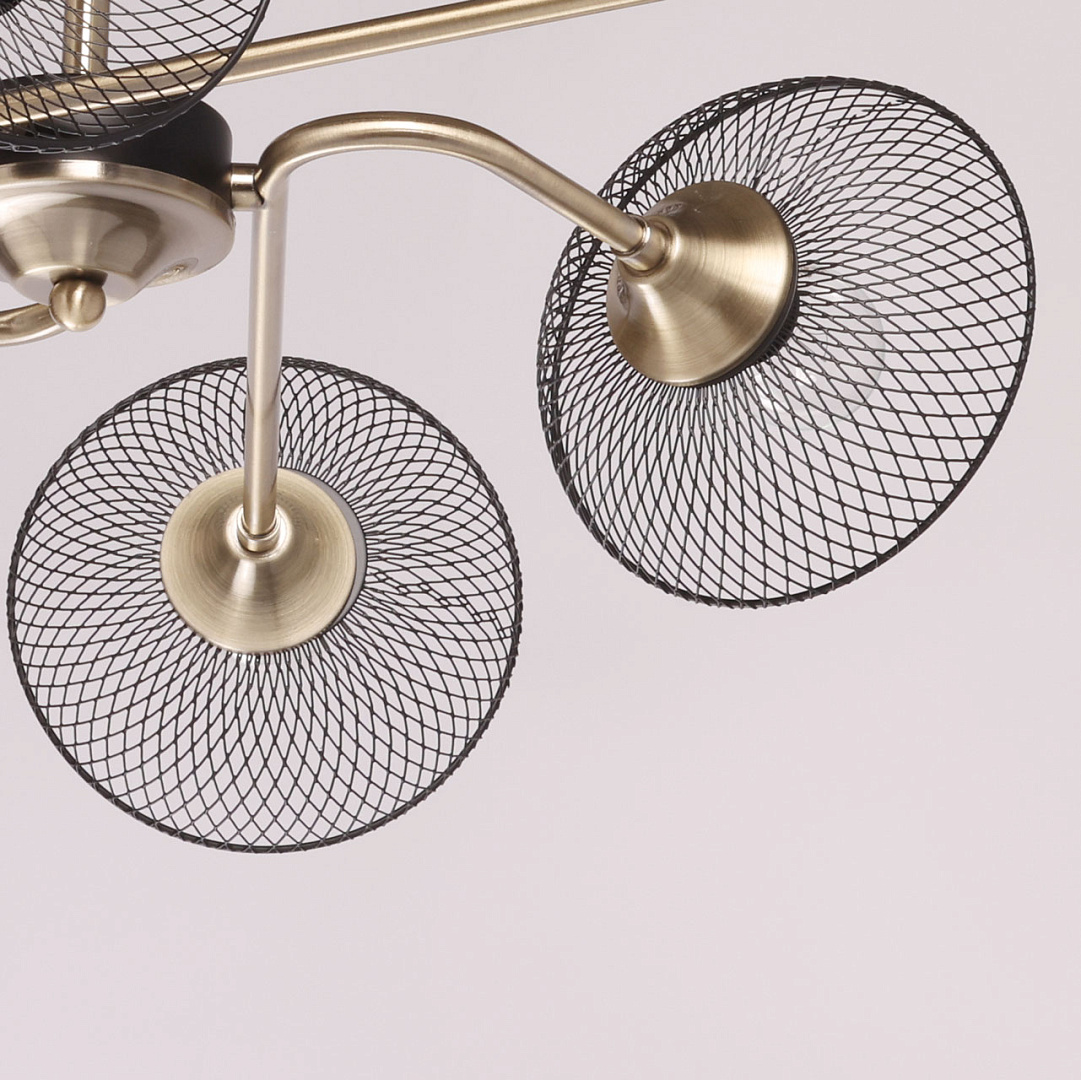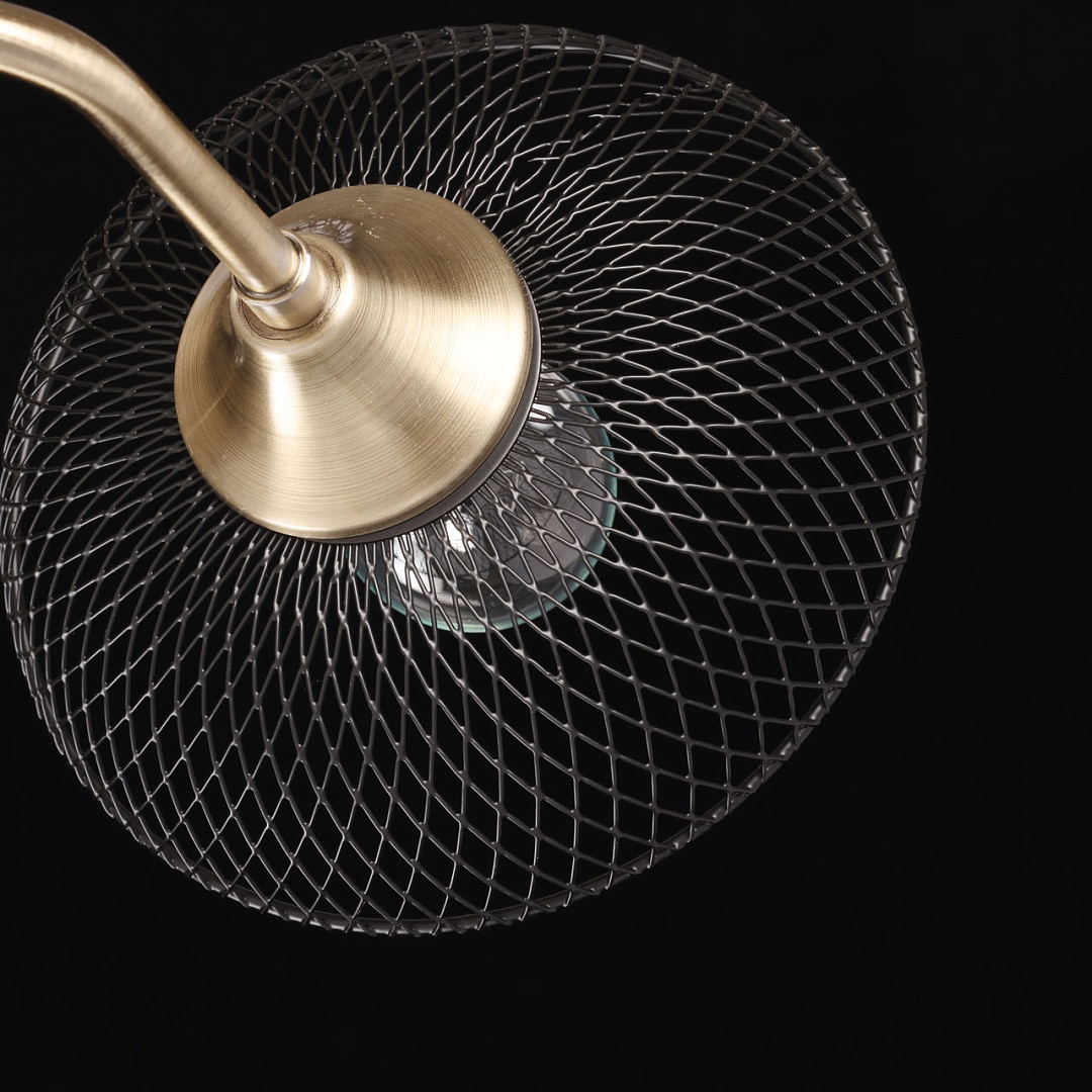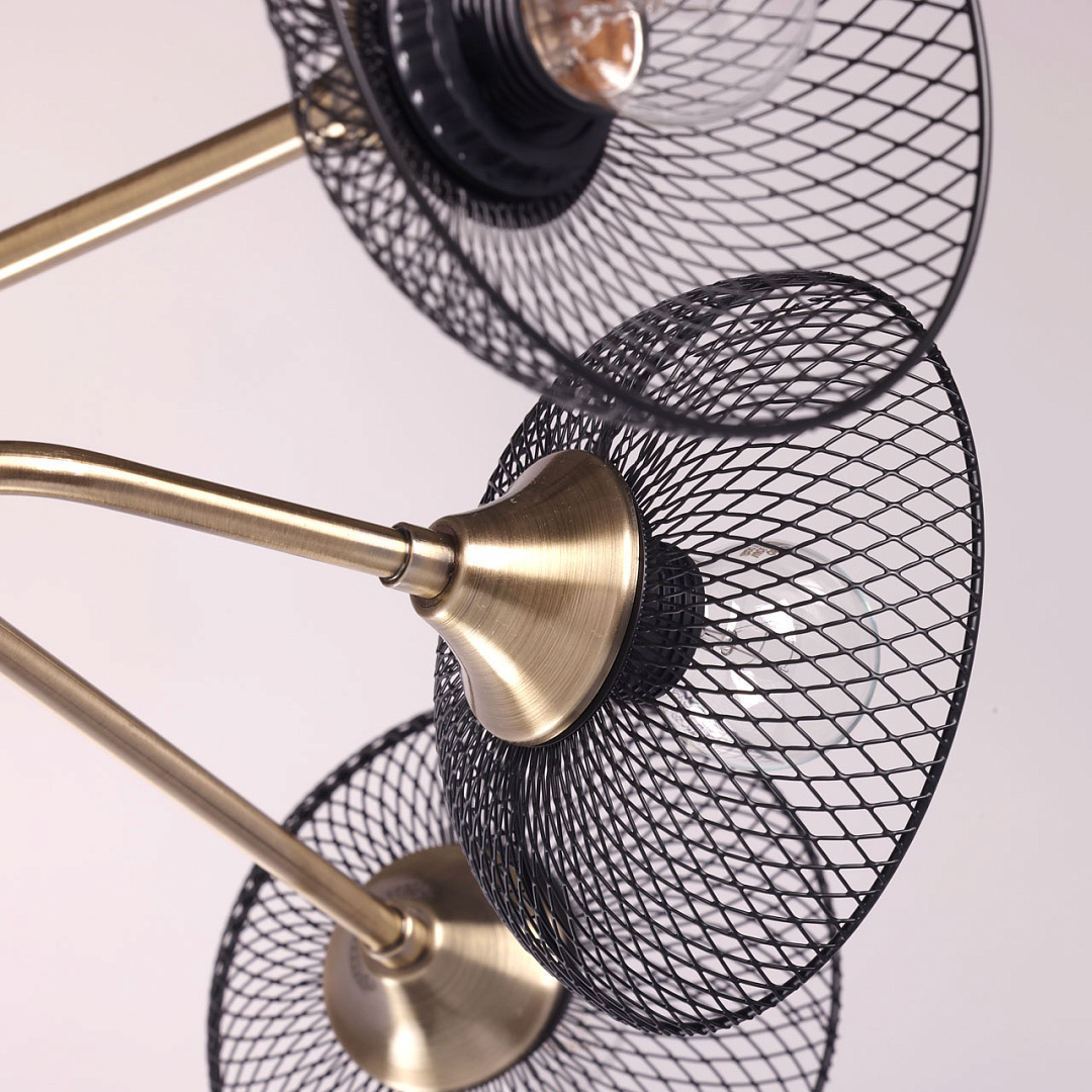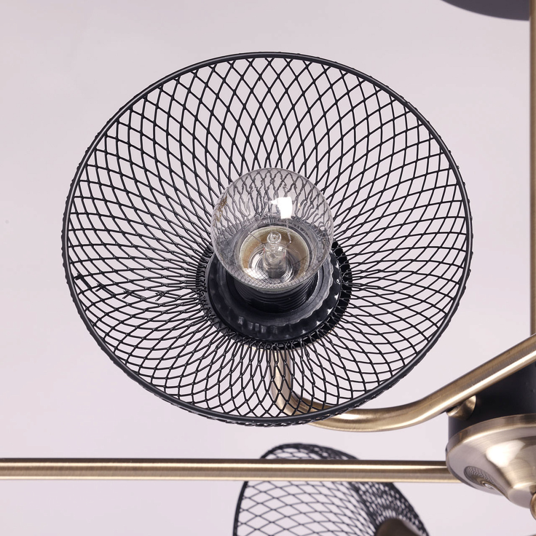 Гармоничное сочетание черного цвета и цвета бронзы основания придает люстре сдержанный и элегантный вид. Добавление цвета бронзы вносит теплоту и шарм в стиль интерьера. Металлические плафоны в форме сетки придают люстре оригинальность и уникальность, делая ее привлекательным акцентом в помещении. Заменяемые источники света удобны в эксплуатации.