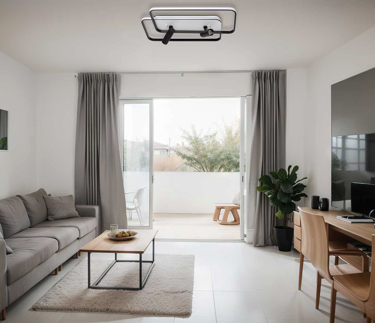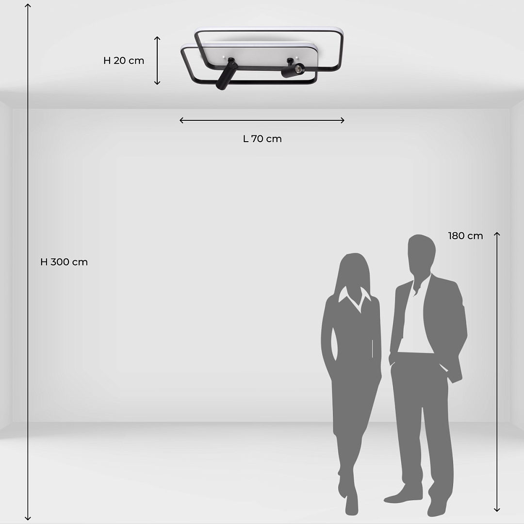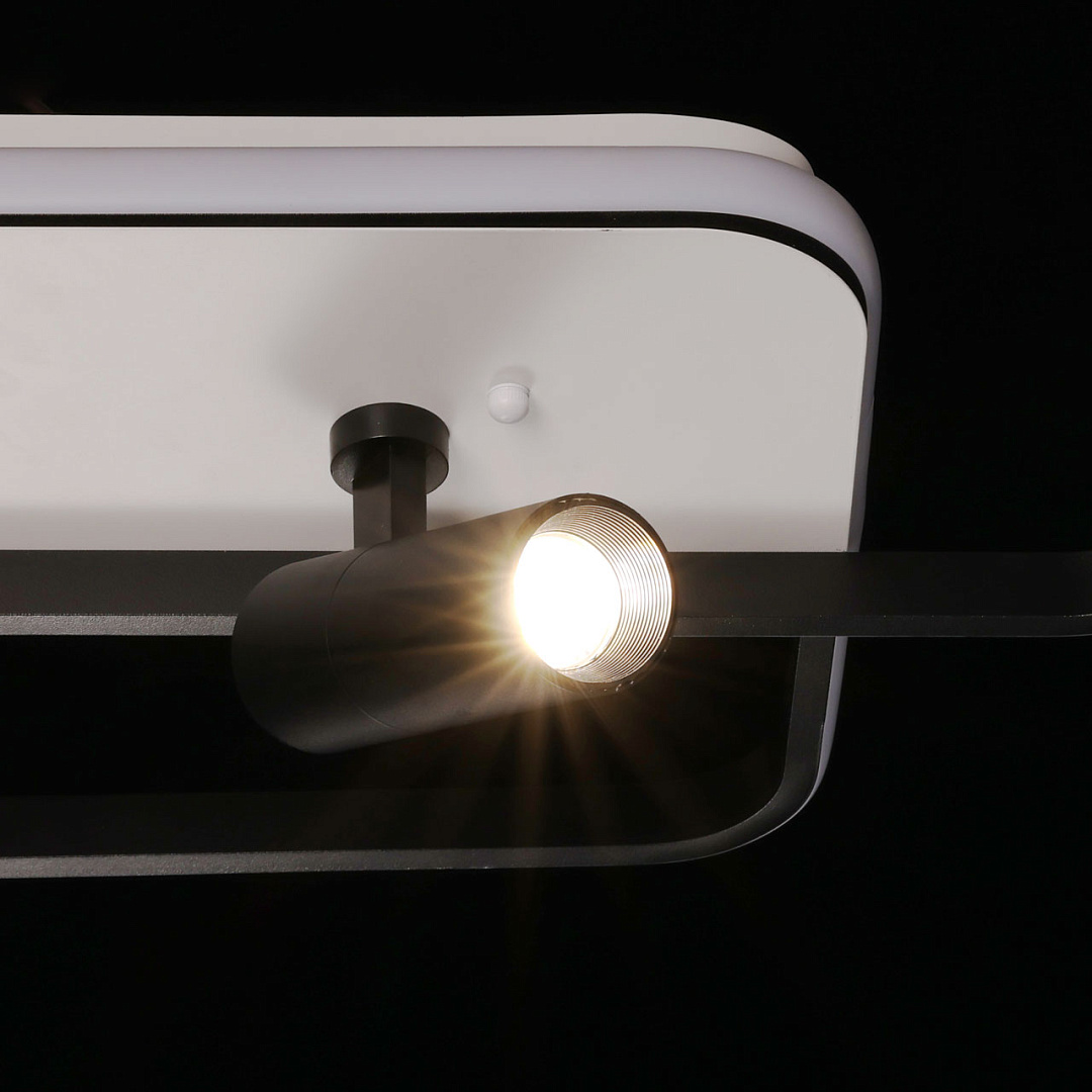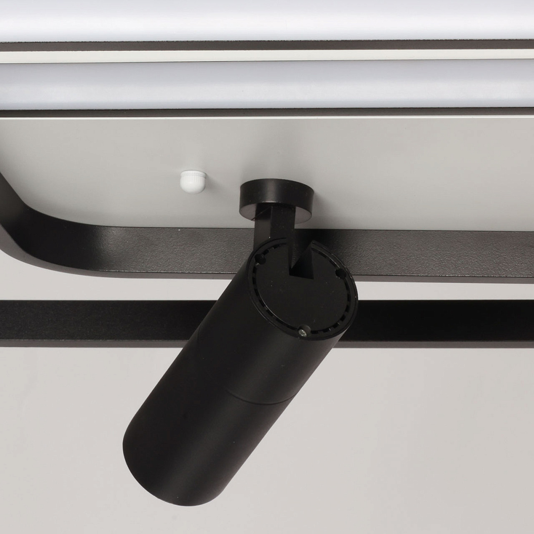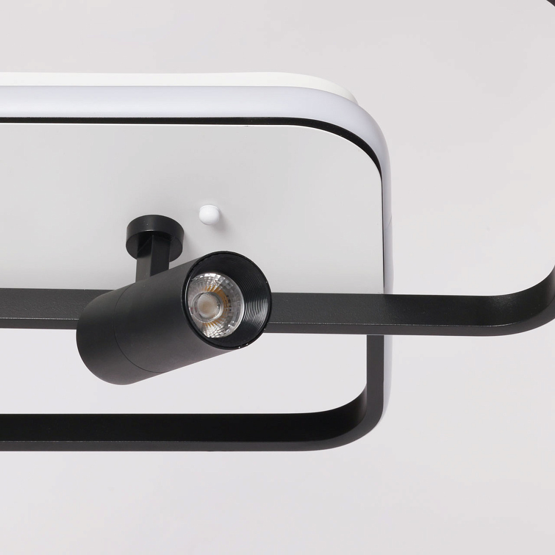 Контрастный черный цвет плафонов в сочетании с белым цветом основания обеспечивает актуальный дизайн и добавляет люстре концептуальности. Матовый акрил мягко рассеивает свет, создавая комфортное освещение. Многорежимность освещения от 3000К до 6500К позволяет подобрать комфортную температуру света. Качественные светодиоды экономичны и безопасны. Поворотные споты позволяют направлять световой поток в нужную сторону, что создает акцентное освещение. Компактный размер потолочной люстры подойдет к интерьерам со стандартным потолком. Наличие ПДУ удобно в эксплуатации.