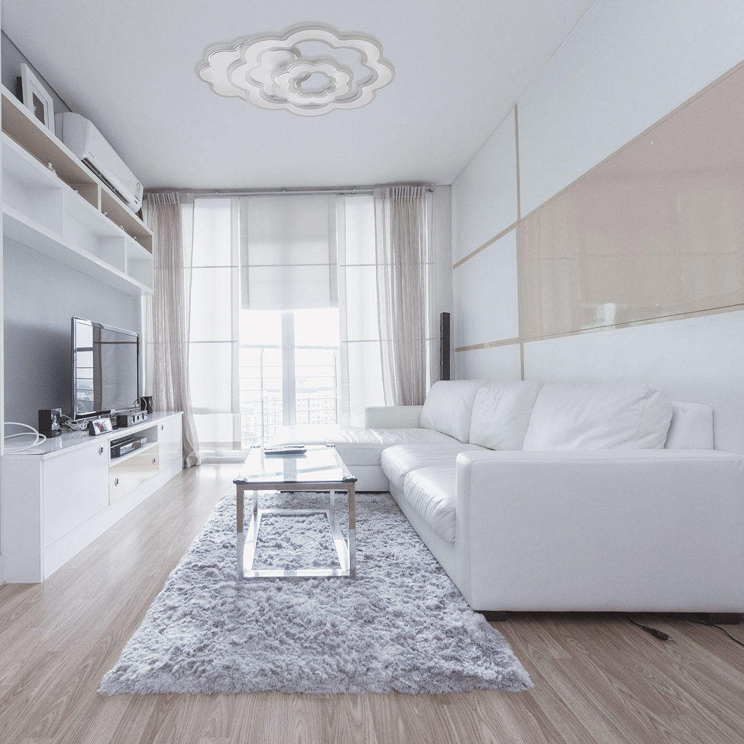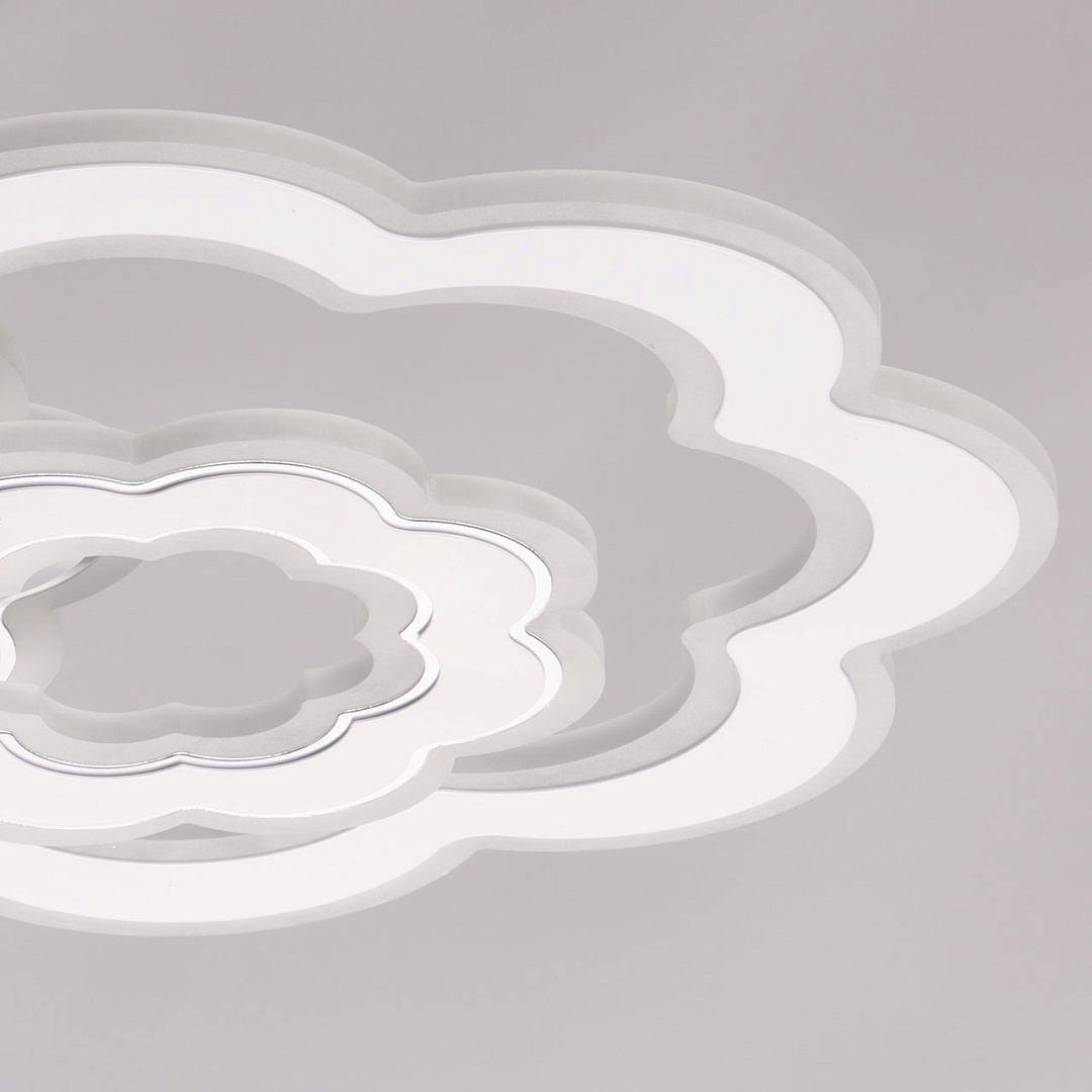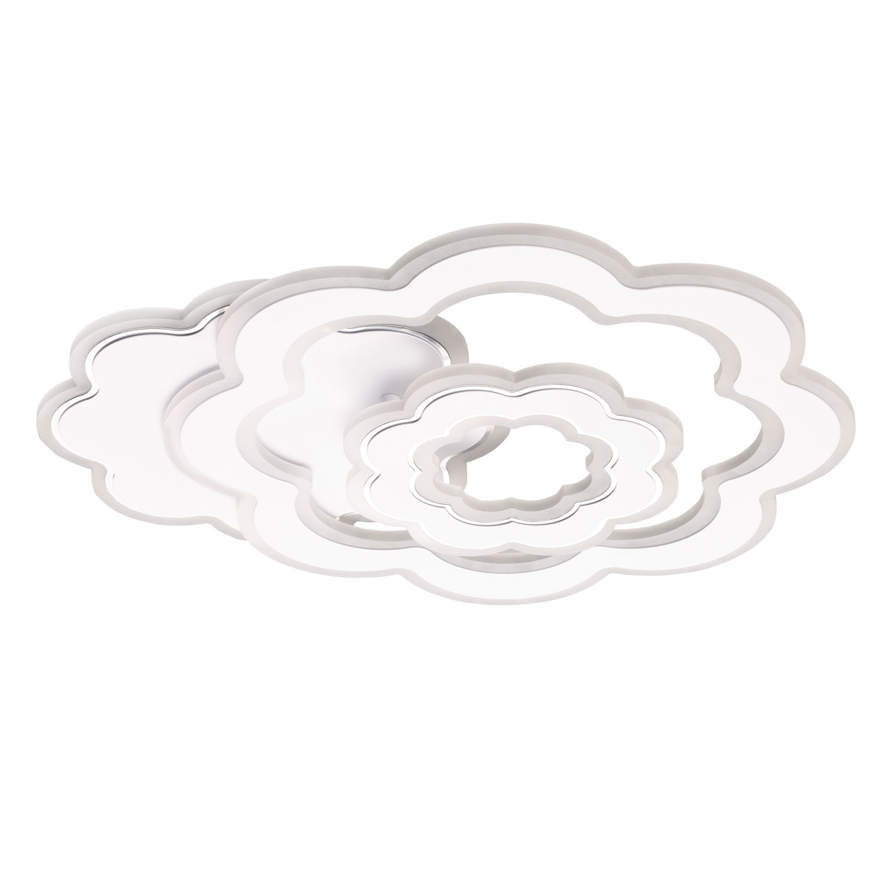 Универсальный белый цвет люстры подходит к любому интерьеру. Инновационный источник света создает яркое освещение. Облачный дизайн потолочной люстры формирует романтичное настроение. Возможность менять температуру света мощность обеспечивает комфорт и хороший отдых. Наличие пульта дистанционного управления позволяет удобно менять режимы освещения. Светодиодные источники света безопасны и экономичны.