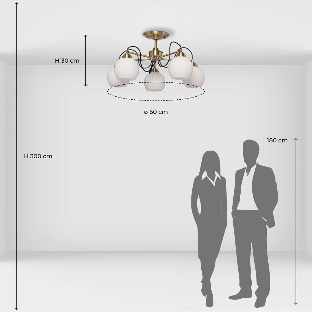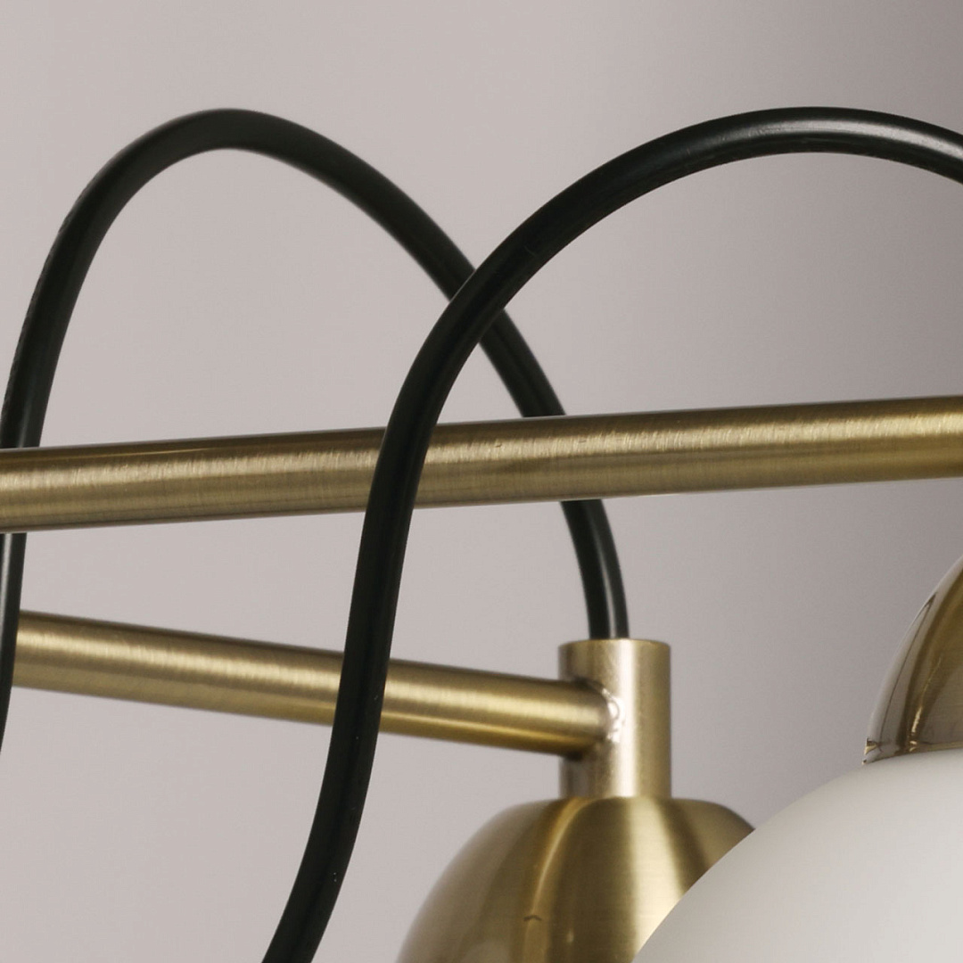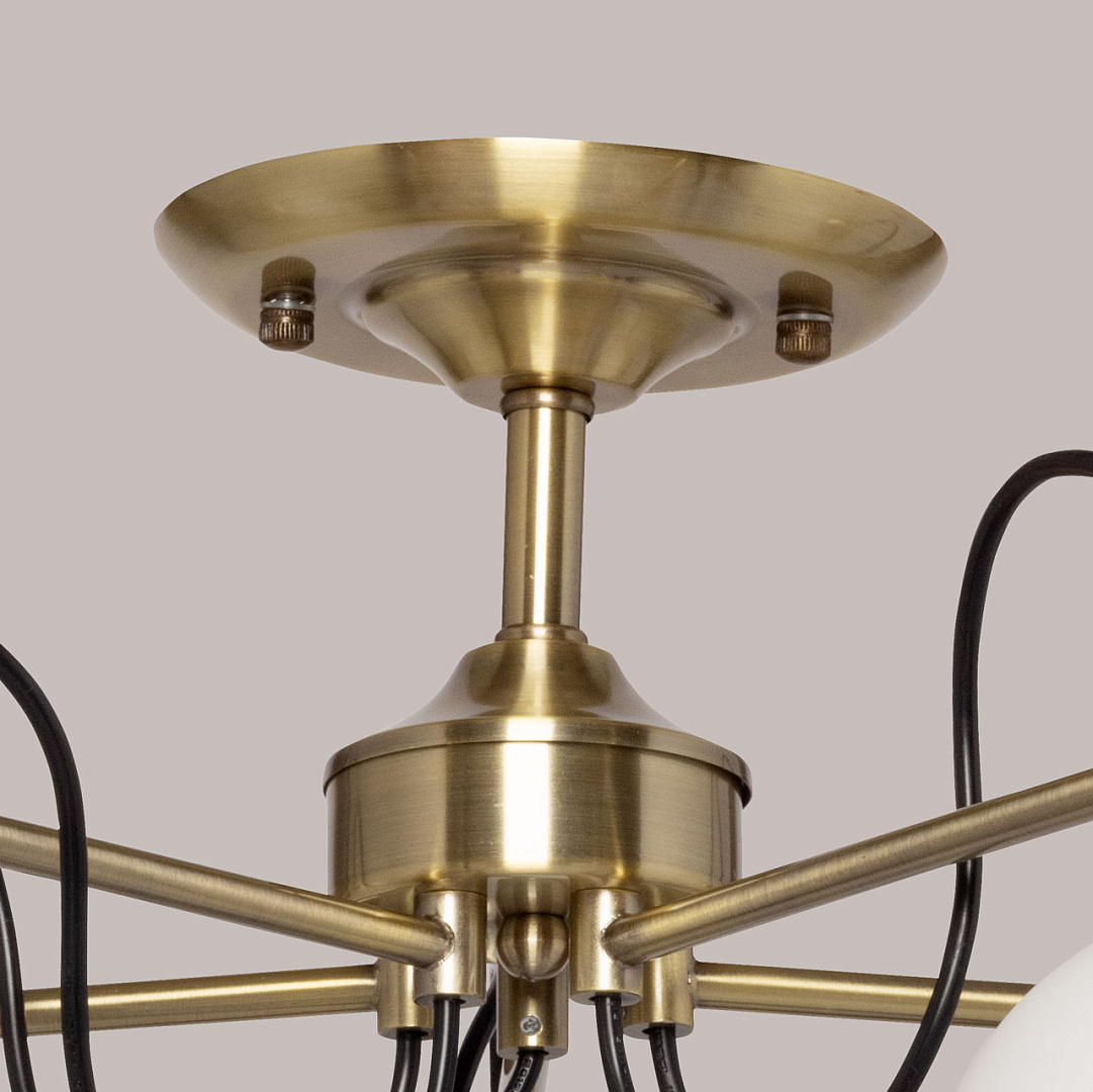 Благодаря сочетанию цвета античной бронзы и матового стекла люстра привнесет в интерьер атмосферу уюта. Современности и стиля светильнику придают контрастные черные наружные кабели. Свет, направленный вниз создает яркое зональное освещение. Заменяемые источники света удобны в эксплуатации.