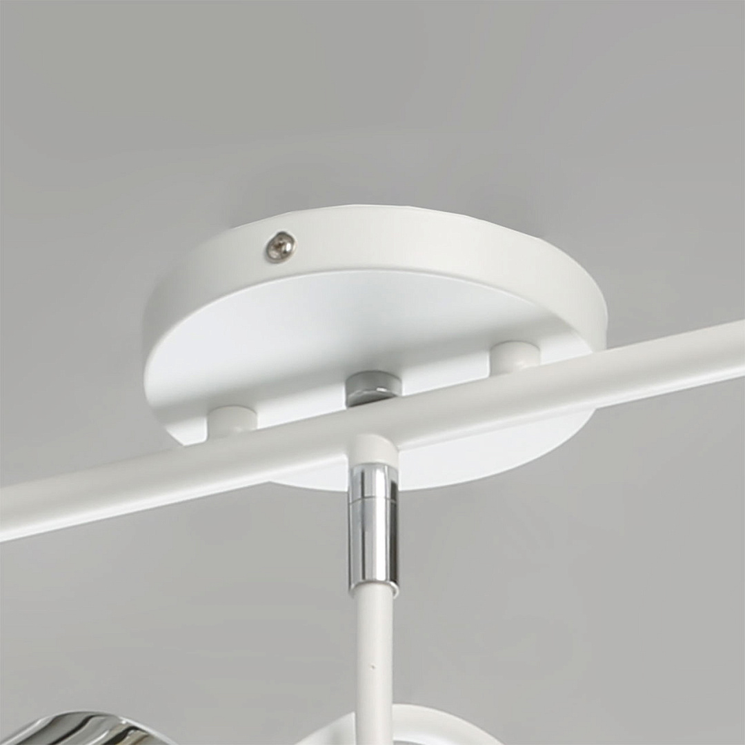 Модное сочетание белого цвета и цвета хром придаст элегантности интерьеруНаправленный в разные стороны свет ярко осветит пространствоПрекрасно подойдет в коридор и в кухнюЗаменяемые источники света удобны в эксплуатации
