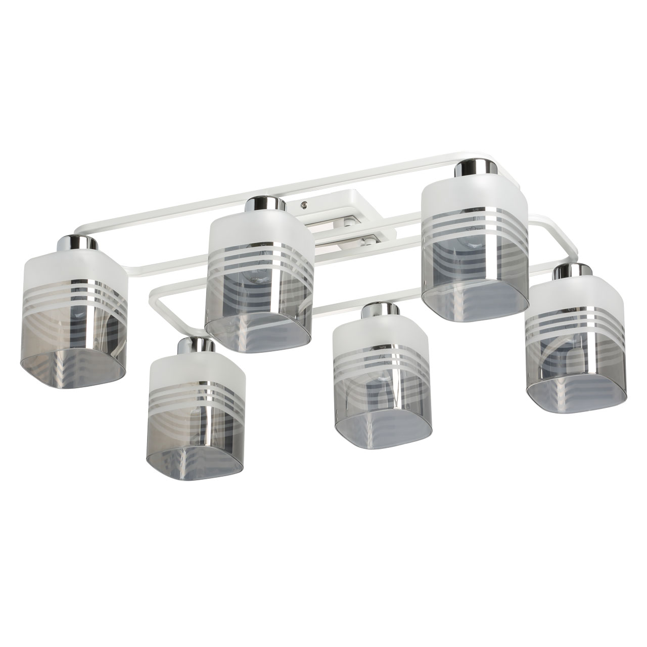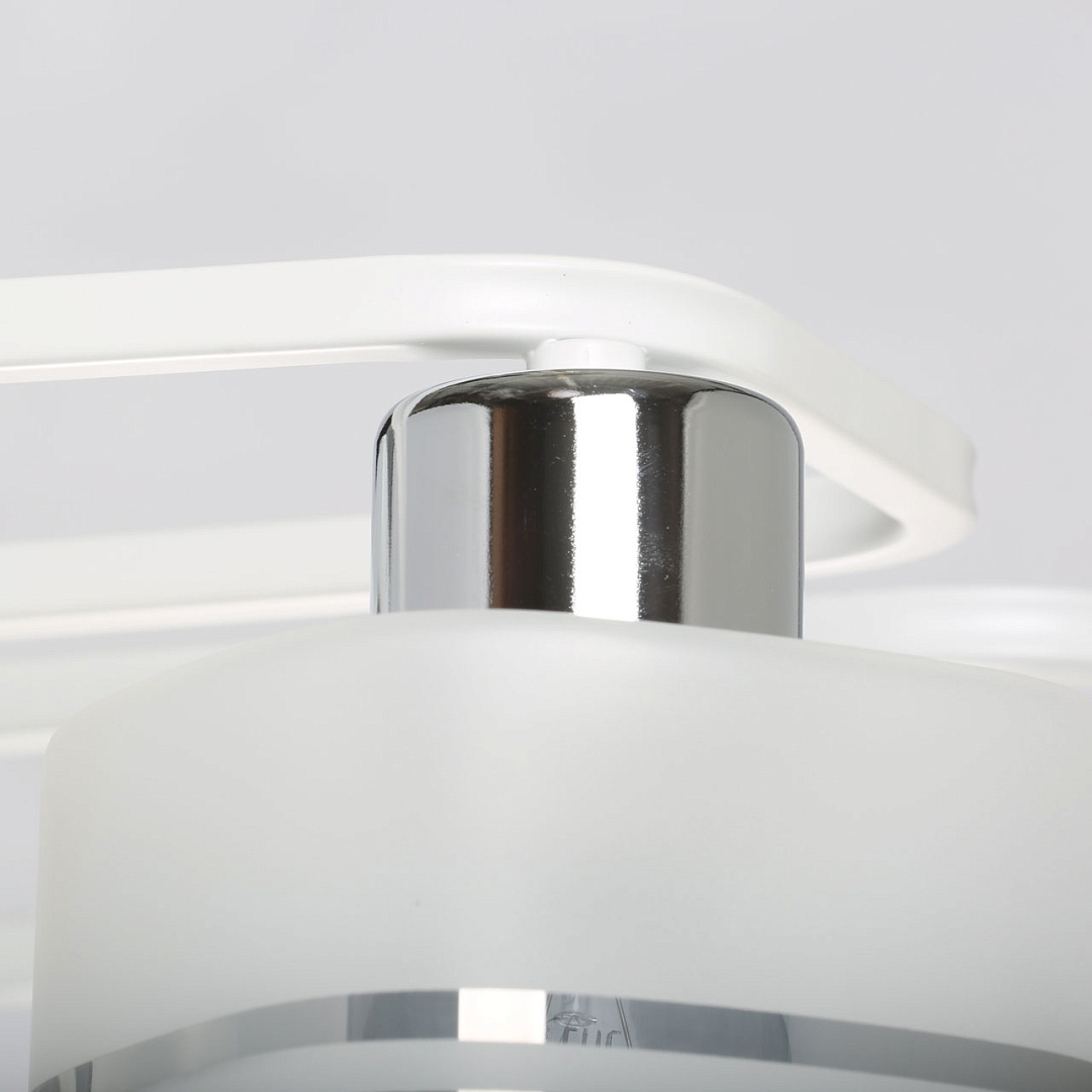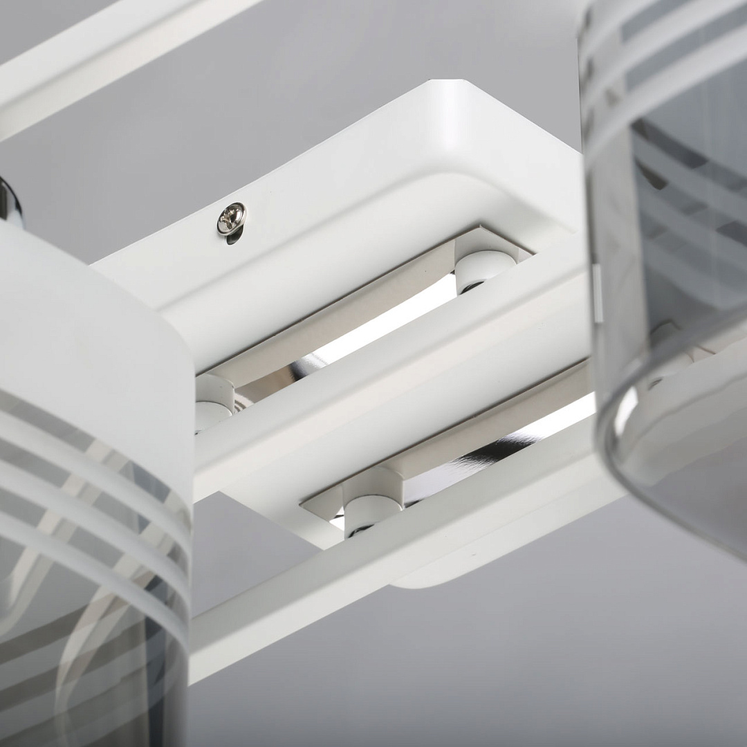 Компактный светильник для небольших помещений.Популярное сочетание белого и цвета хрома основания светильника.Цилиндрическая форма плафонов из стекла дымчатого оттенка как элемент дизайна.Заменяемые источники света удобны в эксплуатации.Потолочная люстра в гостиную, в спальню в современном дизайне.