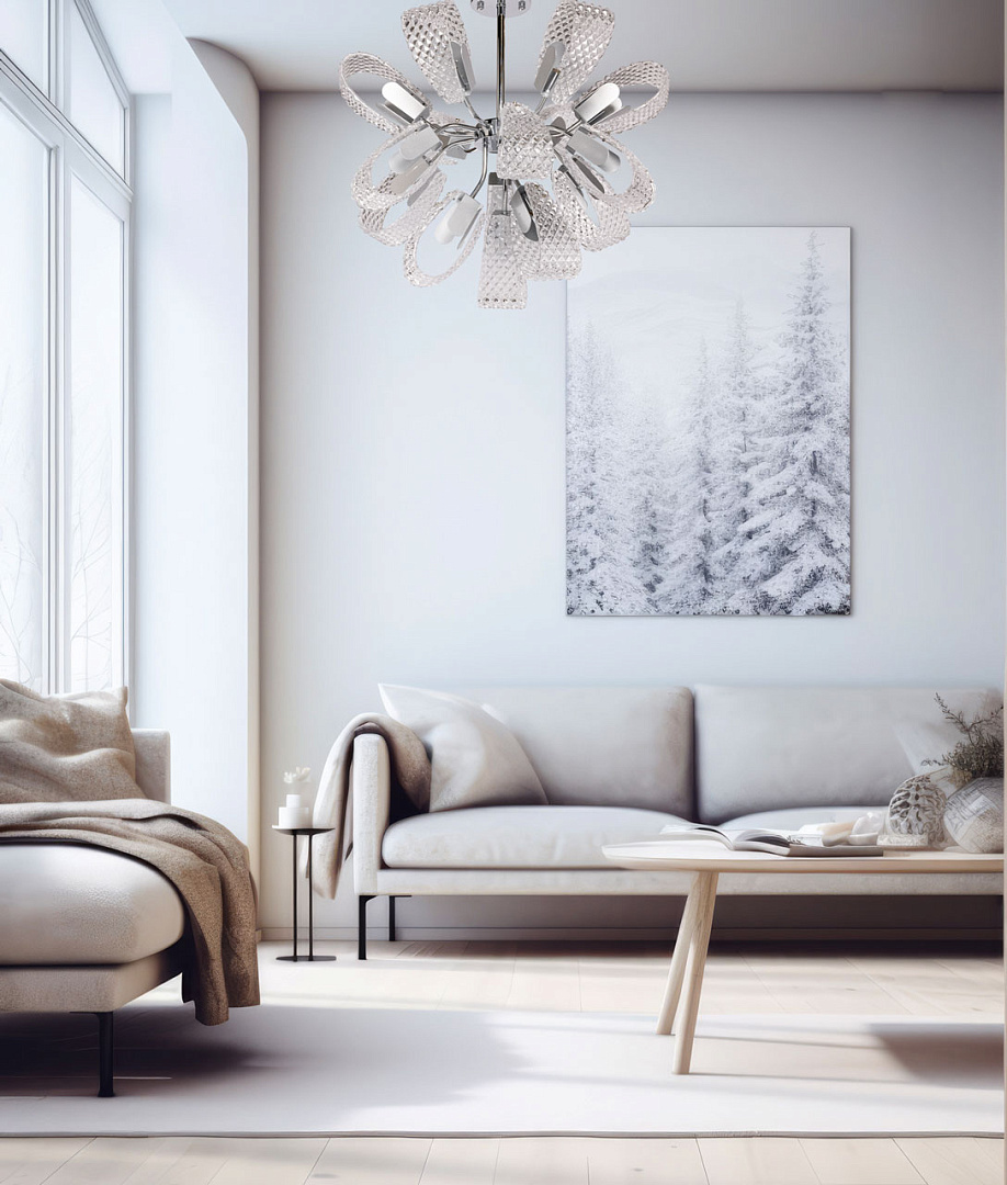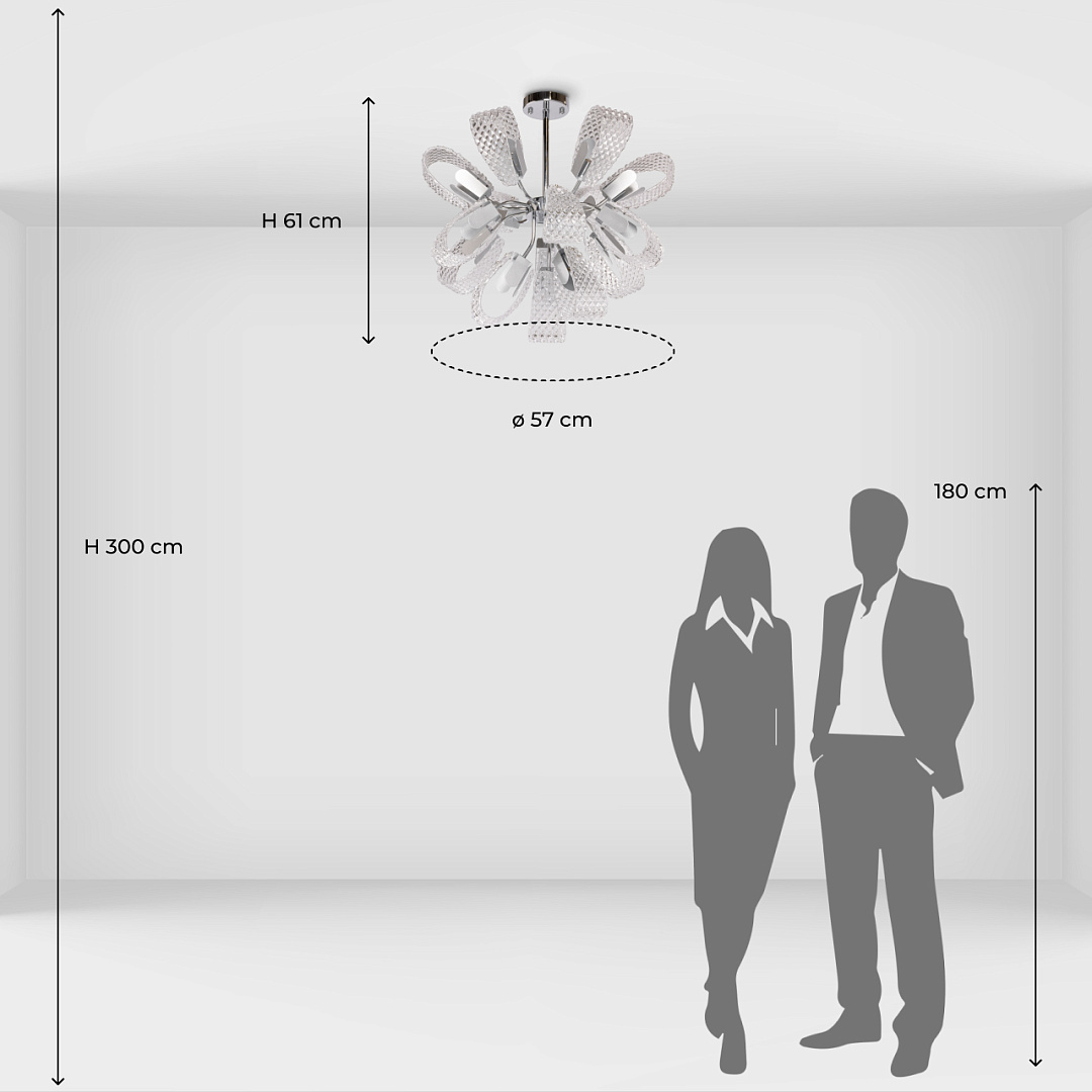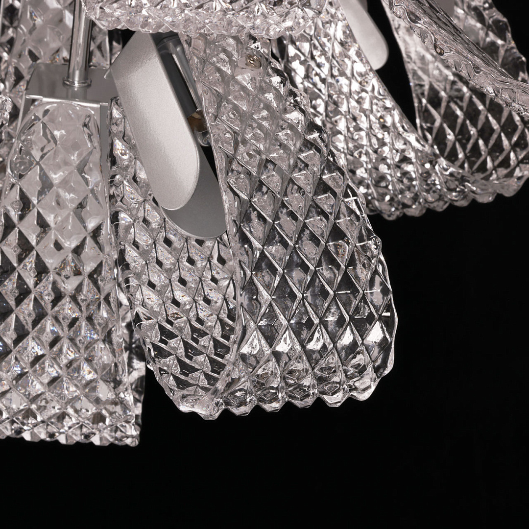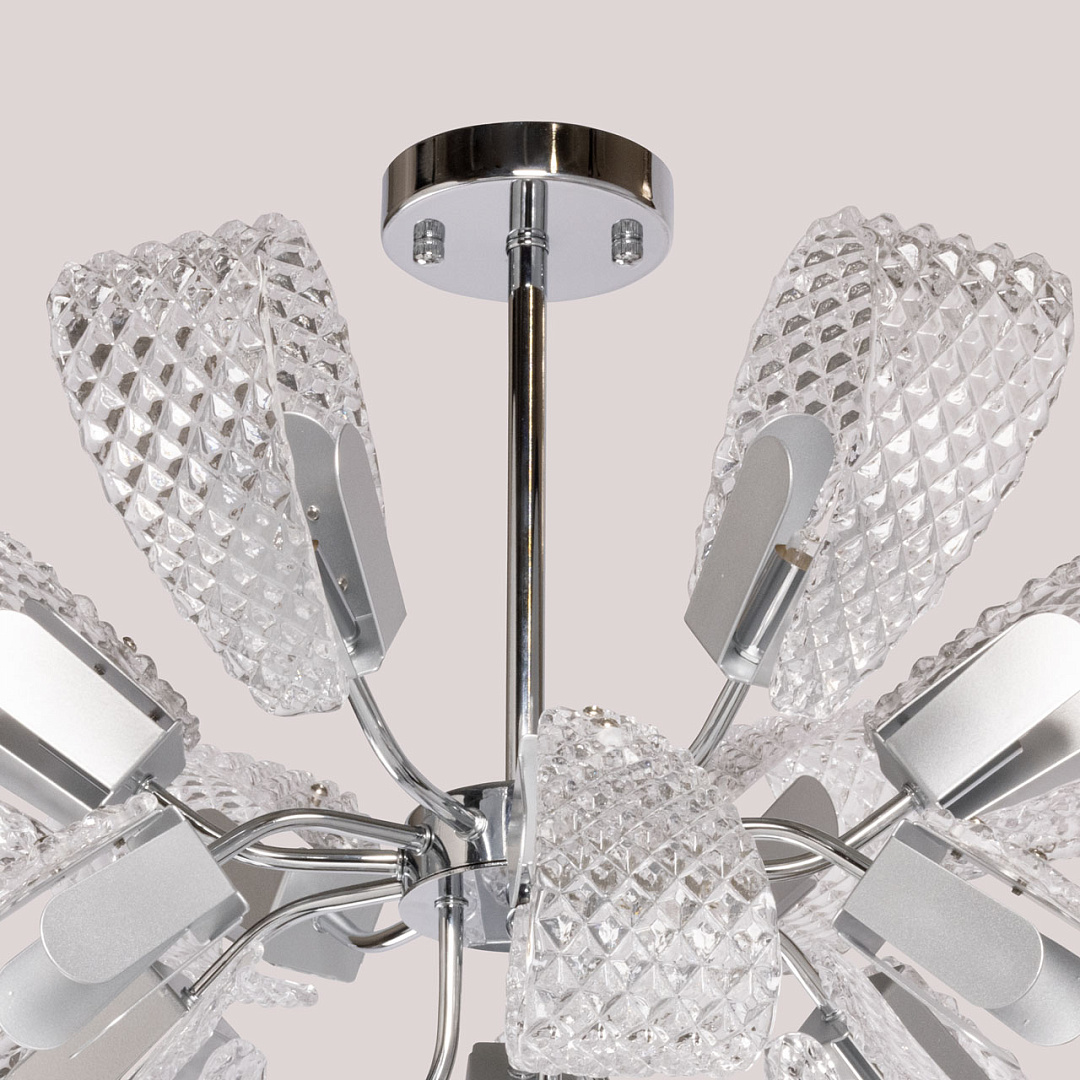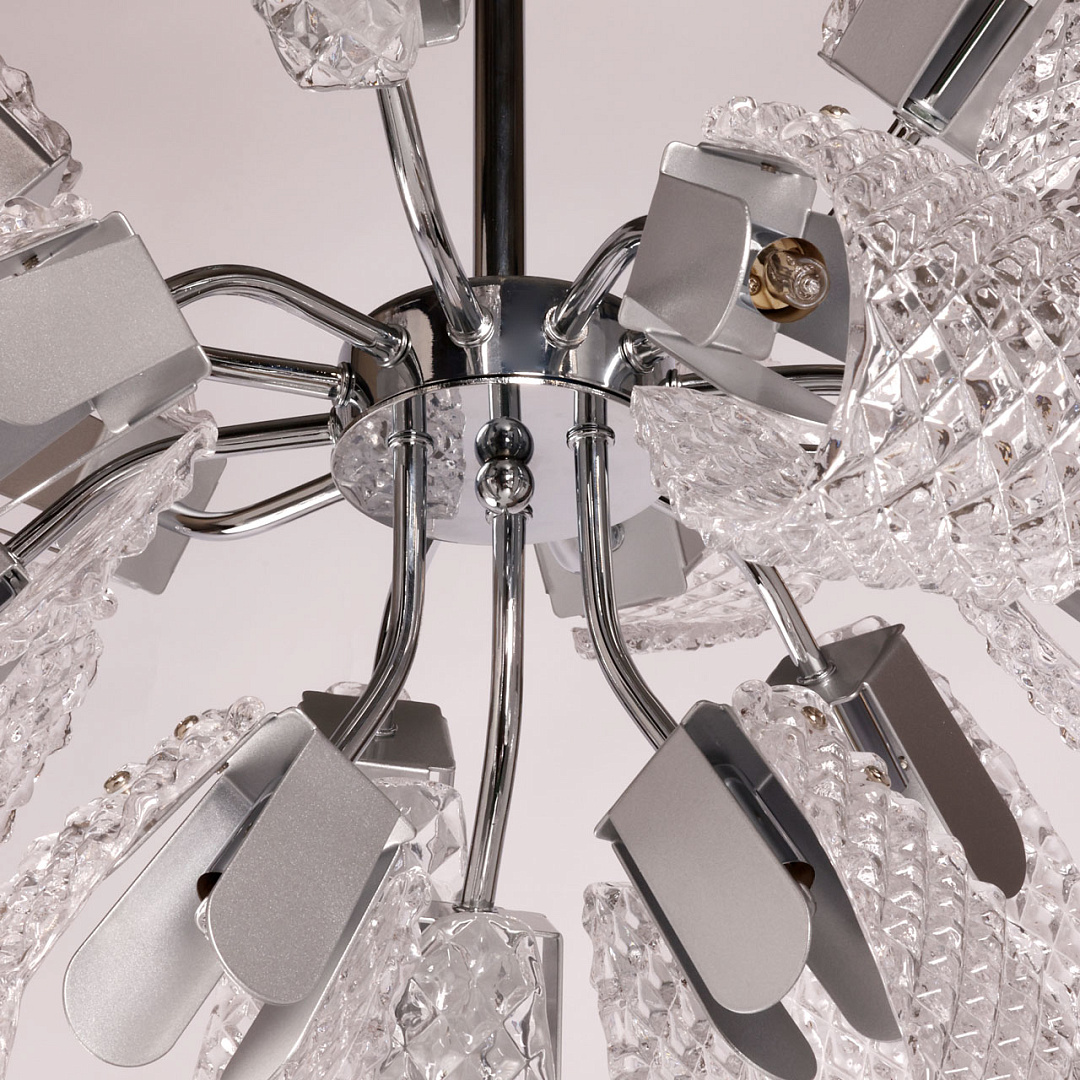 Эффектный стильный дизайн люстры привлекает к себе внимание. Современный цвет хрома в сочетании с фактурным стеклом придают люстре изысканность и элегантность. Заменяемые источники света удобны в эксплуатации.