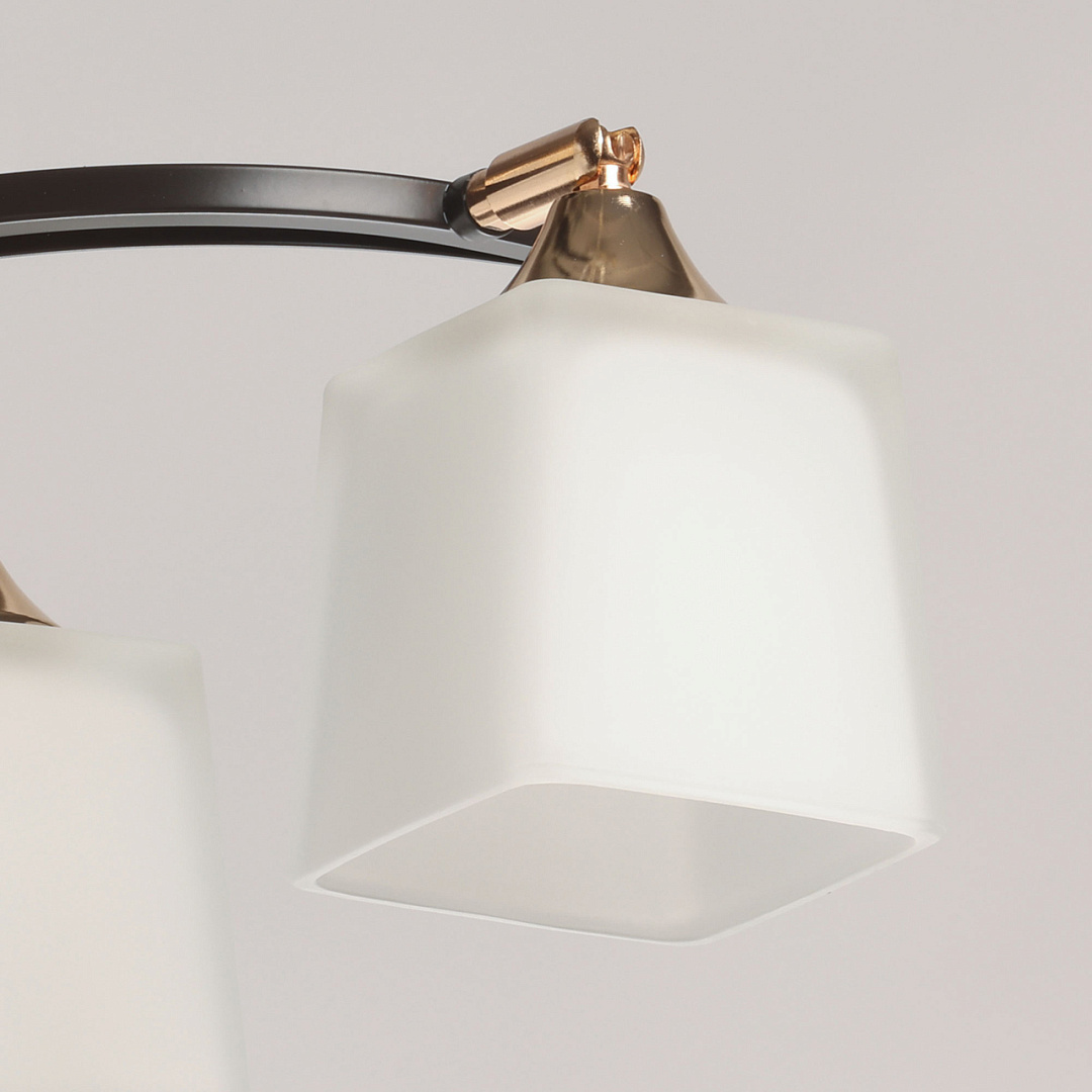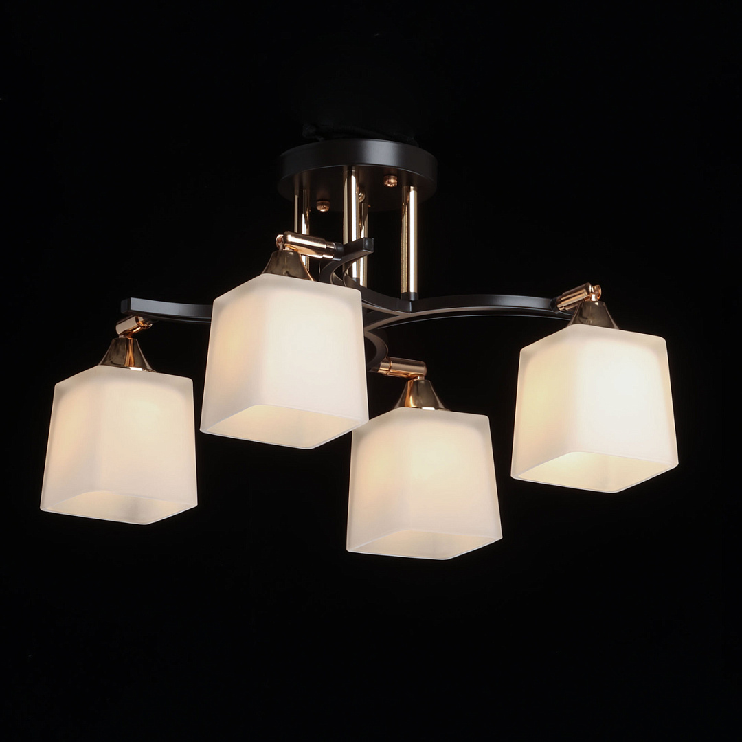 Трендовое сочетание цветов кофе и золота выделяет люстру на потолке. Оригинальная форма плафона придает потолочной люстре изюминку. Шарниры на плафонах позволяют менять направление светового потока. Заменяемые источники света удобны в эксплуатации. Компактный размер потолочной люстры сохранит пространство комнаты при стандартных потолках.