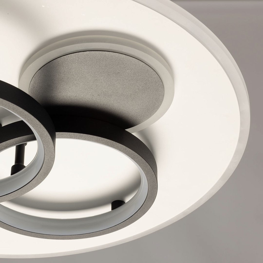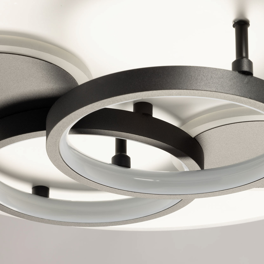 Контрастный черный цвет плафонов в сочетании с белым цветом основания обеспечивает актуальный дизайн и добавляет люстре концептуальности. Матовый акрил мягко рассеивает свет, создавая комфортное освещение. Многорежимность освещения от 3000К до 6500К позволяет подобрать комфортную температуру света. Качественные светодиоды экономичны и безопасны. Компактный размер потолочной люстры подойдет к интерьерам со стандартным потолком. Наличие ПДУ позволяет удобно устанавливать требуемый сценарий освещения.