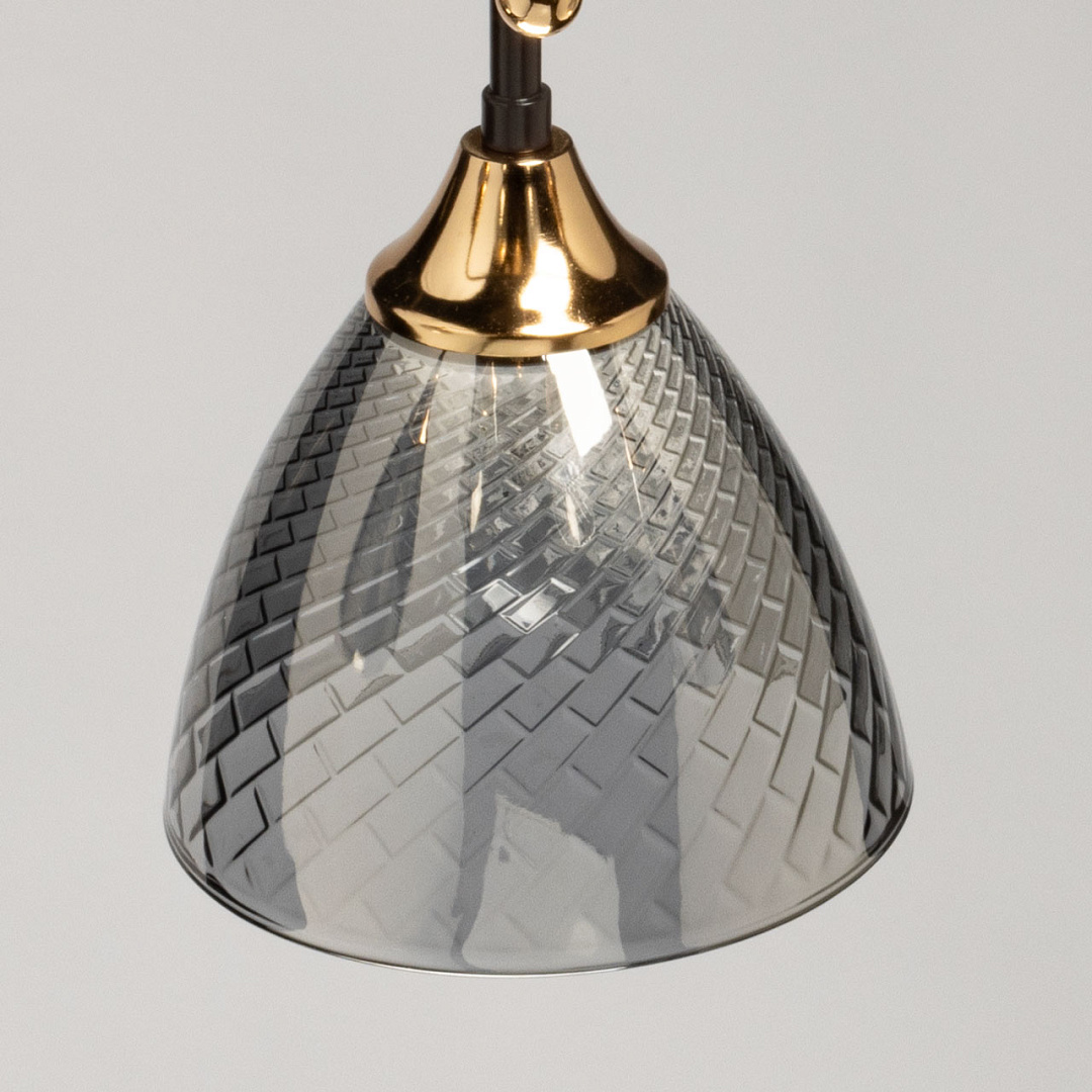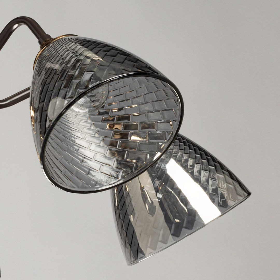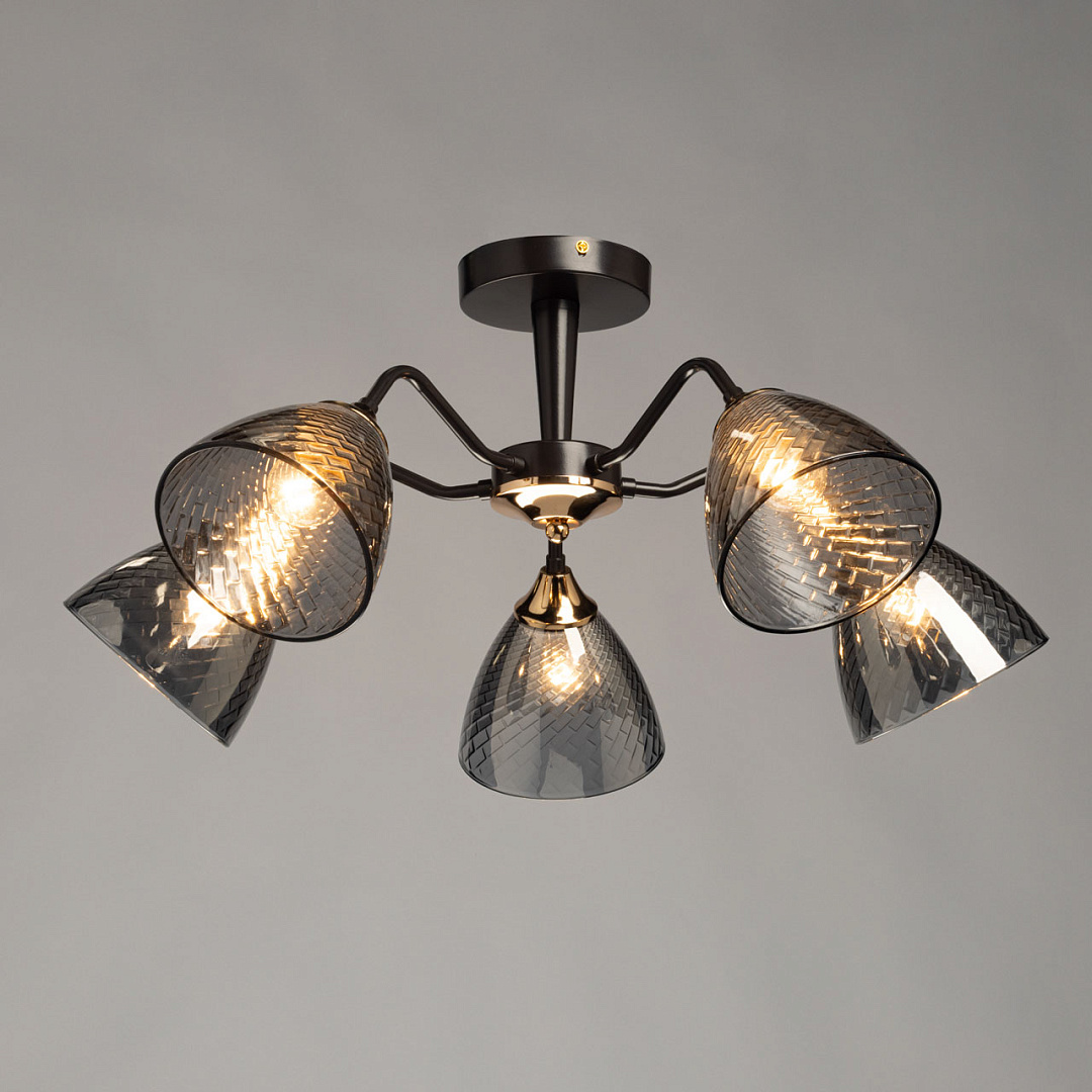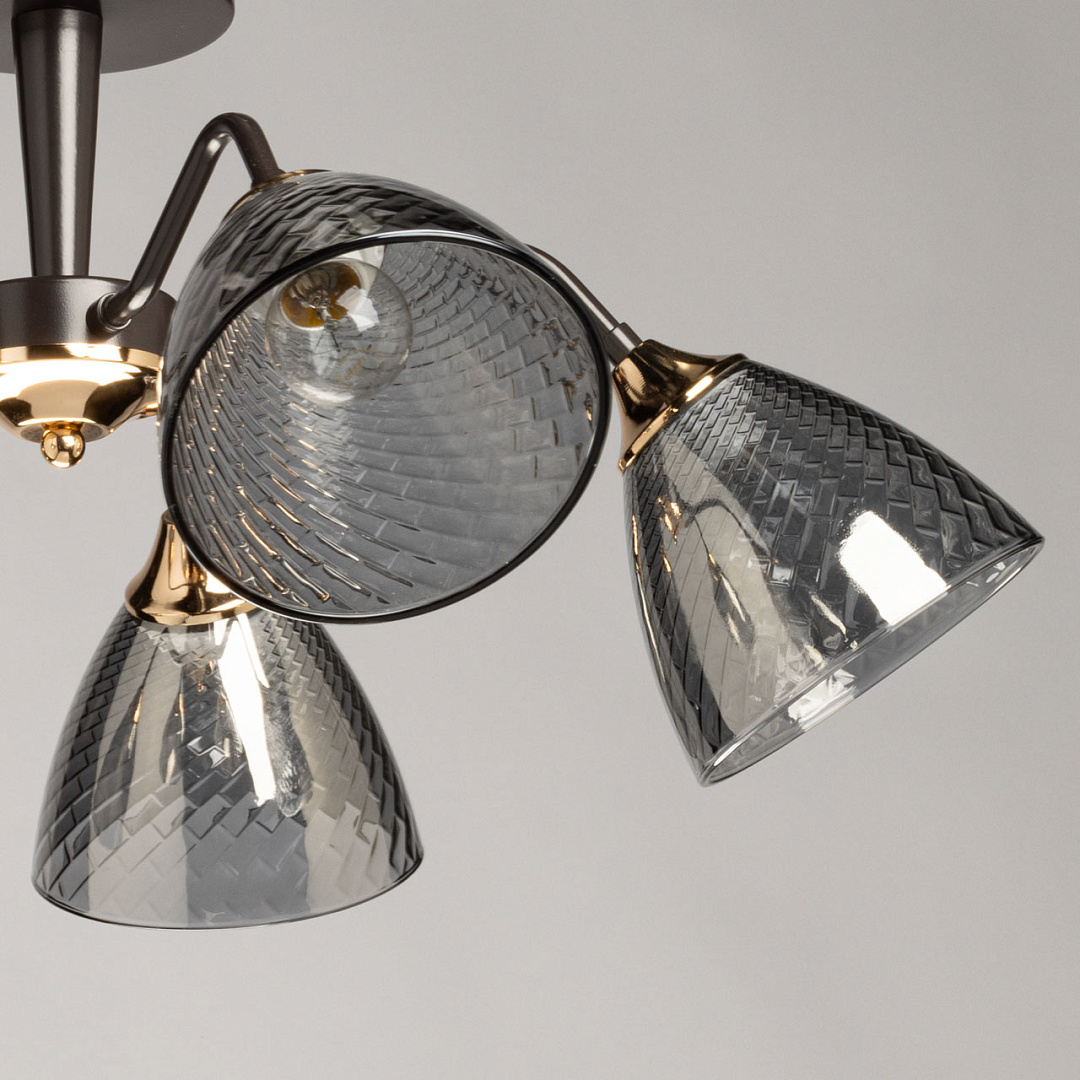 Комбинация металлов цвета кофе и золота является стильным и современным решением, которое придает люстре изысканный и элегантный вид. Темная глубина металла эффектно подчеркивается золотыми акцентами.Плафоны, гальванизированные в дымчатый цвет мягко рассеивают свет.Компактная высота светильника оптимальна для стандартной высоты потолка.Заменяемые источники света удобны в эксплуатации.