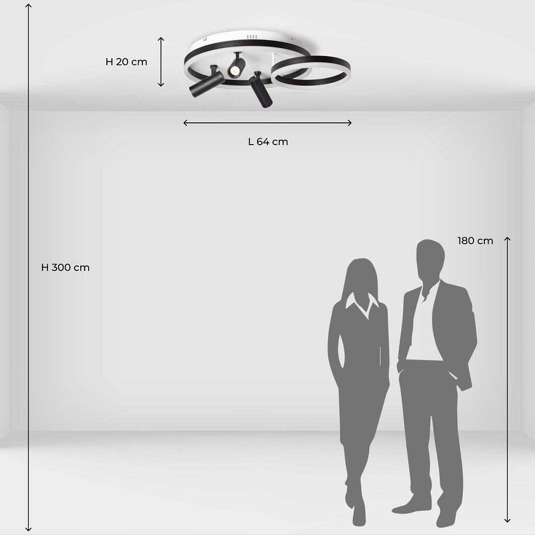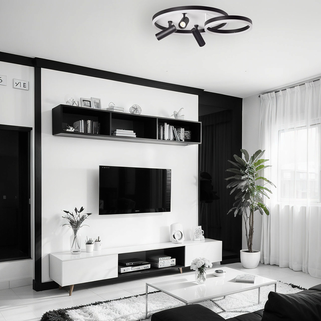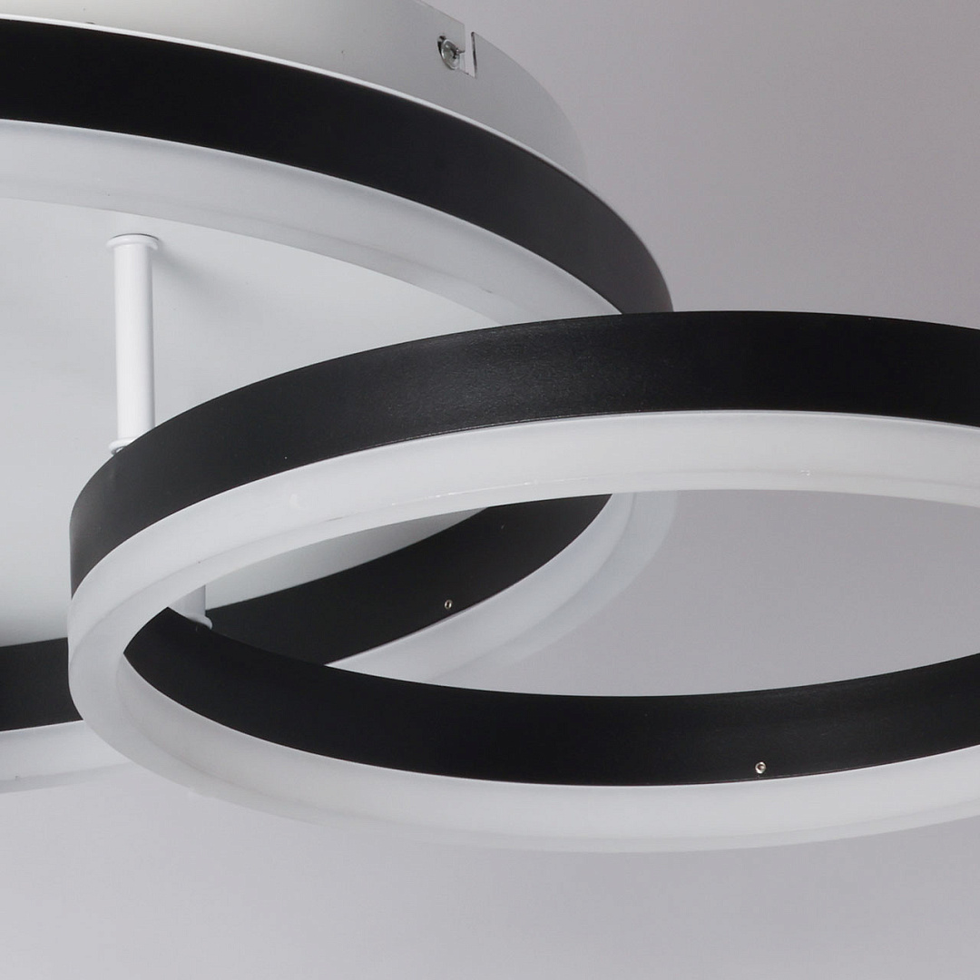 Глубокий черный цвет плафонов в сочетании с белым цветом основания добавляет светильнику концептуальности. Матовый акрил мягко рассеивает свет, создавая комфортное освещение. Многорежимность освещения от 3000К до 6500К позволяет подобрать комфортную температуру света. Качественные светодиоды экономичны и безопасны. Поворотные споты позволяют направлять световой поток в нужную сторону, что создает акцентное освещение.  Компактный размер потолочной люстры подойдет к интерьерам со стандартным потолком. Наличие ПДУ удобно в эксплуатации.