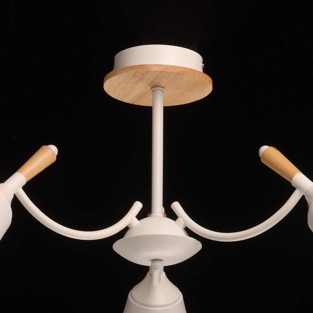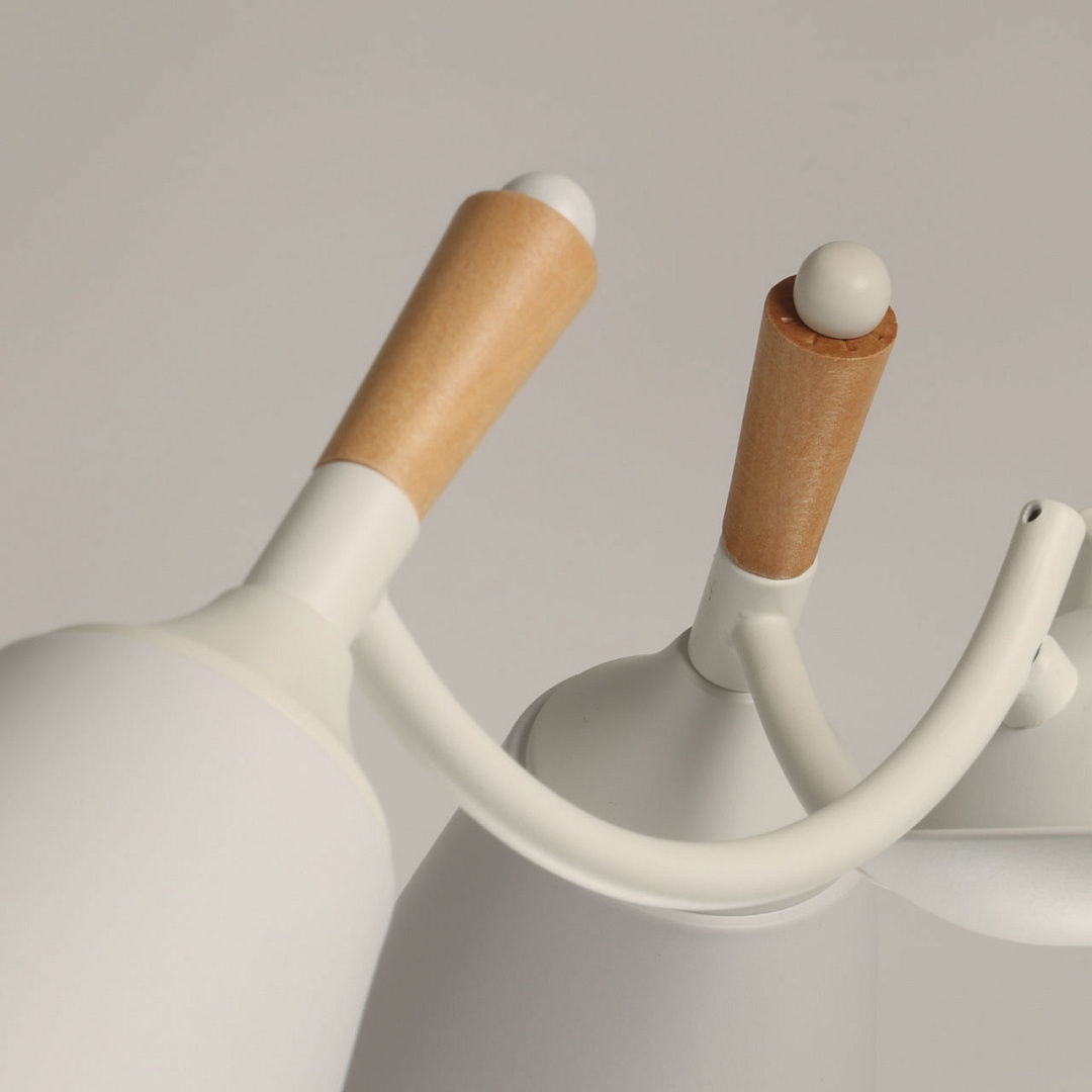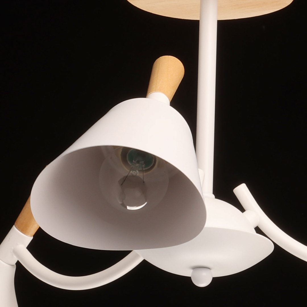 Универсальный белый цвет потолочной люстры подходит к любому интерьеру. Металлические плафоны создают яркий направленный свет. Декор из натурального дерева в тренде природности. Заменяемые источники света удобны в эксплуатации. Компактный размер потолочной люстры сохранит пространство комнаты при стандартных потолках.