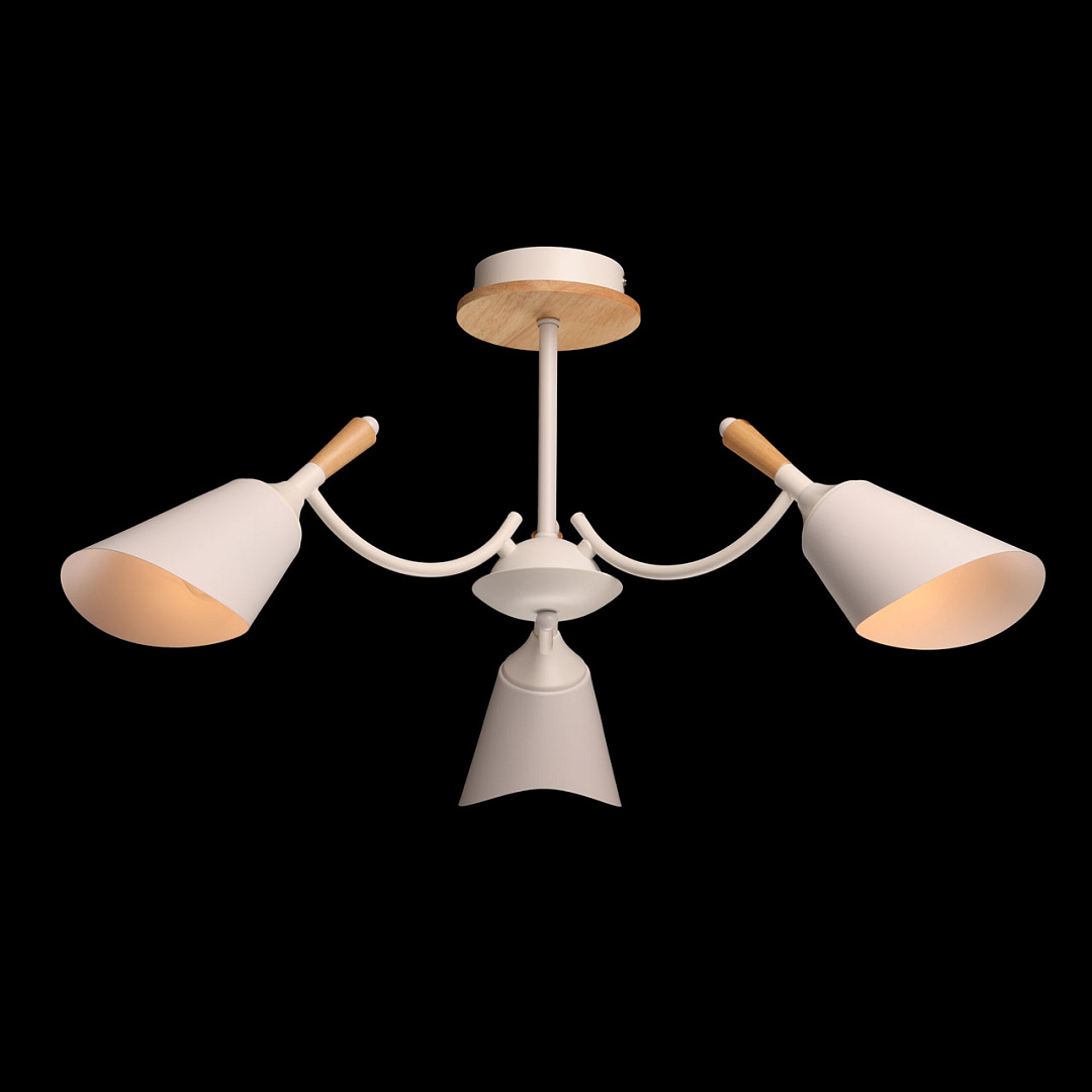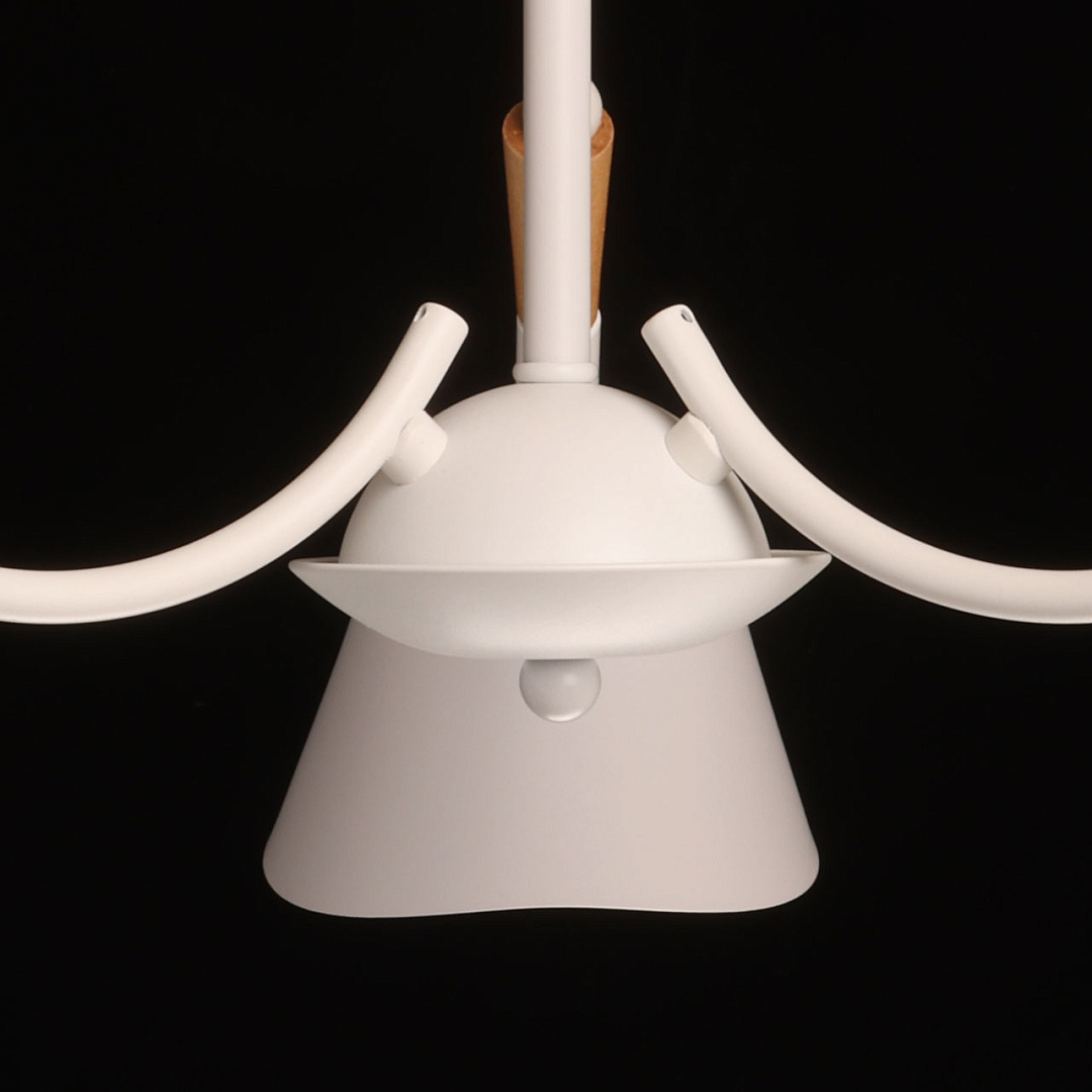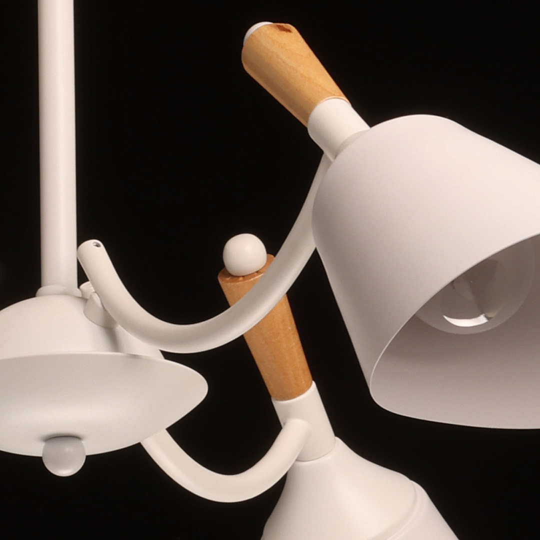 Универсальный белый цвет потолочной люстры подходит к любому интерьеру. Металлические плафоны создают яркий направленный свет. Декор из натурального дерева в тренде природности. Заменяемые источники света удобны в эксплуатации. Компактный размер потолочной люстры сохранит пространство комнаты при стандартных потолках.