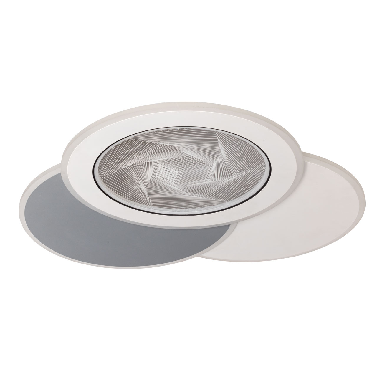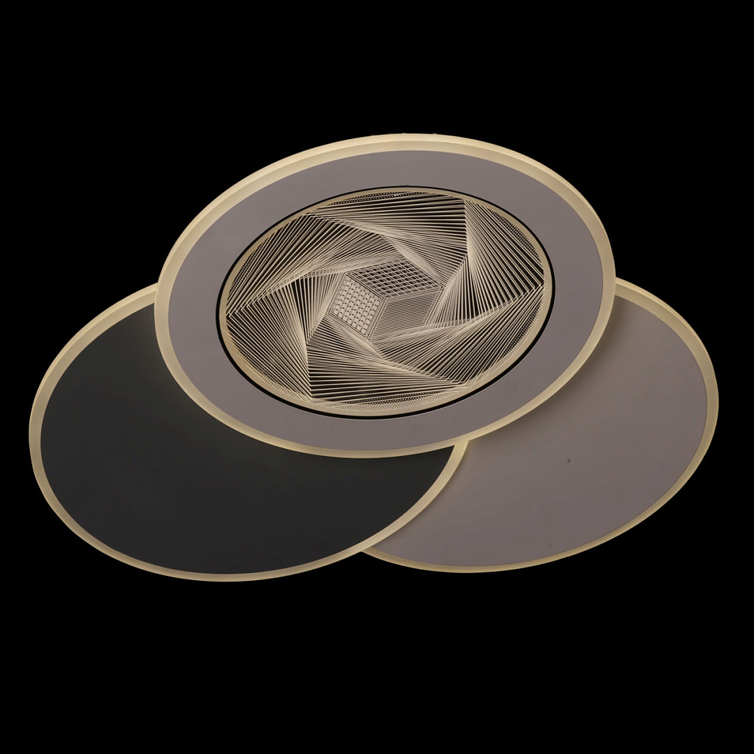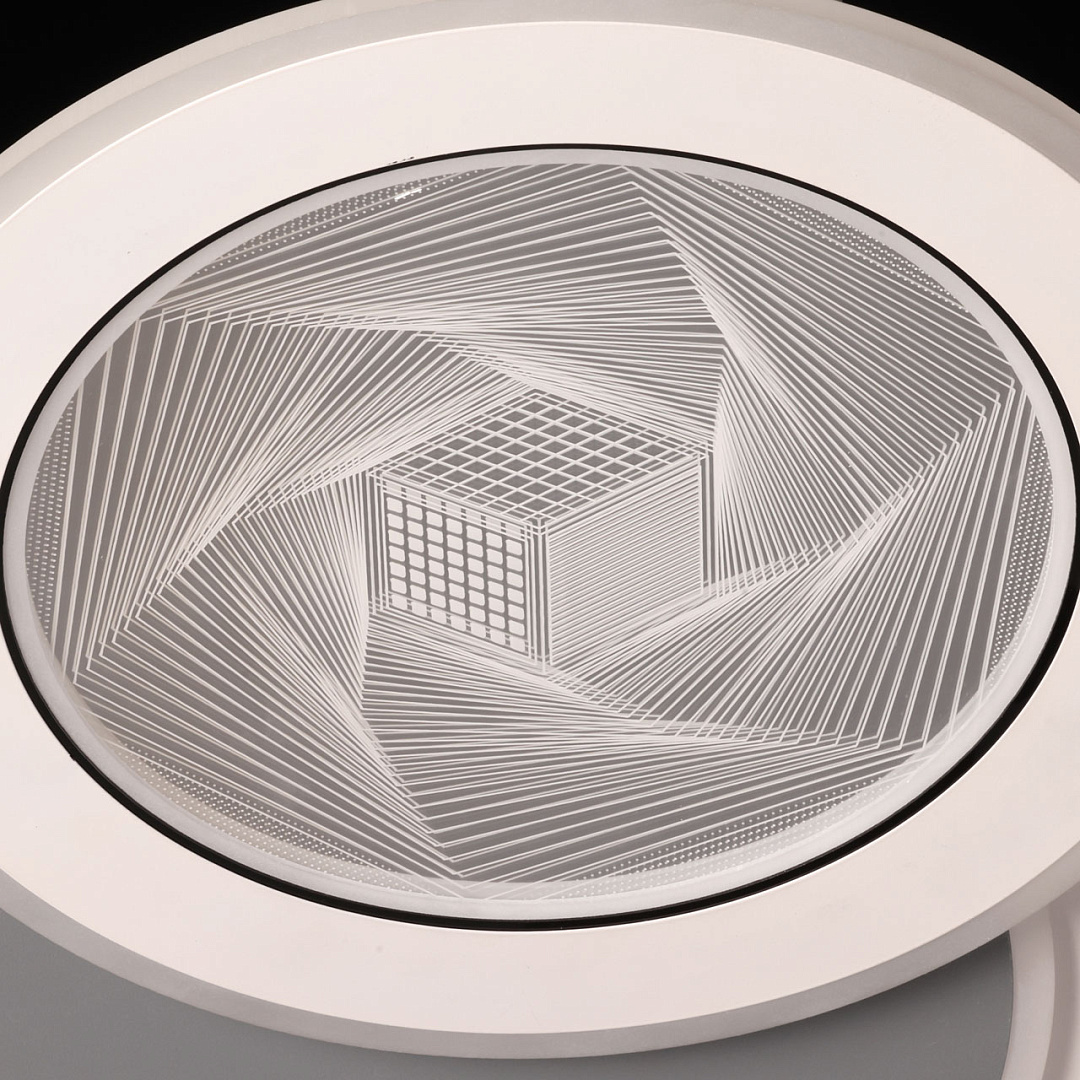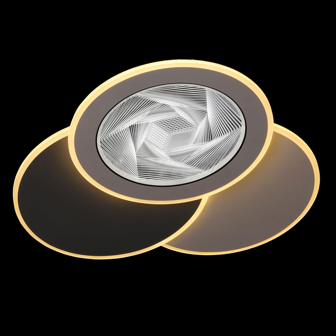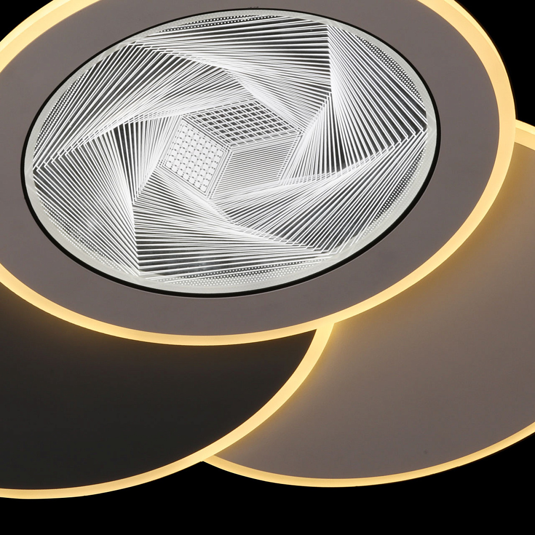 Мягкое сочетание белого и серого цветов придает светильнику декоративности и прекрасно подойдет к современному интерьеру. Многорежимность с изменением цветовой температуры от 3000К до 6500К  является элементом светодизайна и позволяет подобрать комфортную температуру света. Качественные светодиоды и корпус из сплава алюминия  обеспечивают яркое освещение и долгий срок службы. Благодаря актуальной асимметрии дизайна и 3D-эффекту светильник становится арт объектом. Наличие ПДУ  обеспечивает комфортное переключение режимов освещения. Компактный светильник для стандартной высоты потолка. Светодиодные источники света экономичны и безопасны.