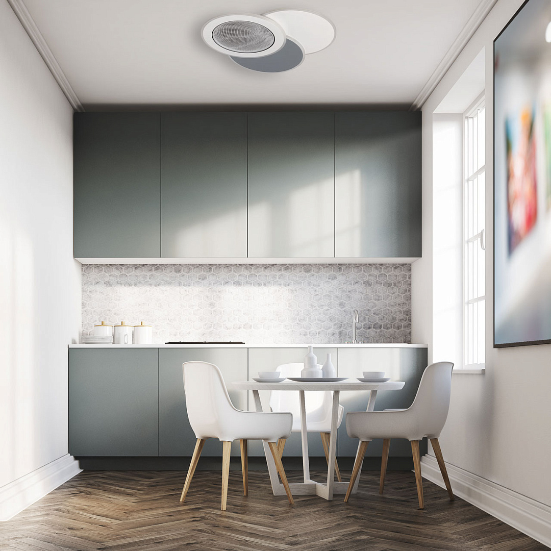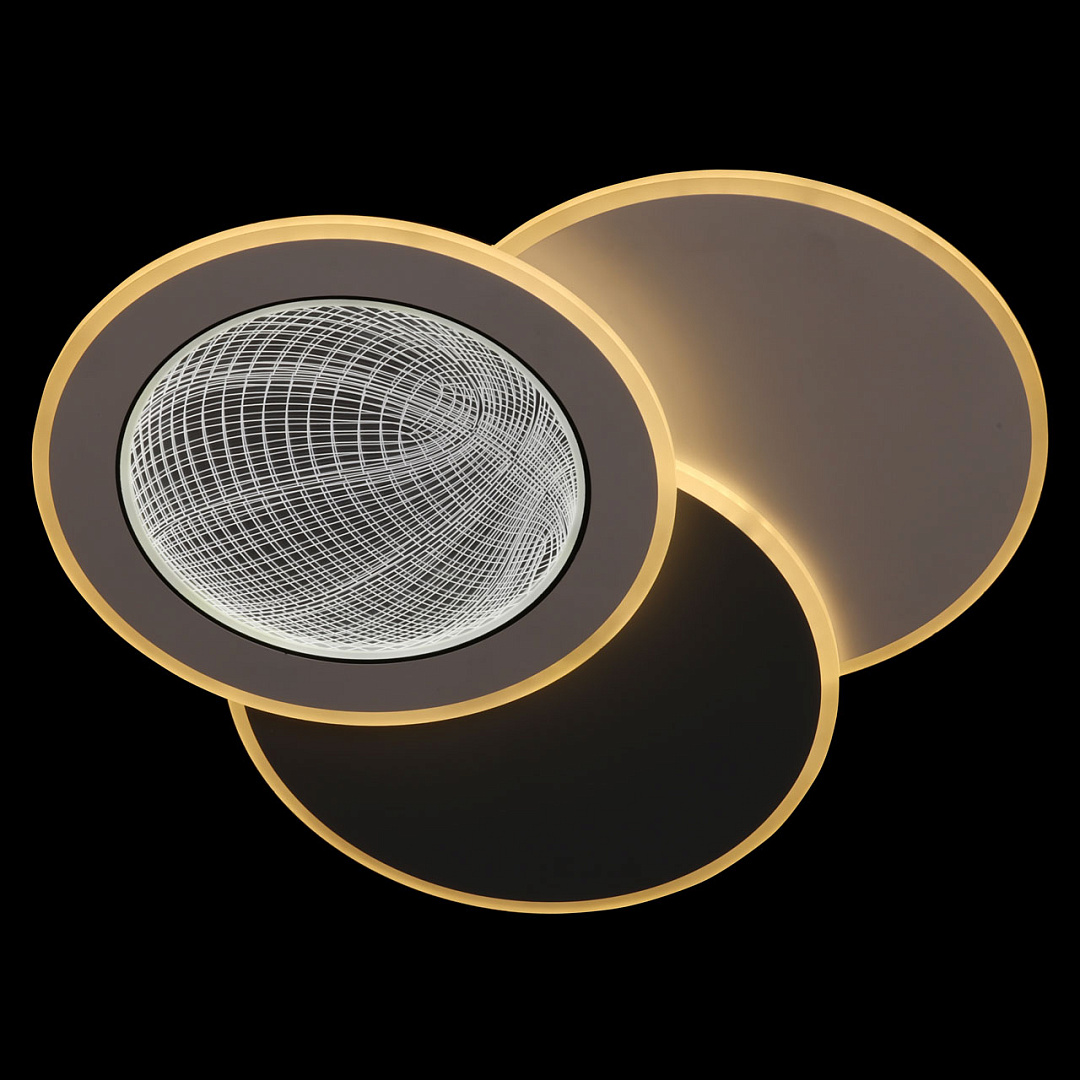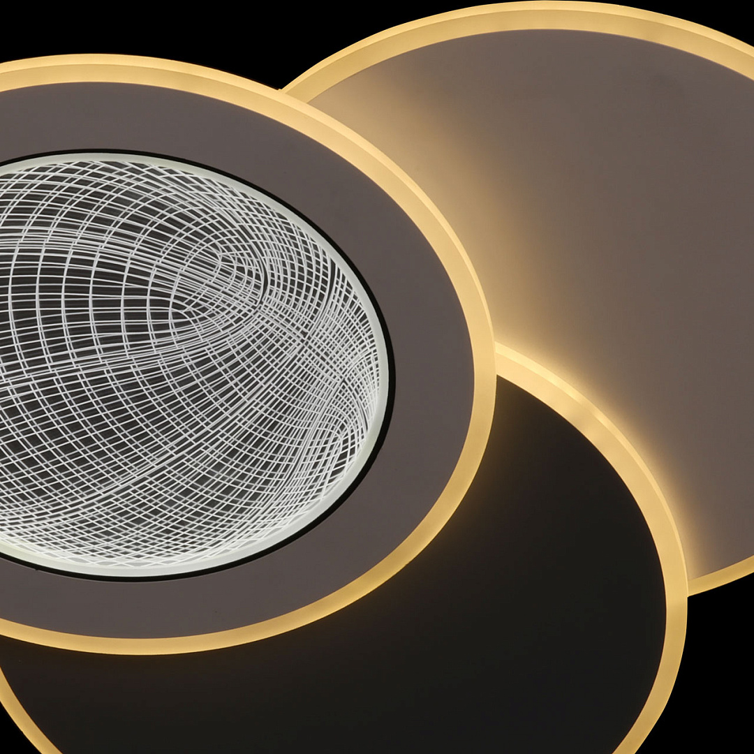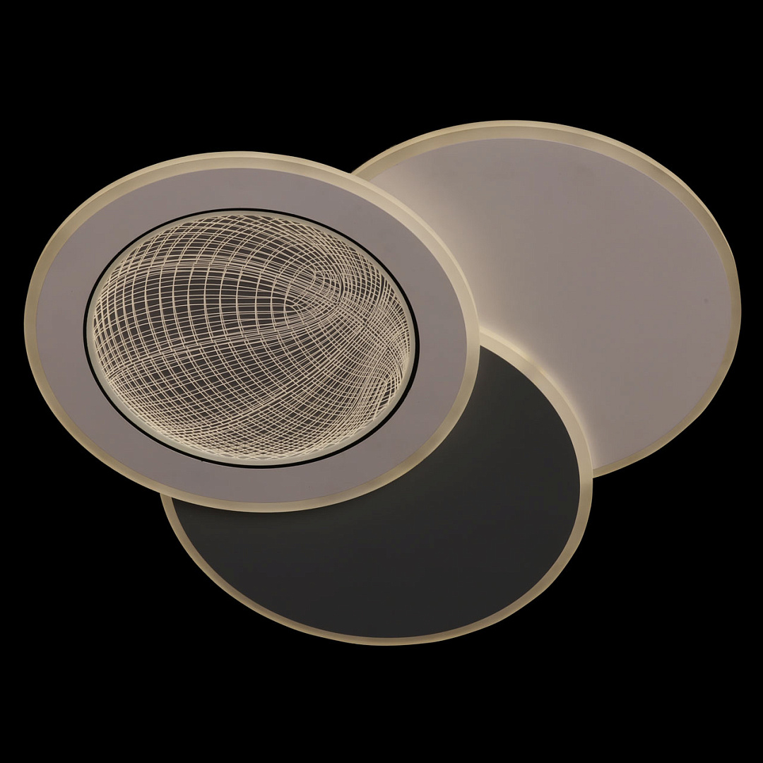 Мягкое сочетание белого и серого цветов придает светильнику декоративности и прекрасно подойдет к современному интерьеру. Многорежимность с изменением цветовой температуры от 3000К до 6500К  является элементом светодизайна и позволяет подобрать комфортную температуру света. Качественные светодиоды и корпус из сплава алюминия  обеспечивают яркое освещение и долгий срок службы. Благодаря актуальной асимметрии дизайна и 3D рисунку светильник становится арт объектом. Наличие ПДУ  обеспечивает комфортное переключение режимов освещения. Компактный светильник для стандартной высоты потолка. Светодиодные источники света экономичны и безопасны.