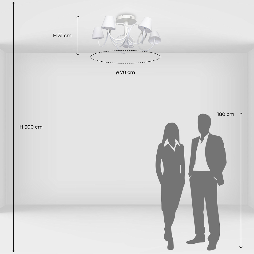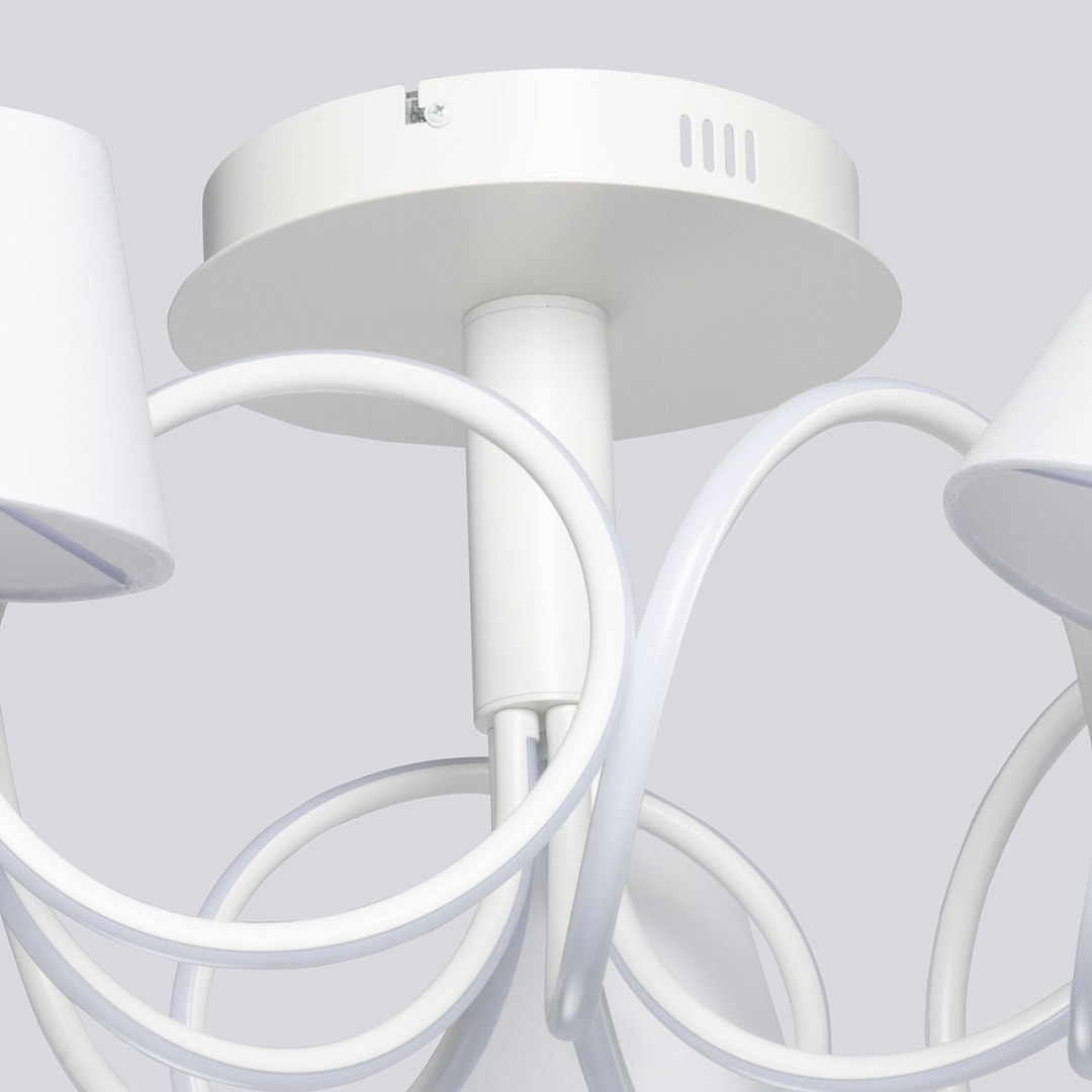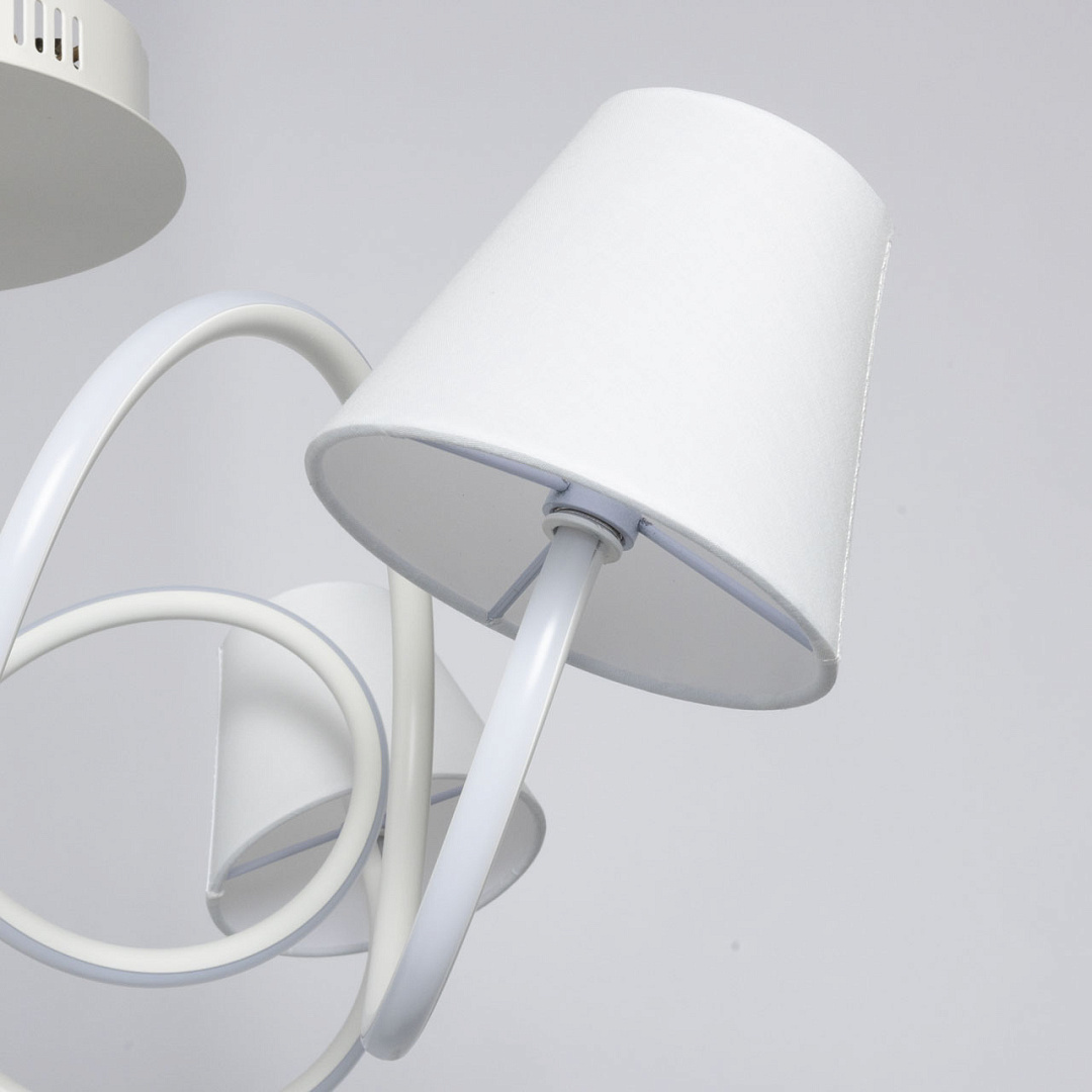 Белый цвет основания позволяет гармонично сочетать люстру с любым цветовым решением интерьера. Изящно изогнутые плафоны придают люстре оригинальность. Белый силикон плафонов мягко рассеивают свет. Эффектной изюминкой люстры является возможность комбинировать современное светодиодное освещение и классические текстильные абажуры. Благодаря стильному дизайну и высокому качеству, этот светильник станет прекрасным дополнением к любому интерьеру, принося в него индивидуальность и яркость. Светодиодные источники света экономичны и безопасны.
