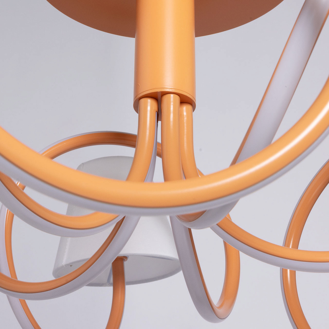Терракотовый цвет основания эффектно выделяет люстру на потолке, делая ее интересным акцентом в интерьере. Изящно изогнутые плафоны придают люстре оригинальность. Белый силикон плафонов мягко рассеивают свет. Эффектной изюминкой люстры является возможность комбинировать современное светодиодное освещение и классические текстильные абажуры. Благодаря стильному дизайну и высокому качеству, этот светильник станет прекрасным дополнением к любому интерьеру, принося в него индивидуальность и яркость. Светодиодные источники света экономичны и безопасны.