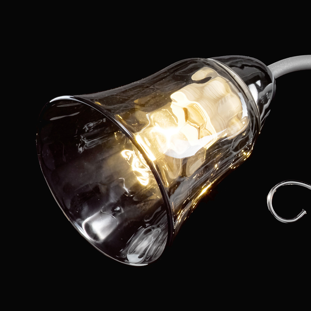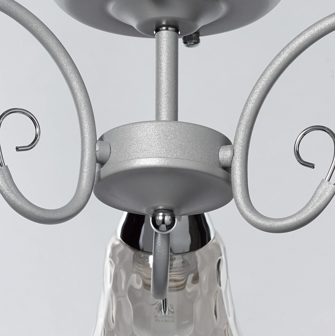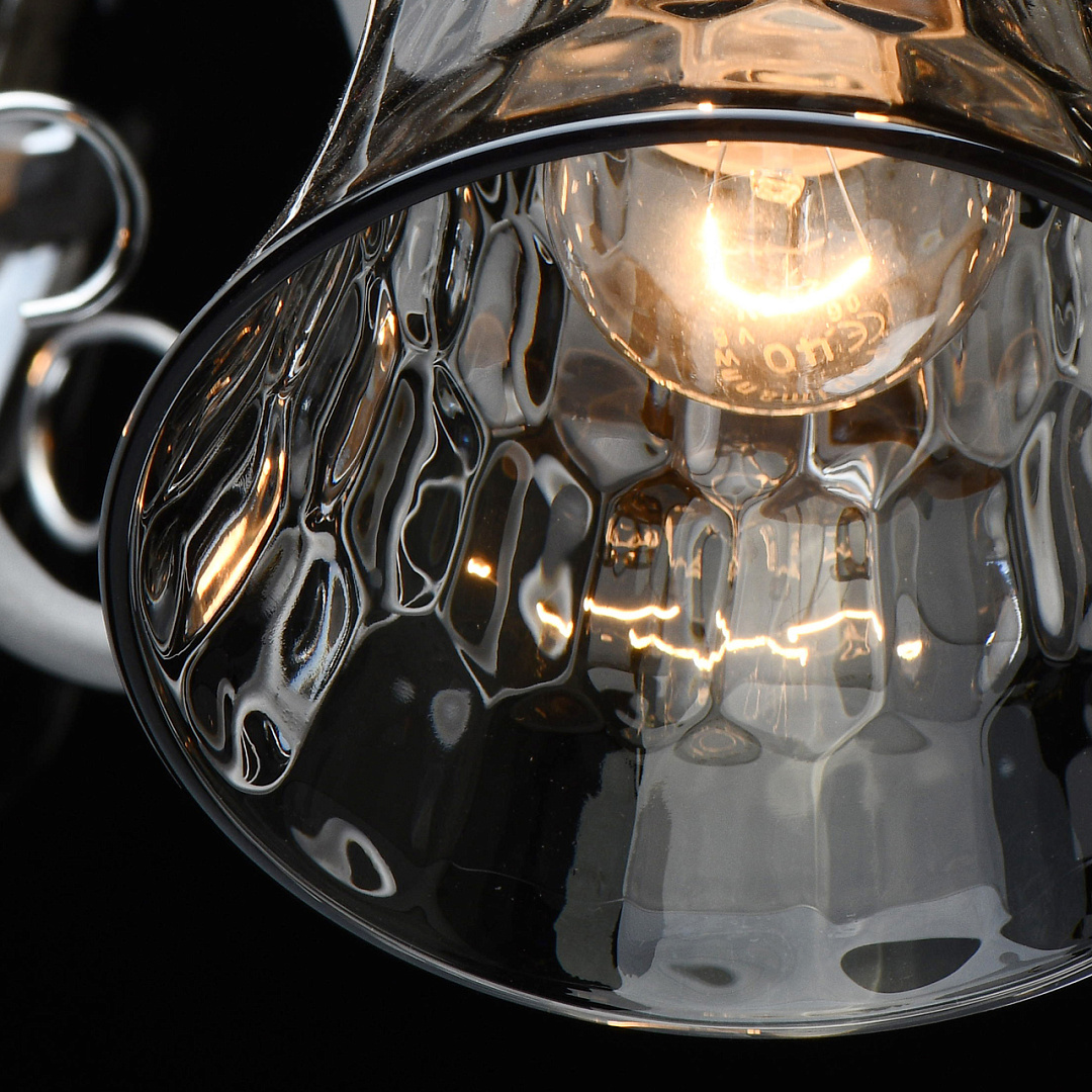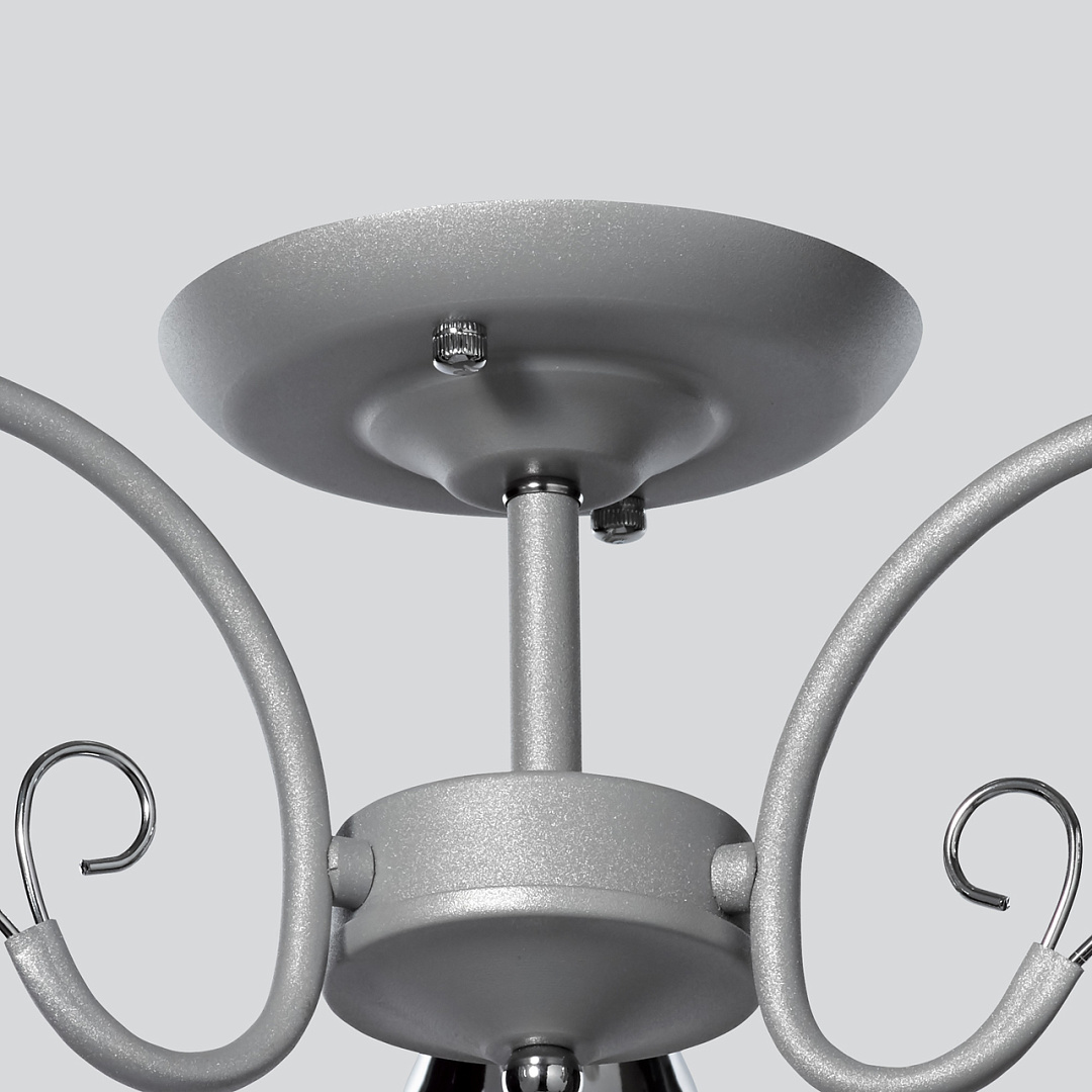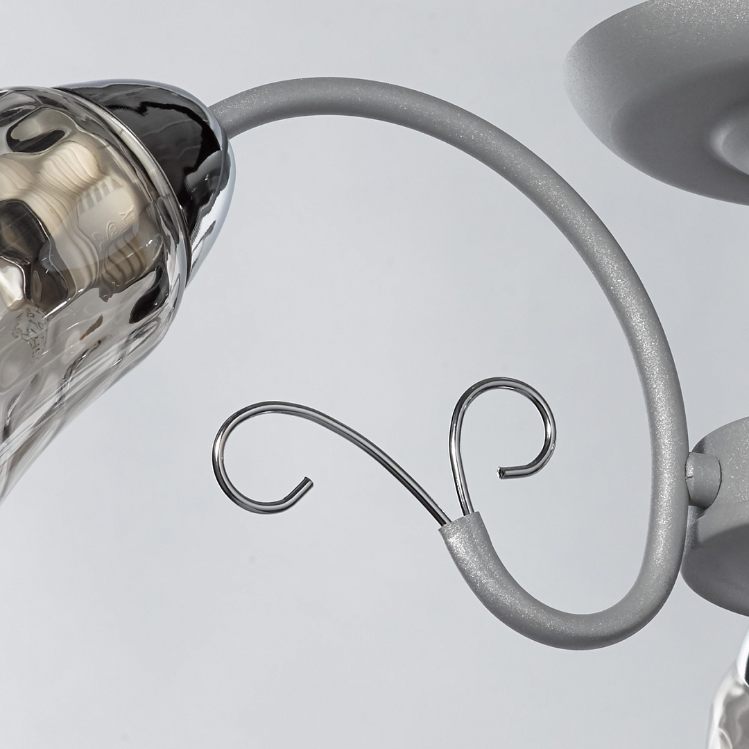 Новый оттенок серебра в сочетании с глянцевым хромом актуален в современных интерьерах.Стекло плафонов в дымчатом цвете обеспечивает комфортный световой поток.Рельефные плафоны создают игру света.Компактная высота модели идеальна для стандартной высоты потолка.