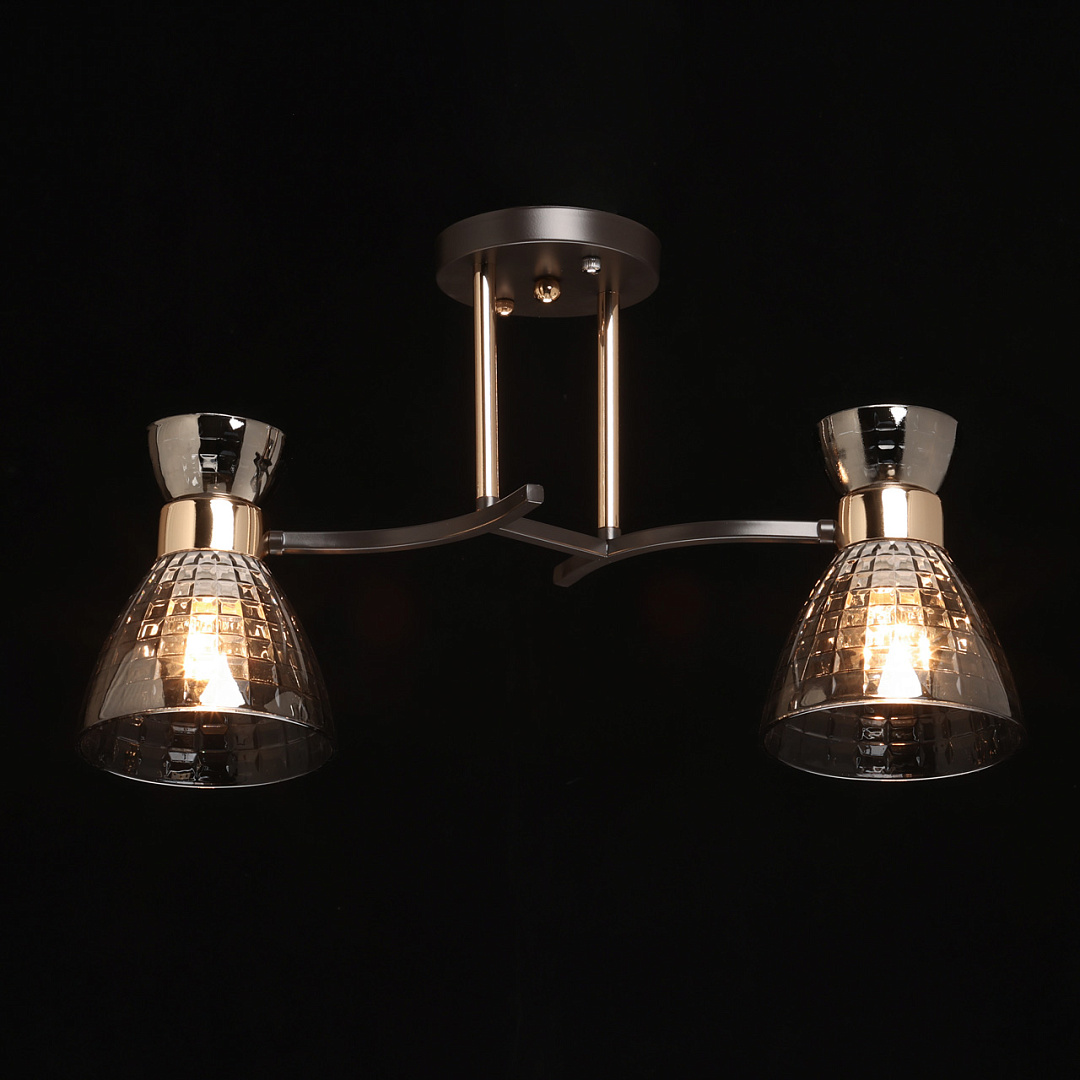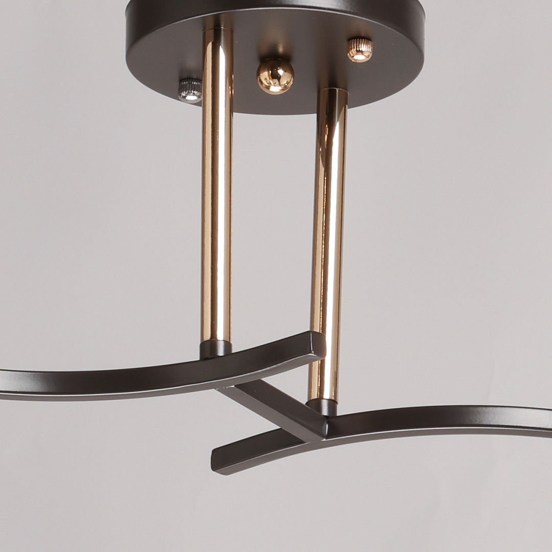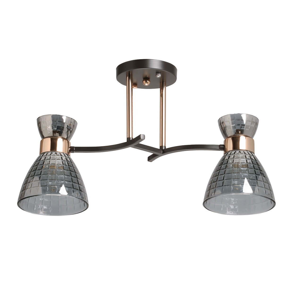Цвет кофе на основании создает теплую и уютную атмосферу. Элементы цвета золота добавляют потолочной люстре изысканности. Дымчатый цвет стеклянных плафонов создает приятную атмосферу. Вытянутая форма люстры гармонично объединяет освещение, дизайн и функциональность. Компактный размер люстры прекрасно подходит в интерьеры со стандартным потолком. Заменяемые источники света удобны в эксплуатации.