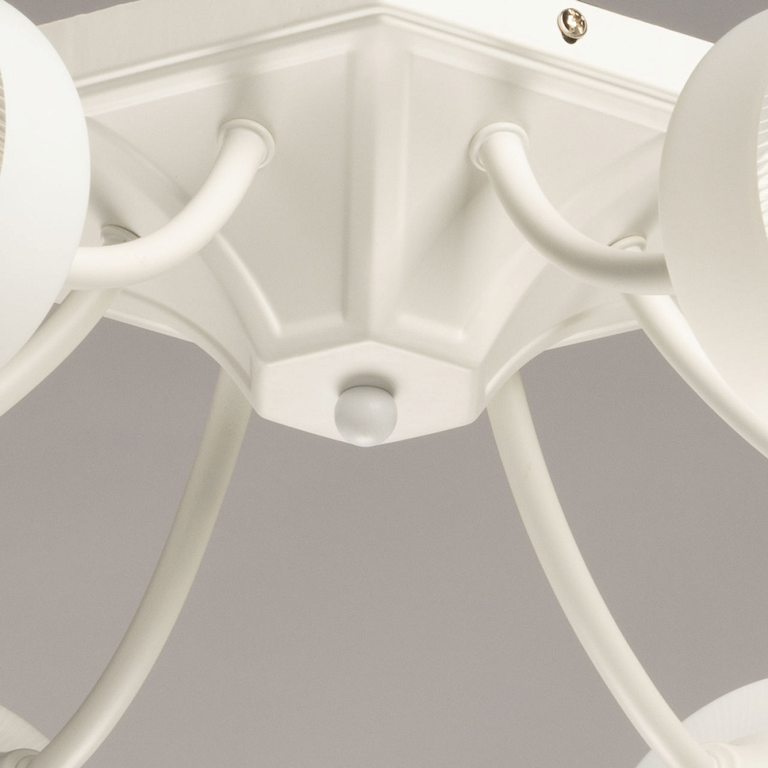Универсальный белый цвет основания потолочной люстры позволяет разместить люстру в любом цветовом решении интерьера. Изящные плафоны вытянутой формы комфортно распределяют свет в разные стороны. Окрашивание плафонов в белый цвет гармонично сочетается с основанием. Заменяемые источники света удобны в эксплуатации. Компактный светильник для стандартной высоты потолка.
