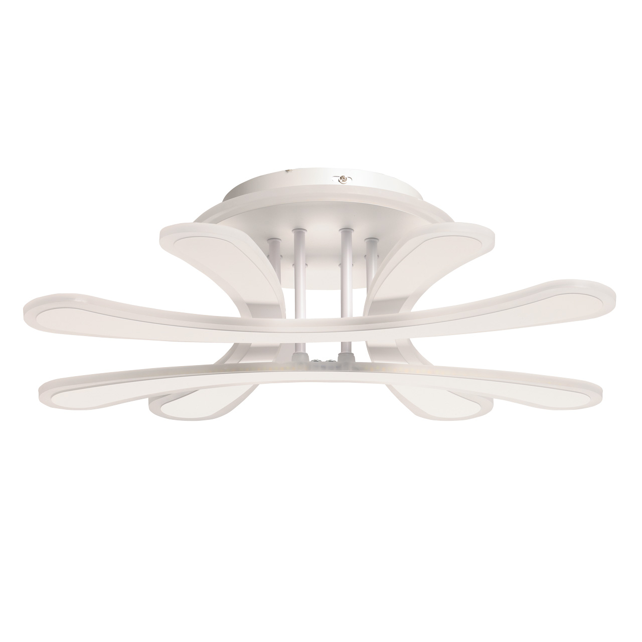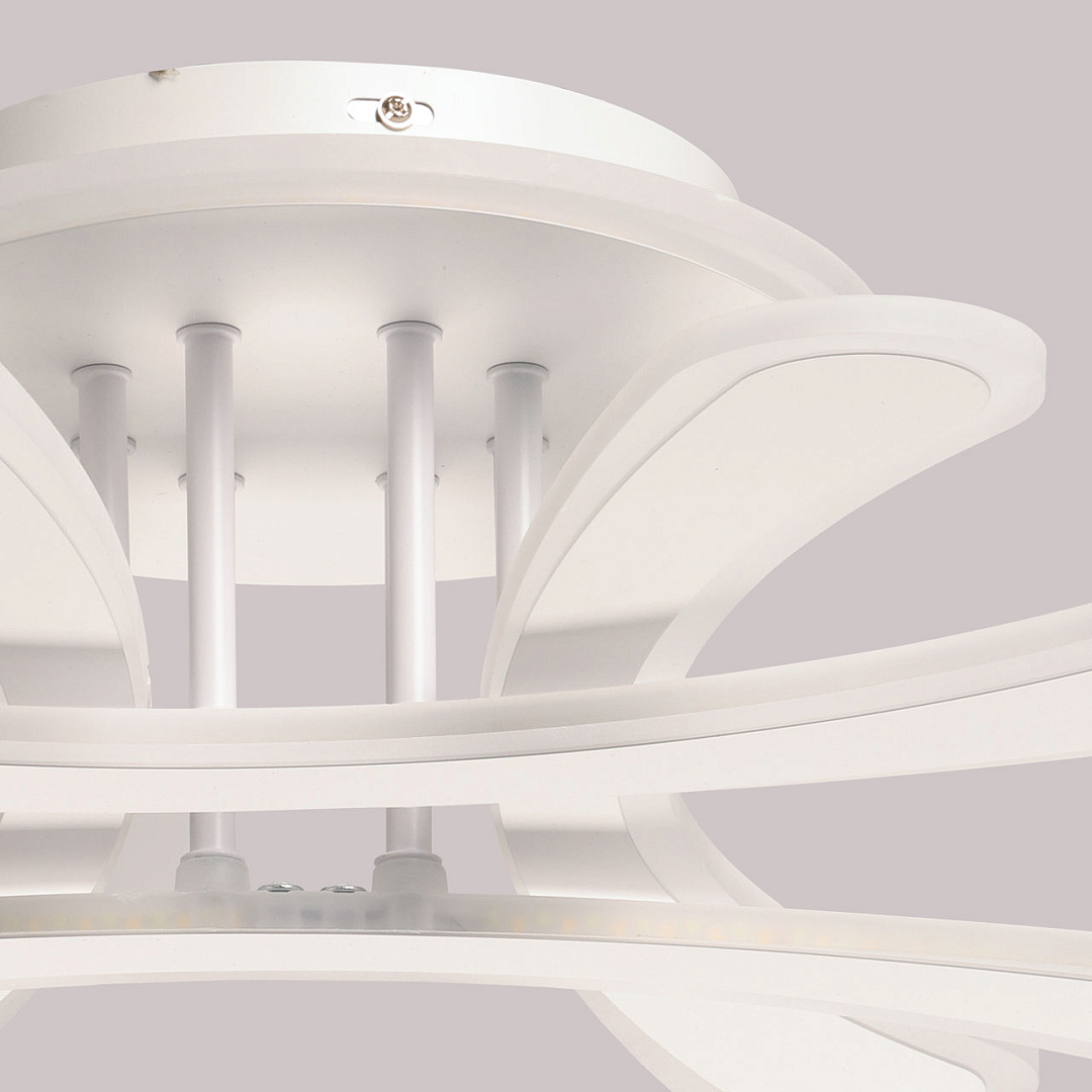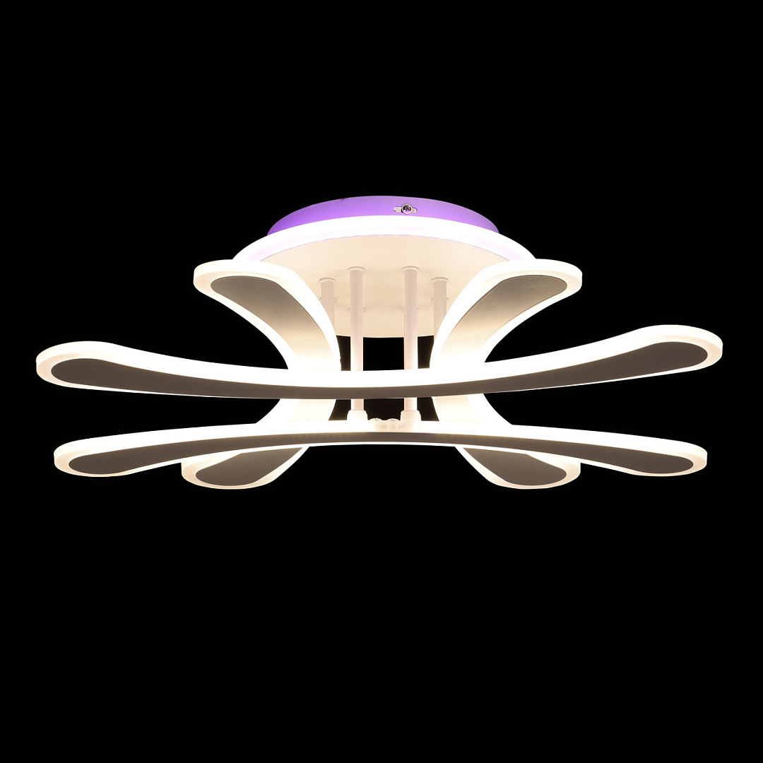 Многорежимность с изменением цветовой температуры от 3000К до 6500К и яркости света является элементом светодизайна. Качественные светодиоды и корпус из сплава алюминия  обеспечивают яркое освещение и долгий срок службы. Плавно изогнутые плафоны придают потолочной люстре элегантности и, благодаря им, светильник становится арт объектом. Наличие ПДУ  обеспечивает комфортное переключение режимов освещения. Компактный светильник для стандартной высоты потолка. Качественные светодиодные источники света экономичны и безопасны.