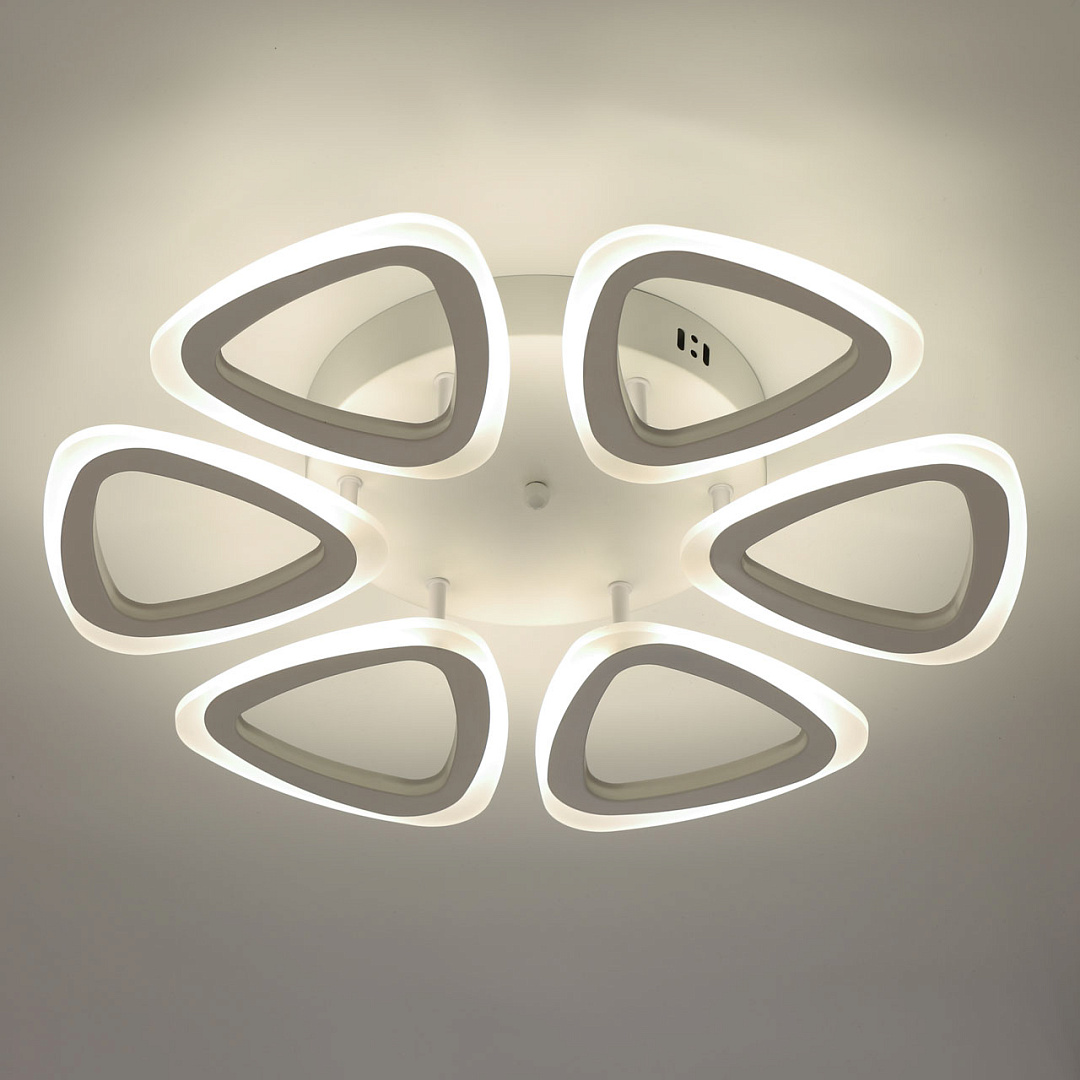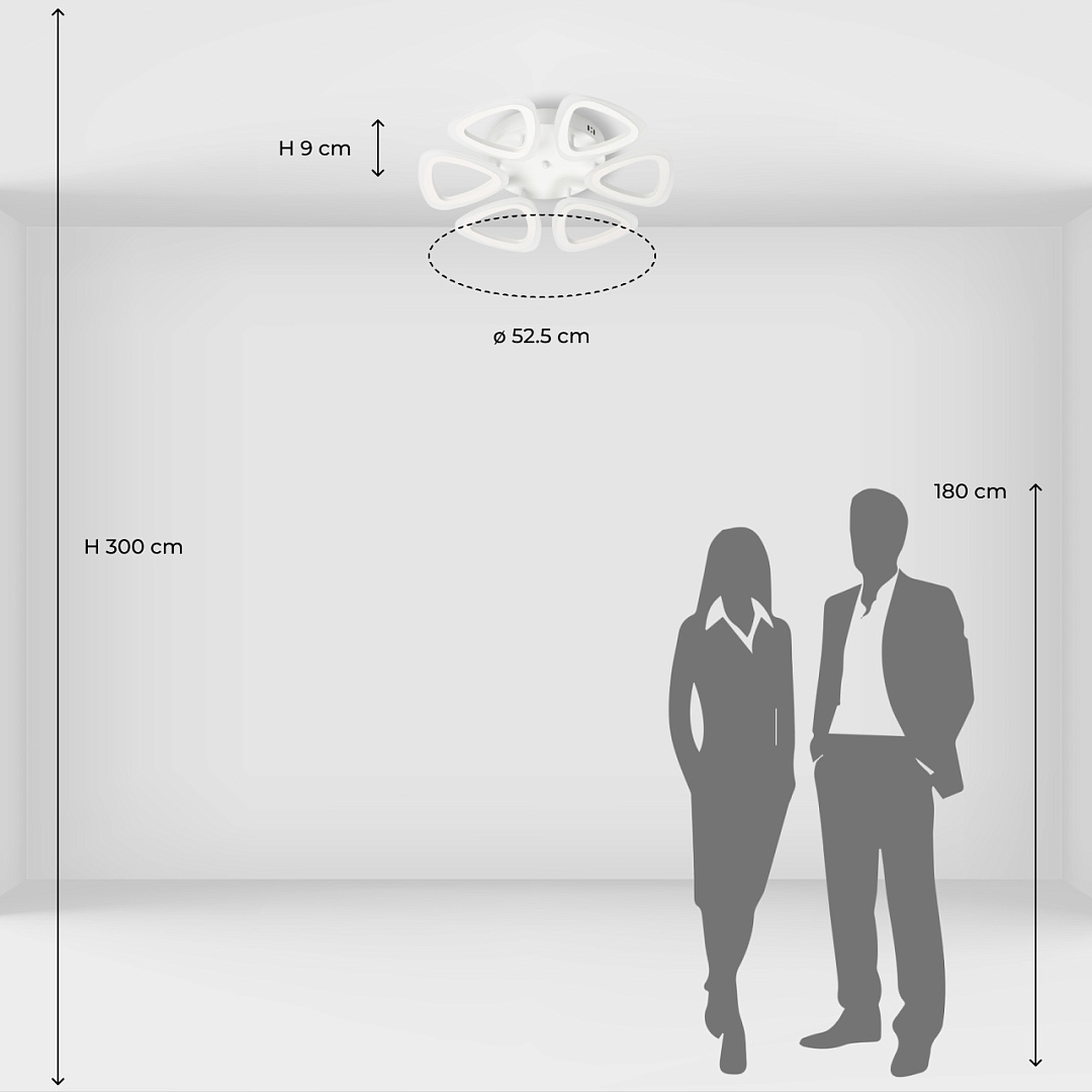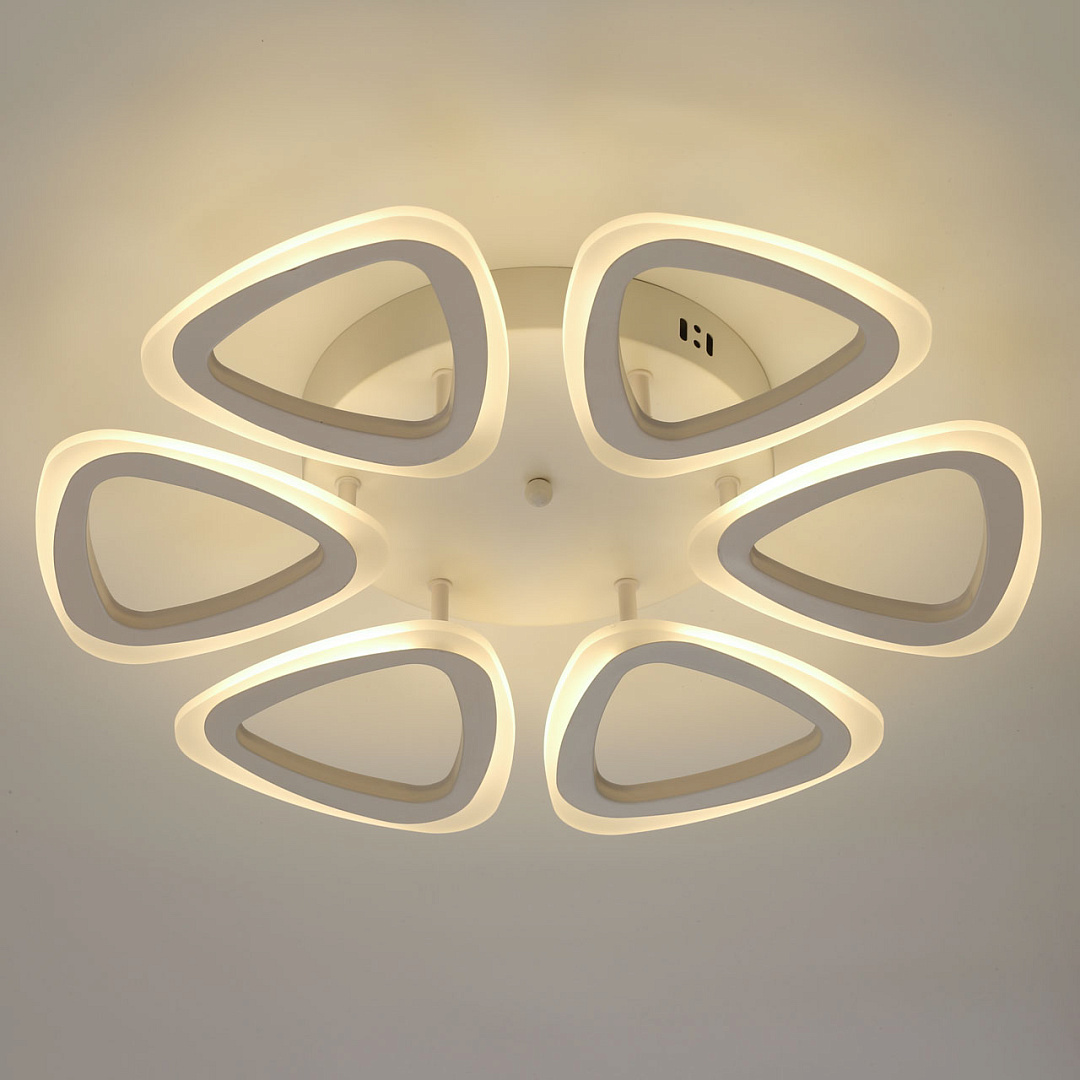 Многорежимность с изменением цветовой температуры и яркости света   является элементом светодизайна.Качественные светодиоды обеспечивают яркое освещение и долгий срок службы.Наличие ПДУ позволяет управлять режимами освещения.Плавный диммер создает требуемое настроение в помещении.Универсальный белый цвет подойдет к любому интерьеру.Компактный светильник для стандартной высоты потолка.